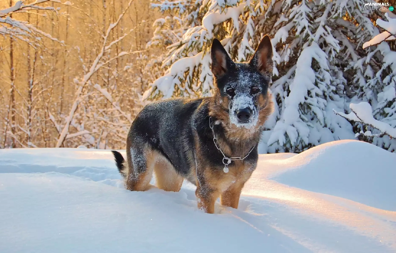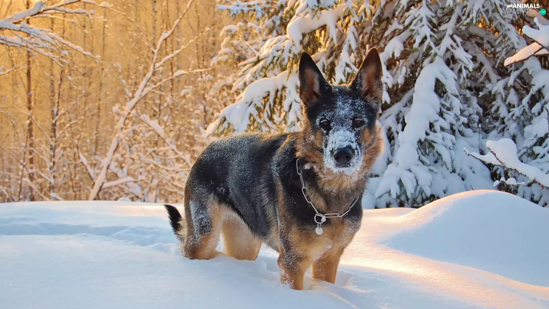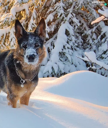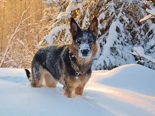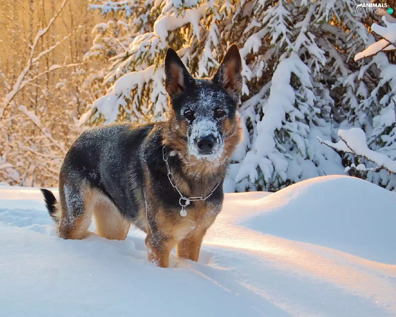 snow, winter, trees, viewes, German Shepherd