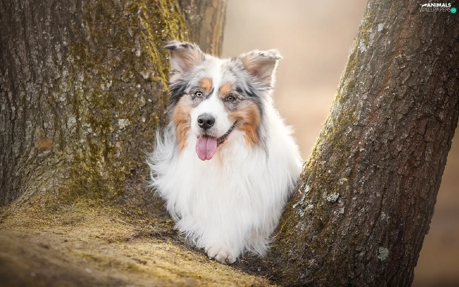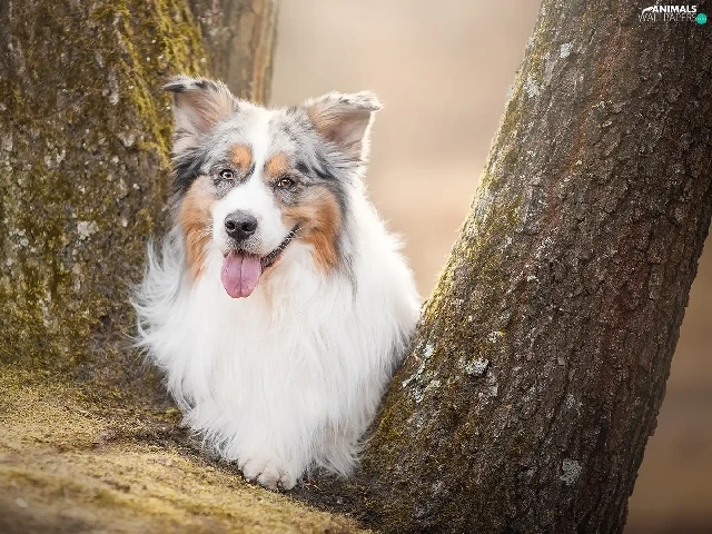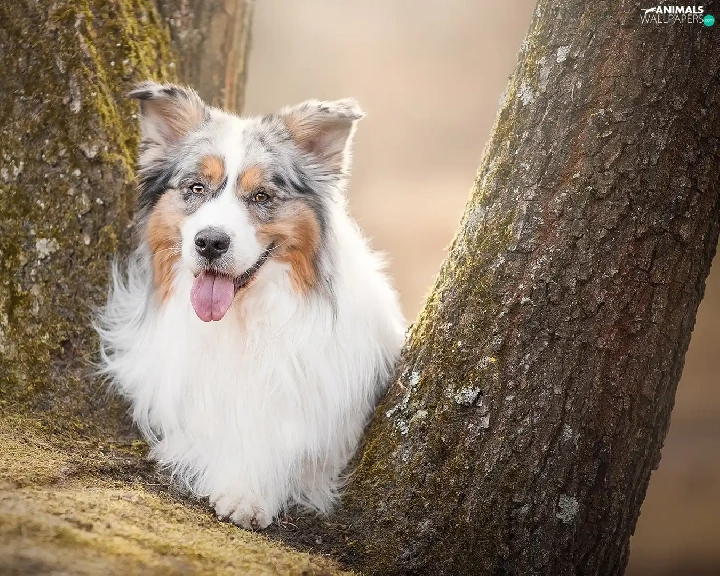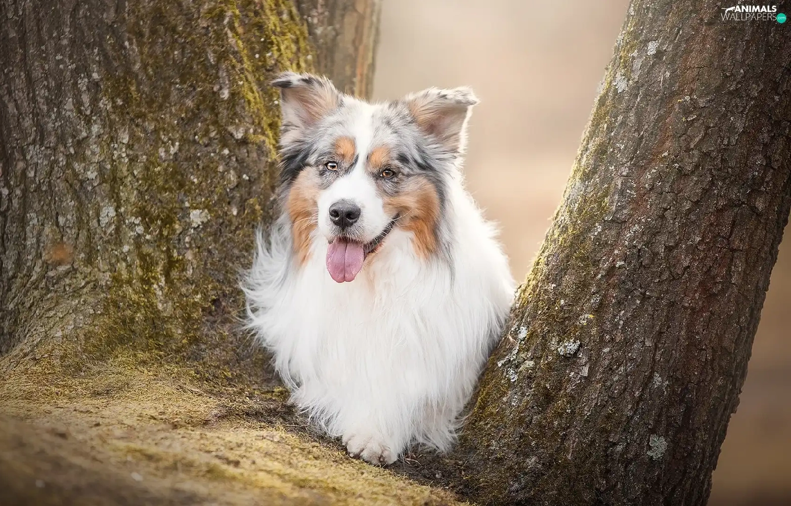 muzzle, dog, trees, viewes, Tounge, Australian Shepherd