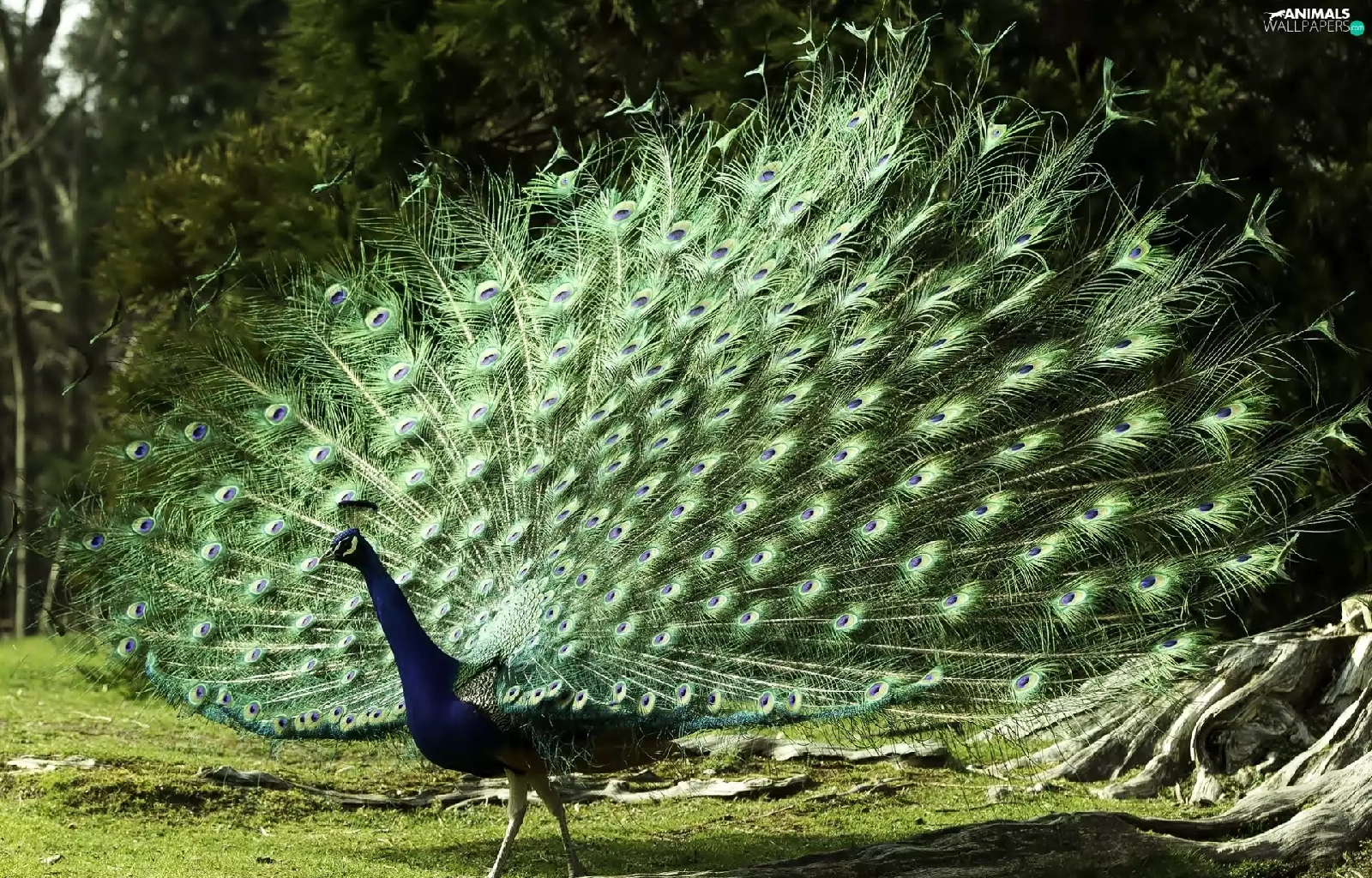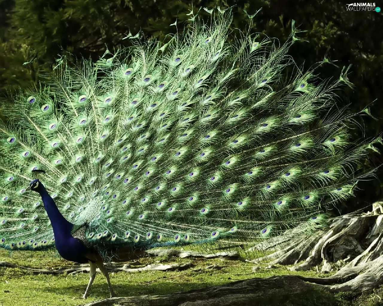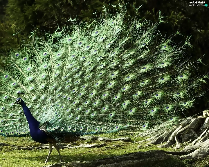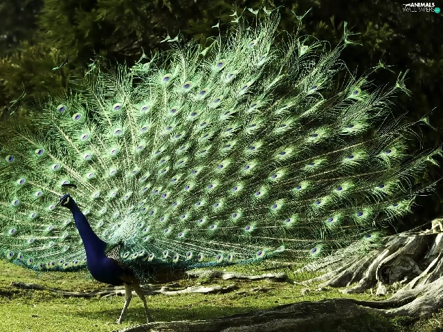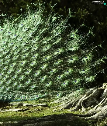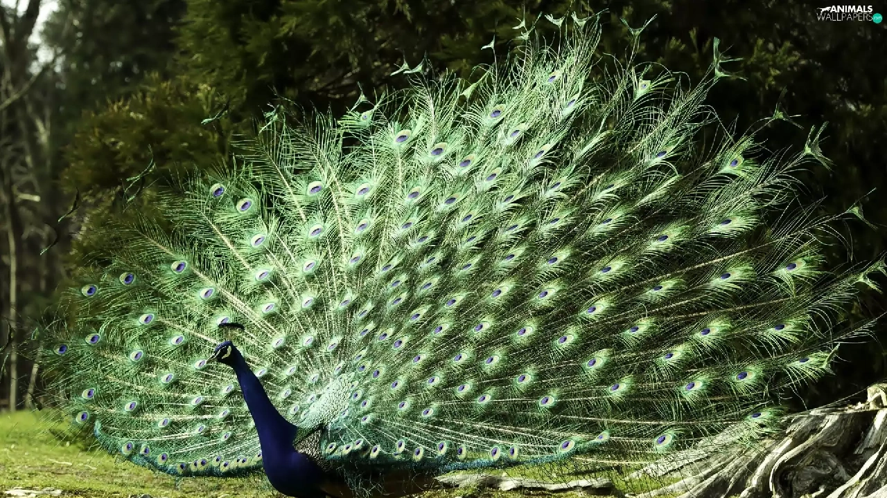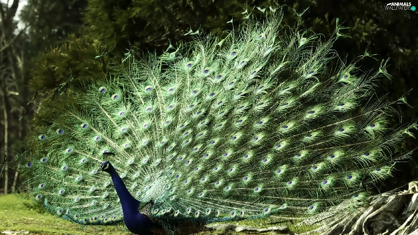 viewes, peacock, trees