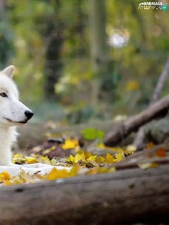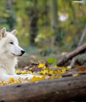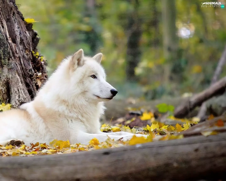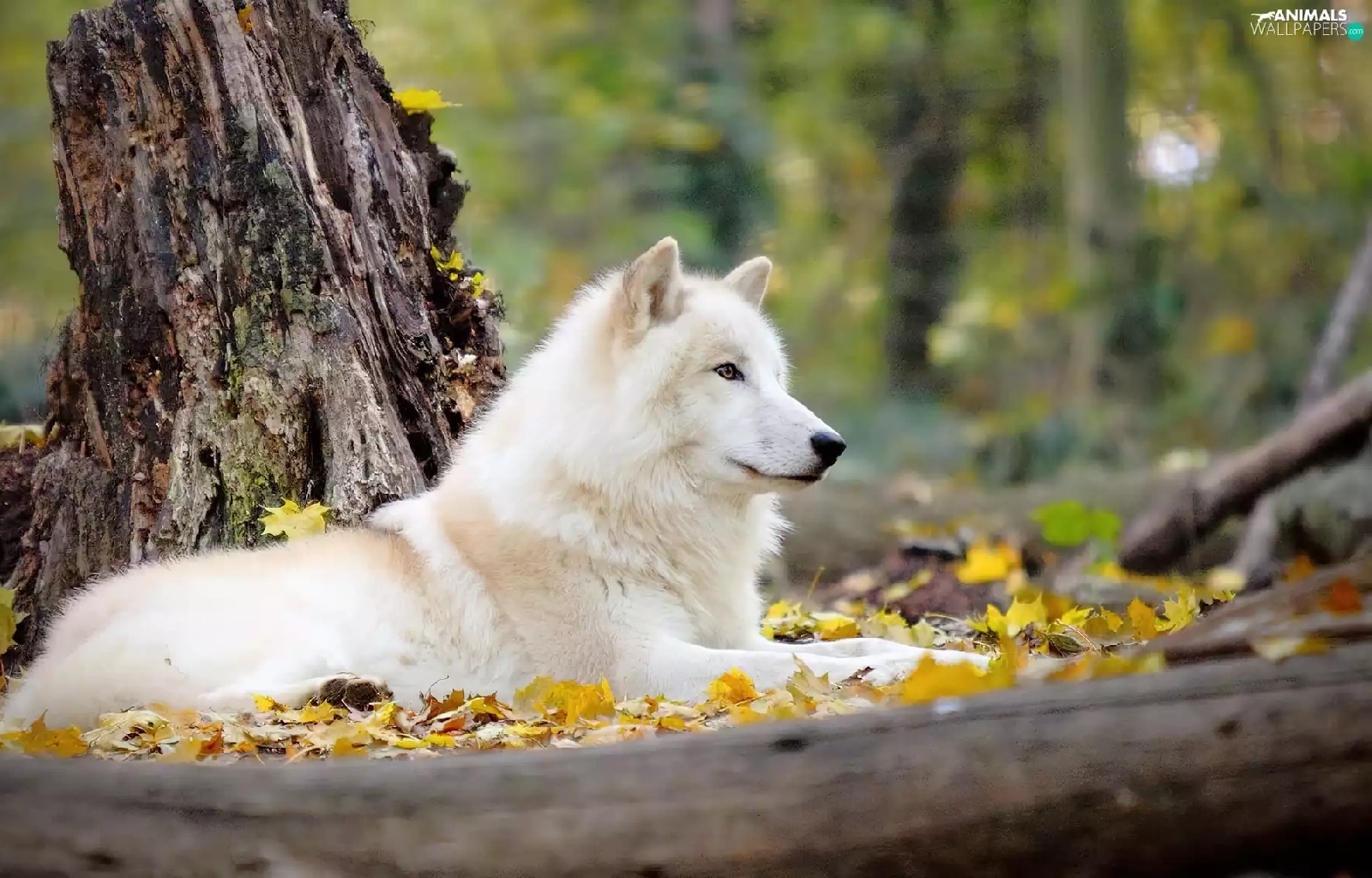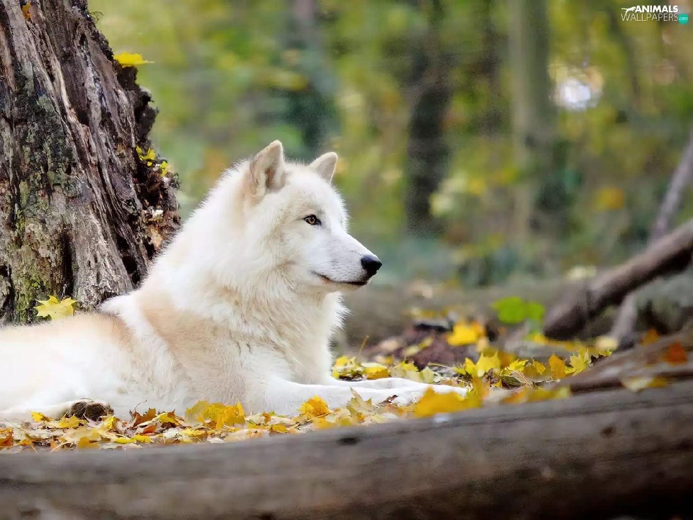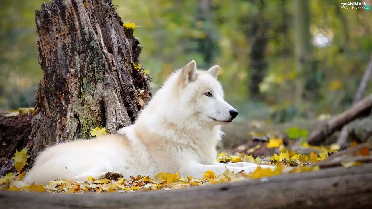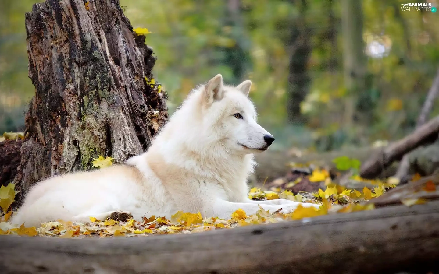Leaf, trees, White, viewes, trunk, autumn, dog