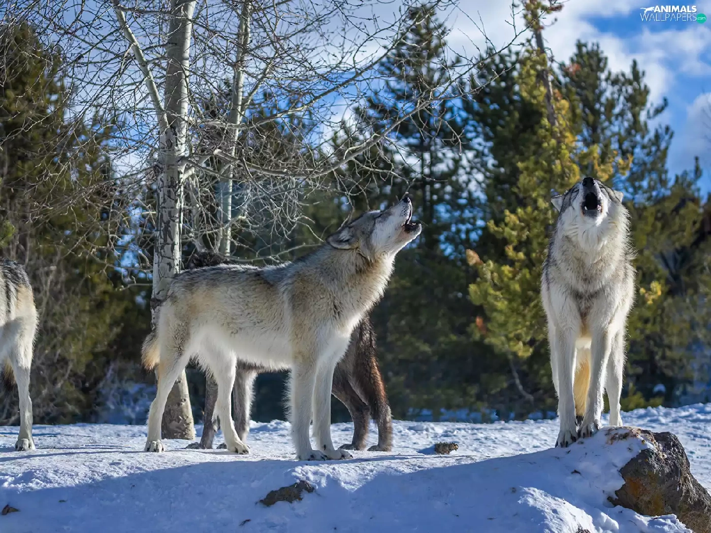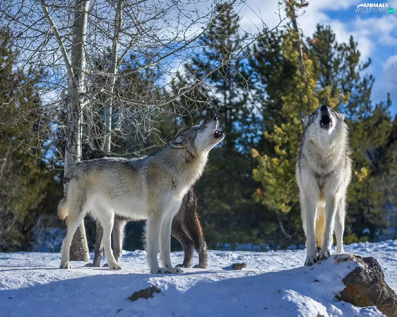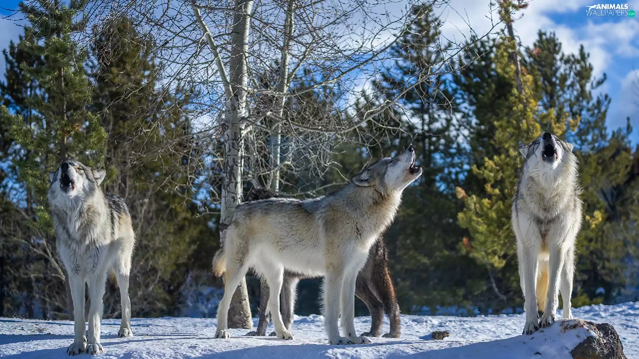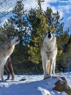 trees, viewes, wolves, snow, Howling