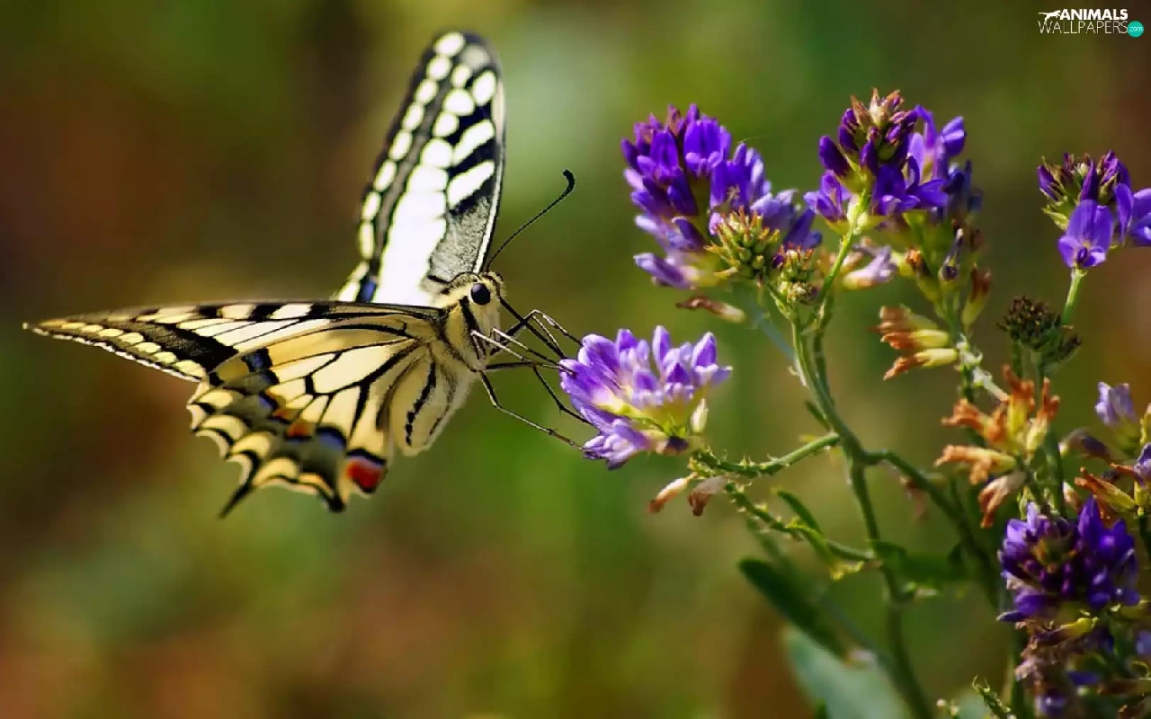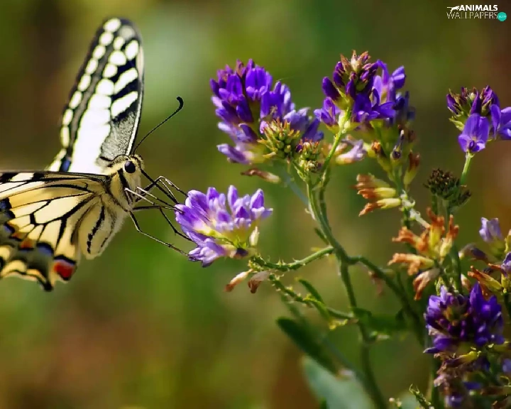 Yellow, Violet, Colourfull Flowers, butterfly