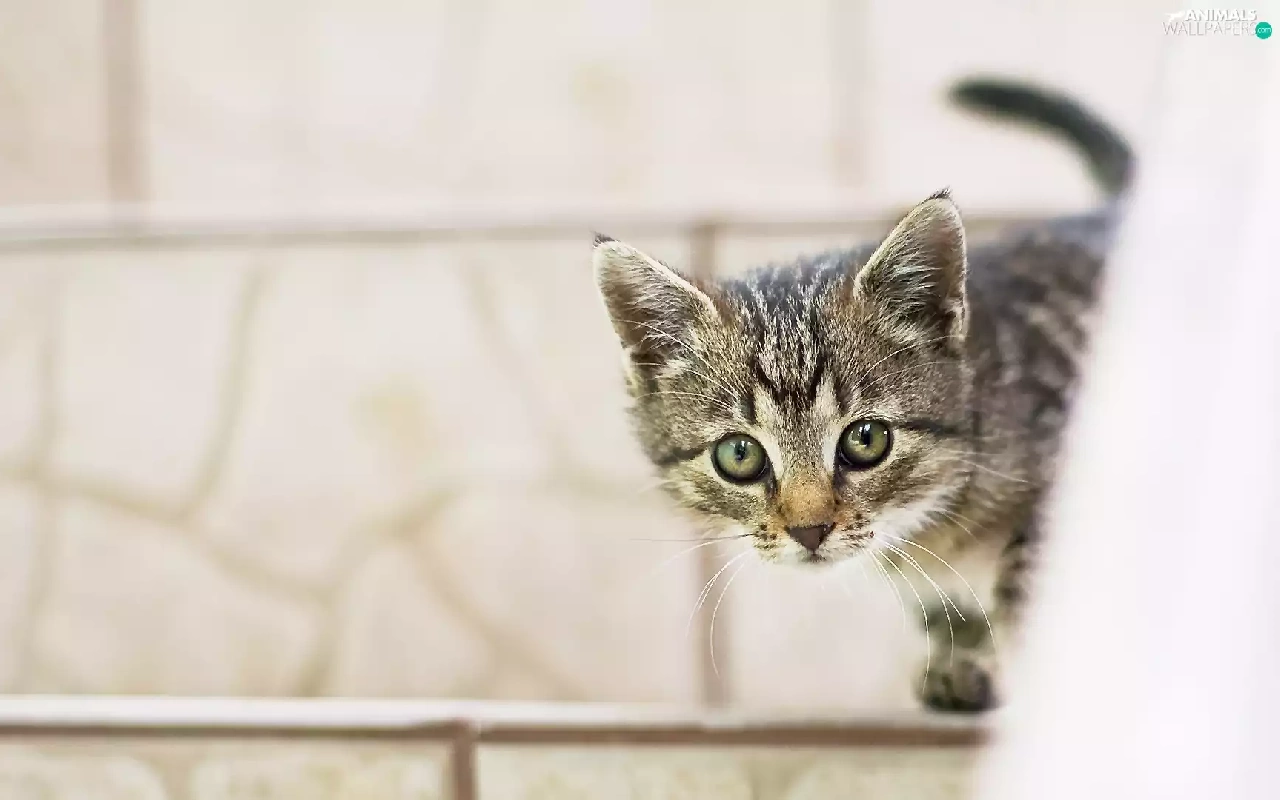 wall, cat, kitten