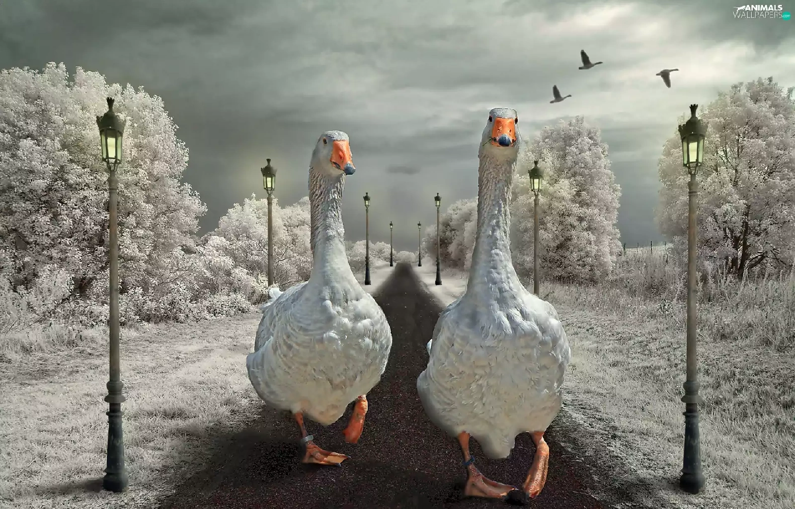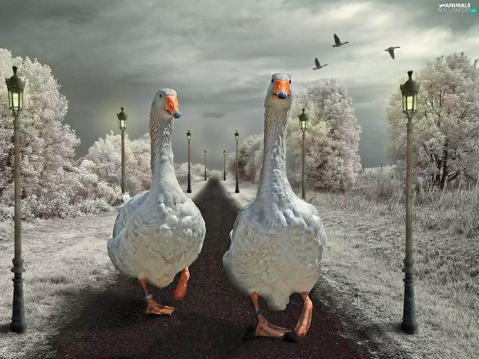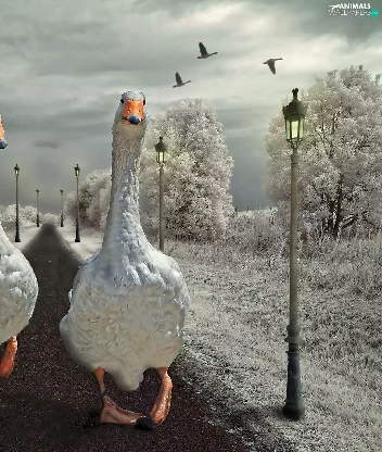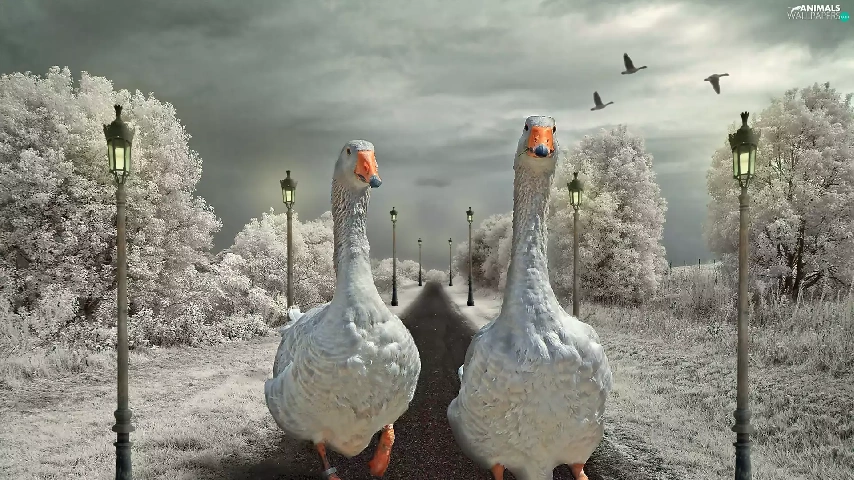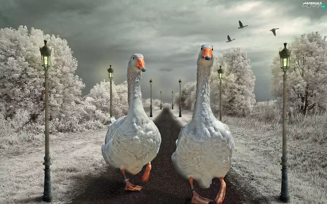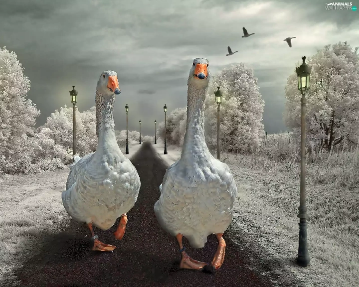geese, Way, winter, wander