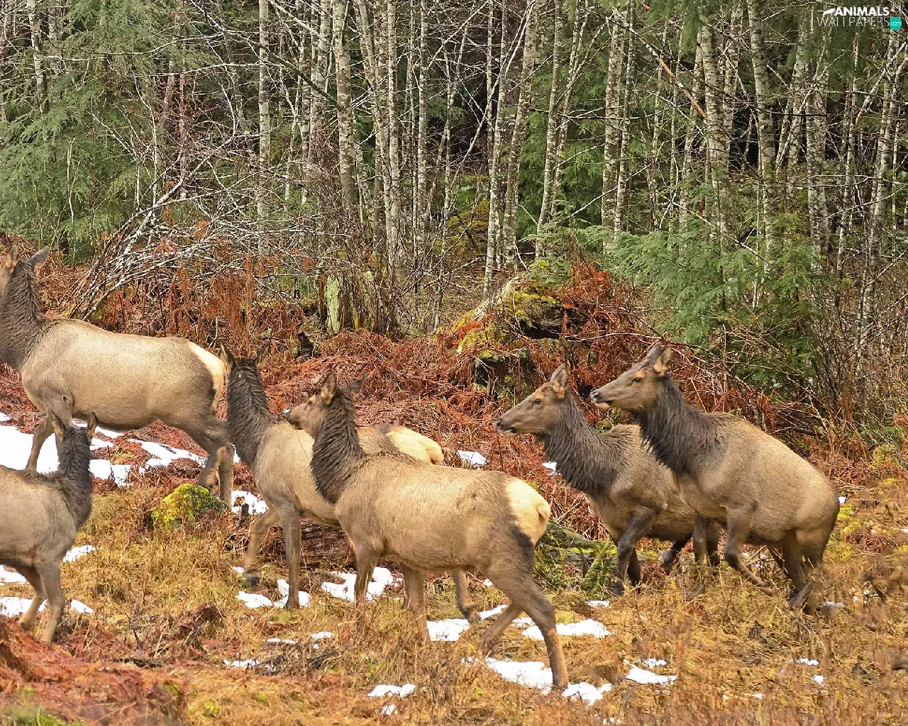 Canada, doe, forest, Wapiti