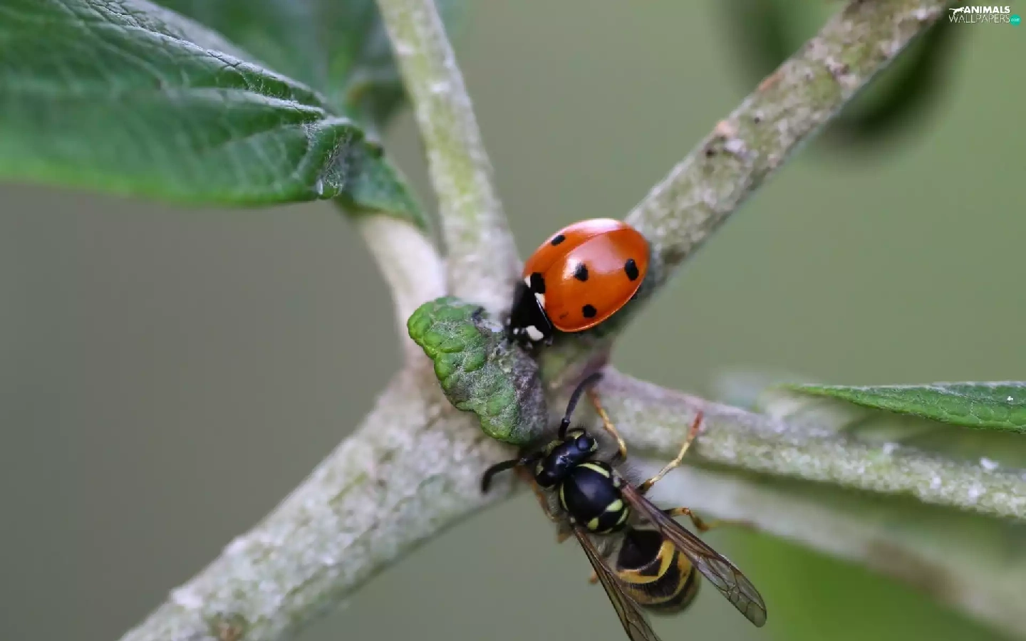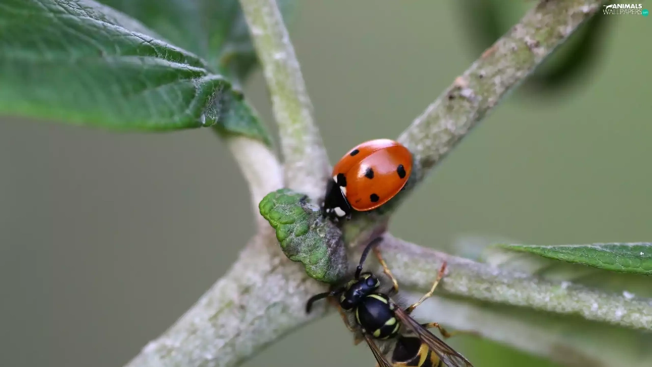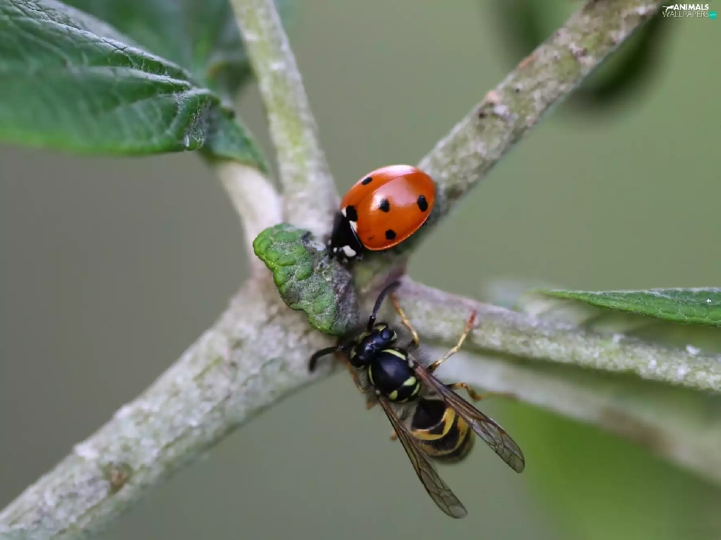 wasp, Twigs, ladybird