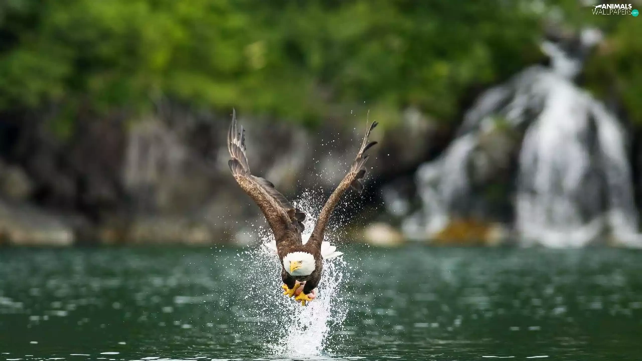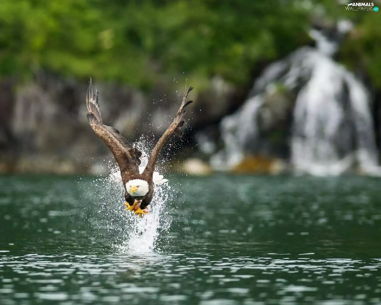 American Bald Eagle, water