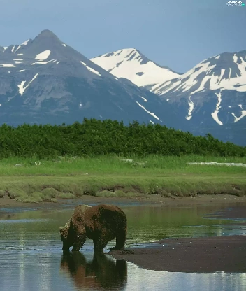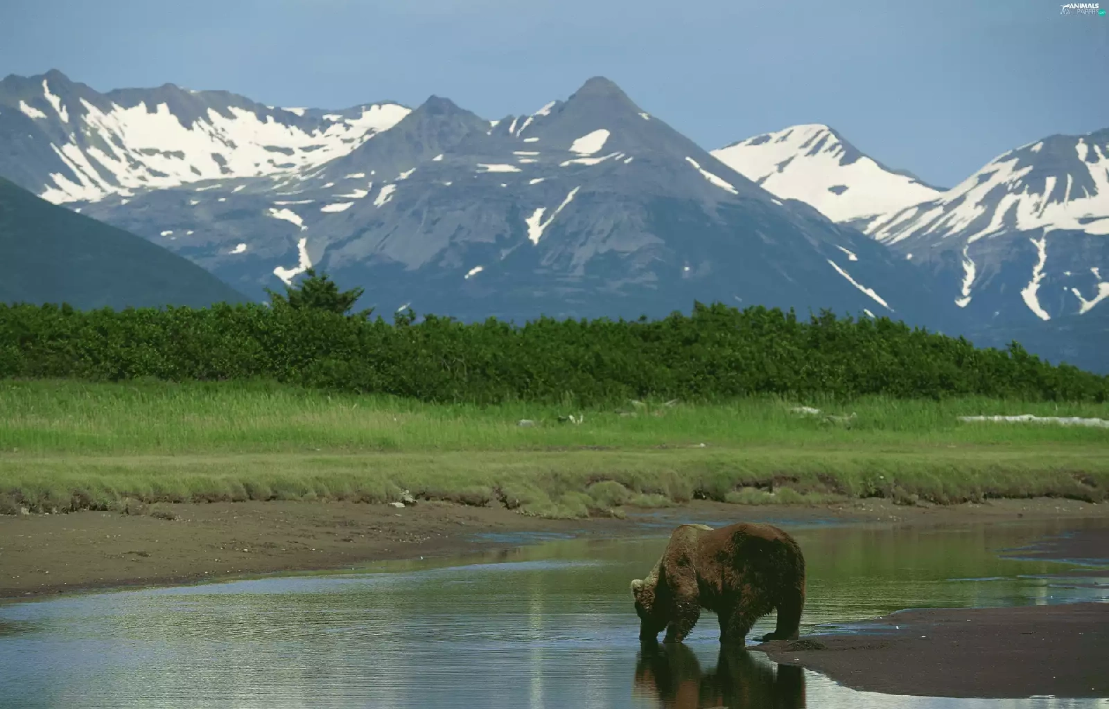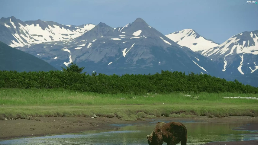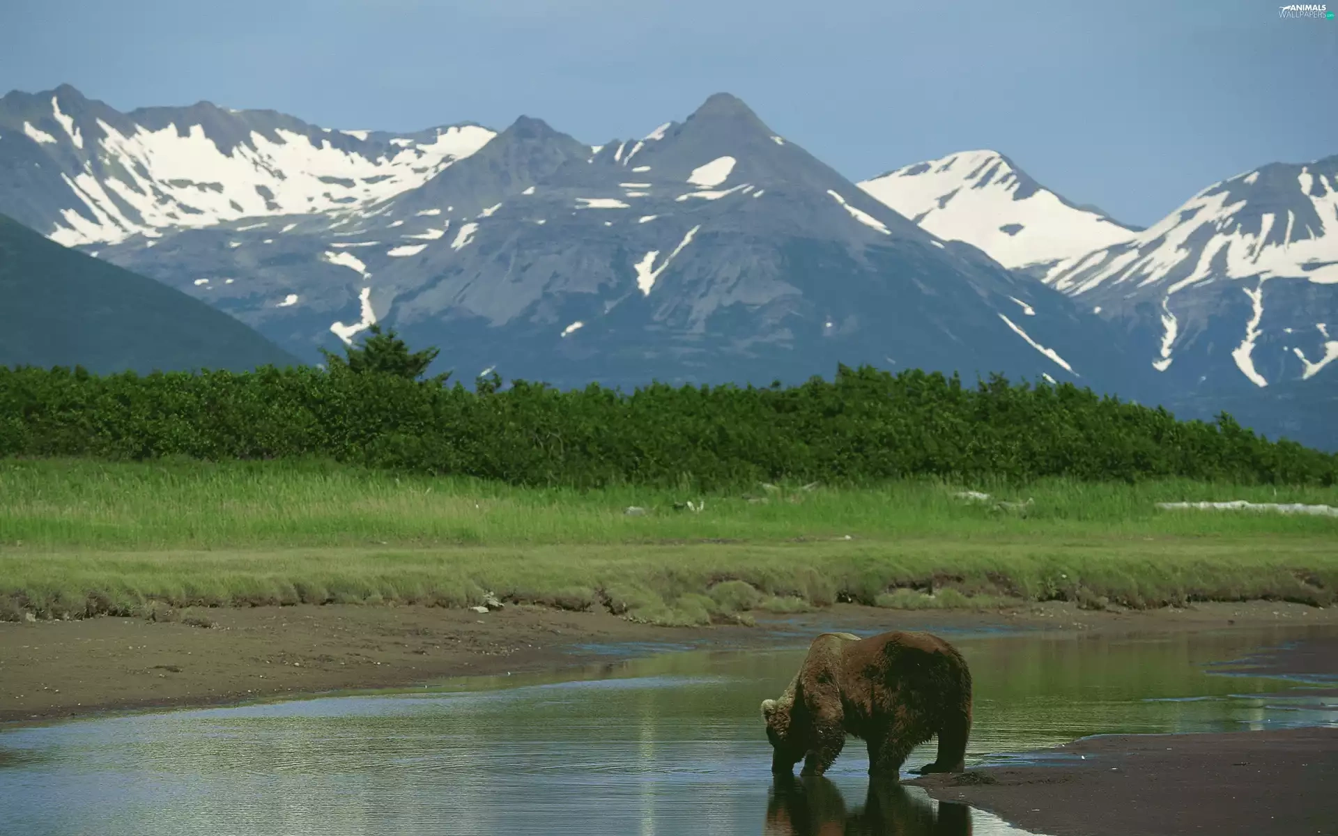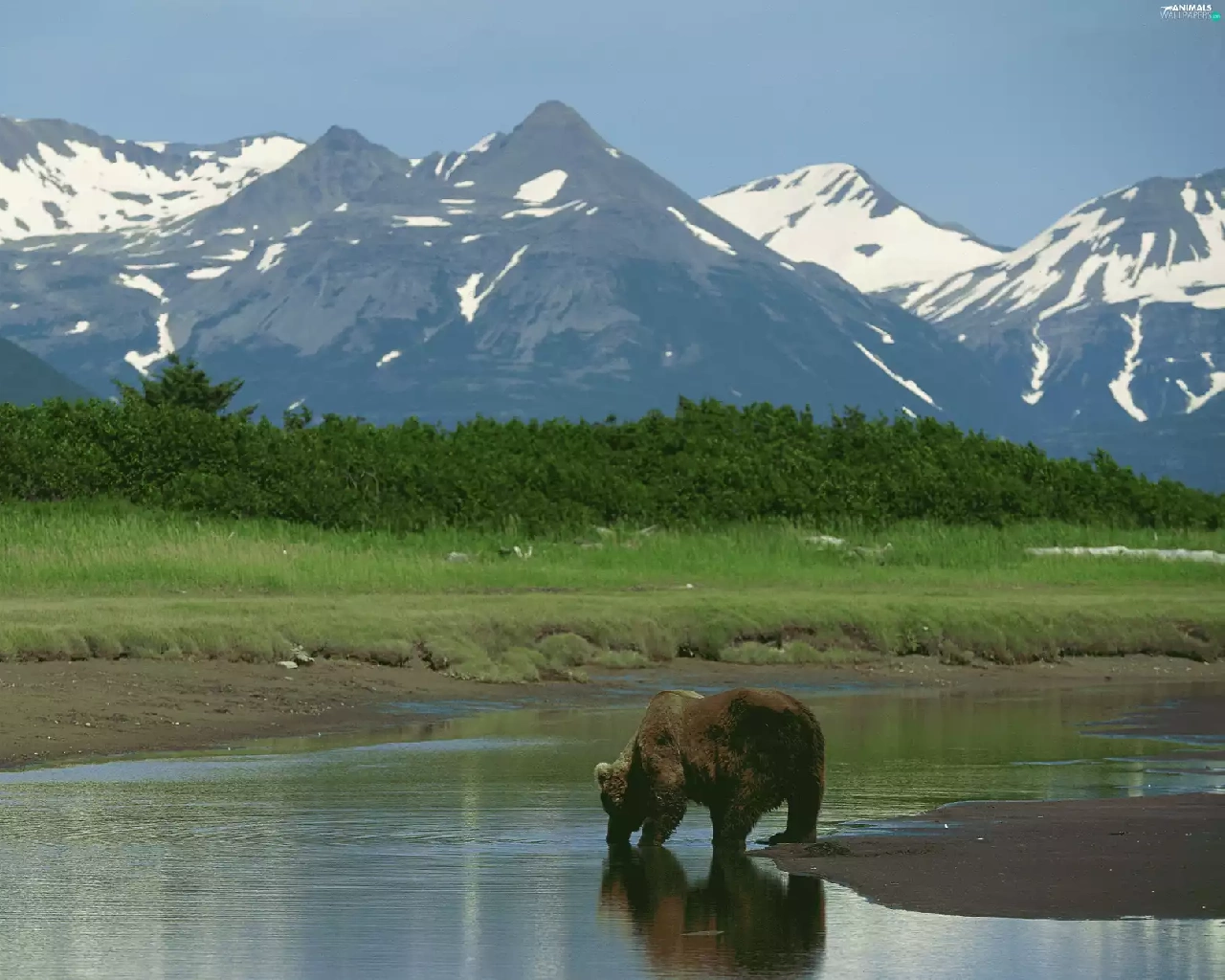 Bear, peaks, Mountains, water