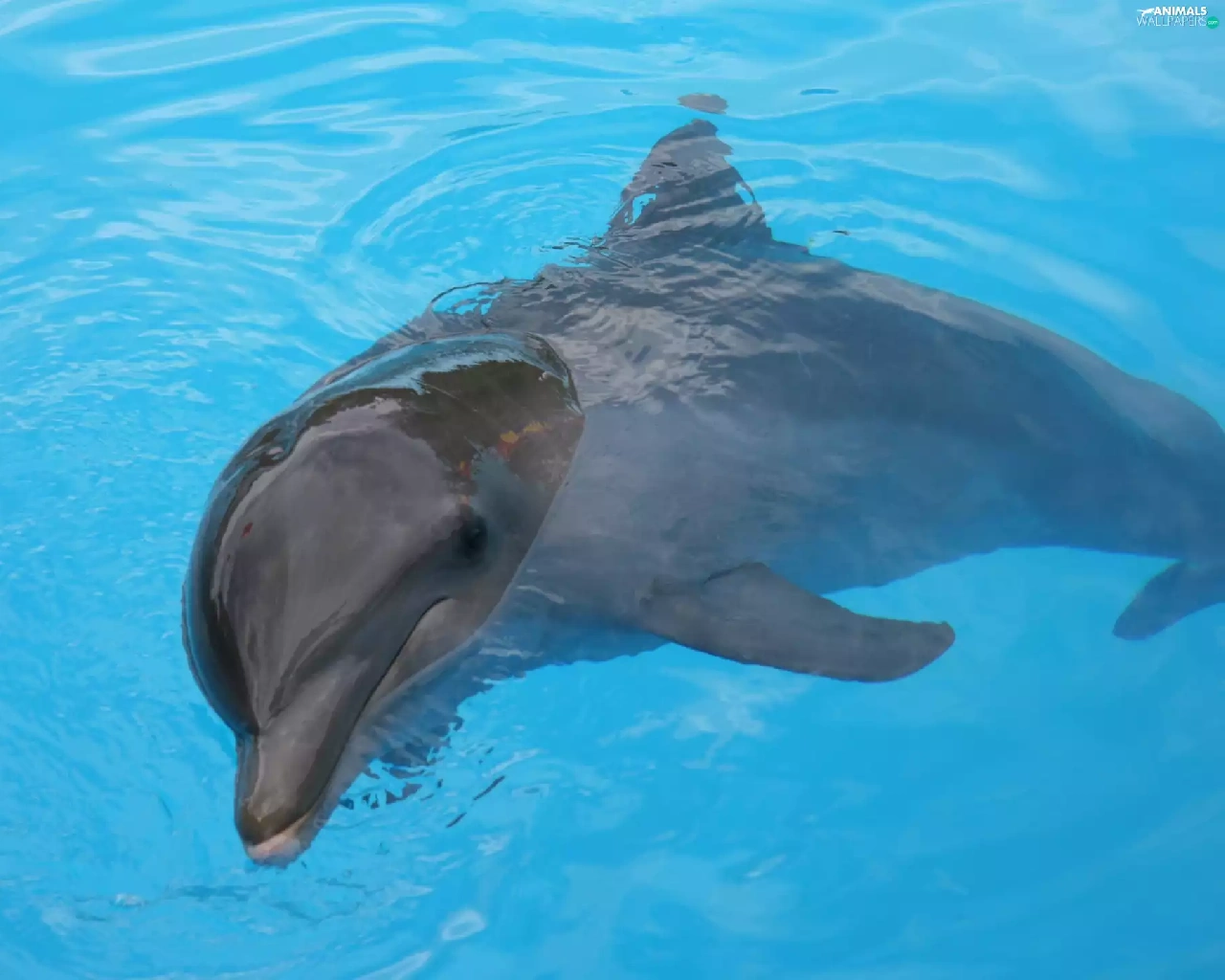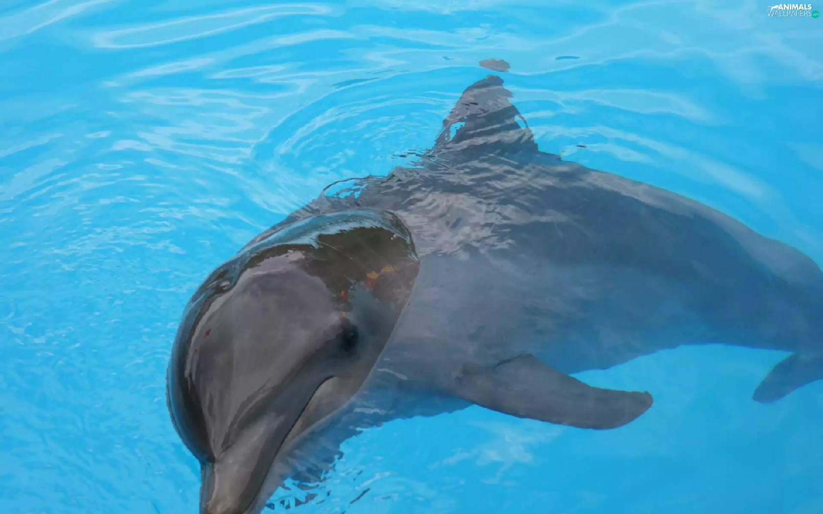 water, dolphin, blue