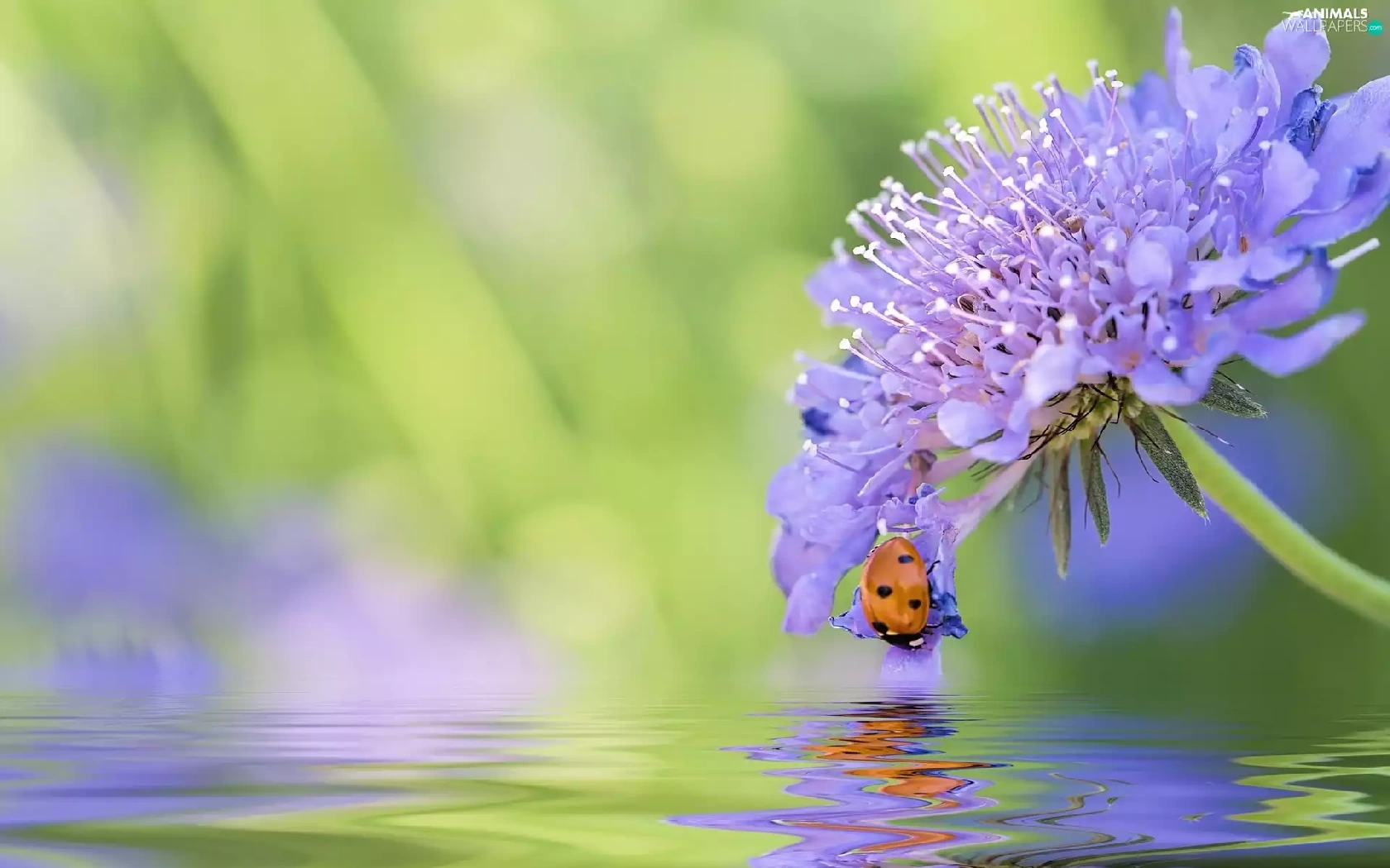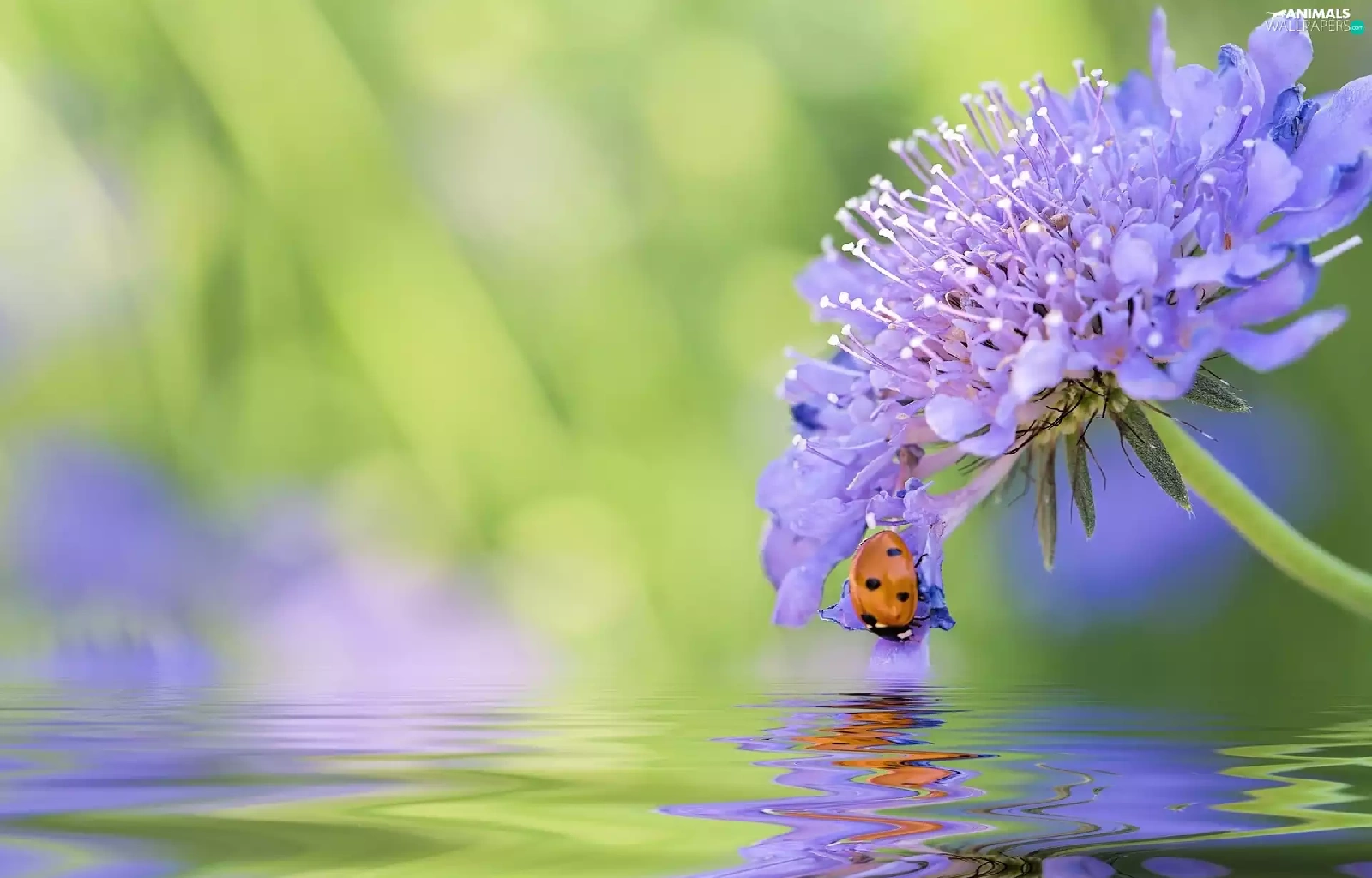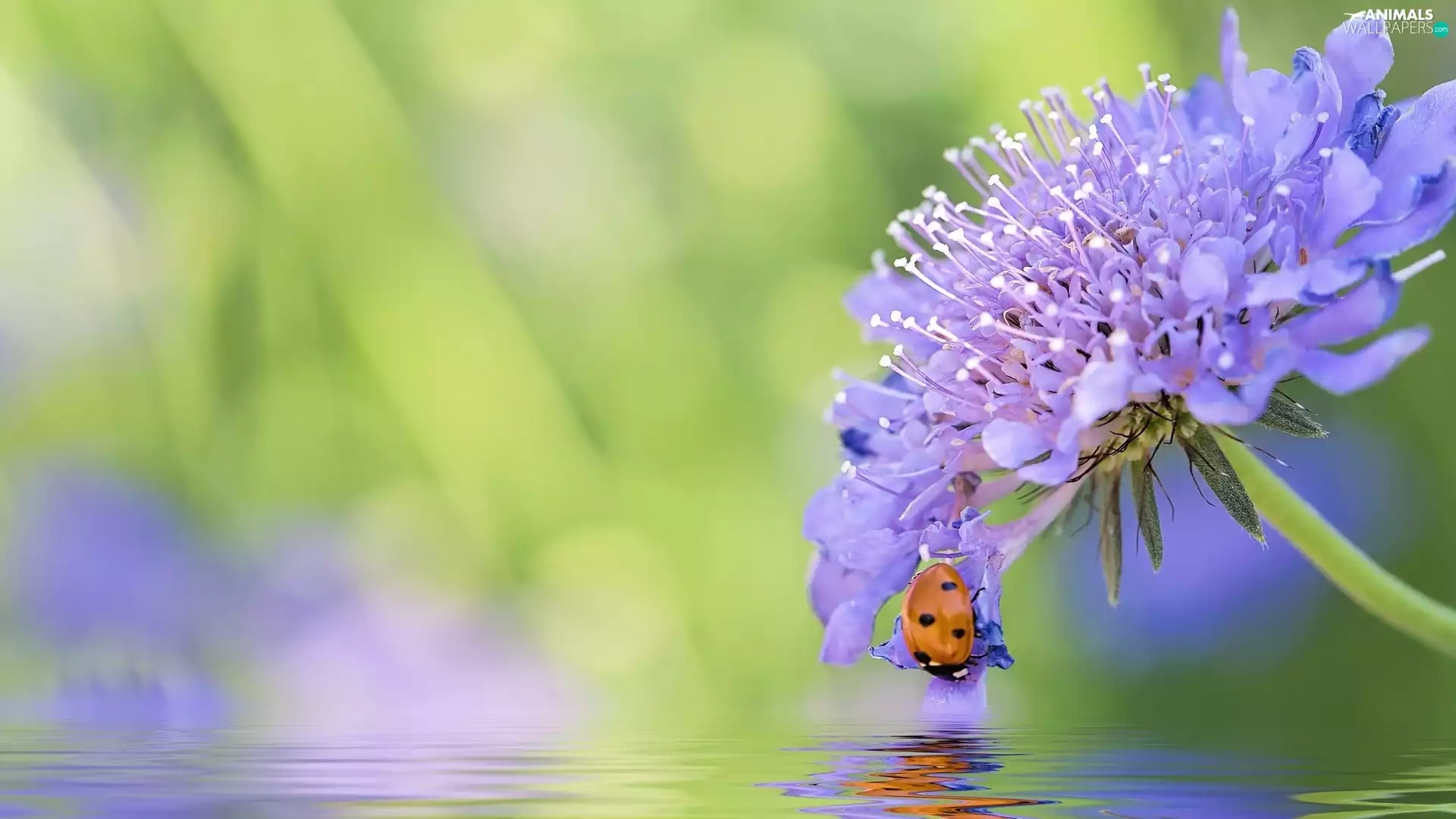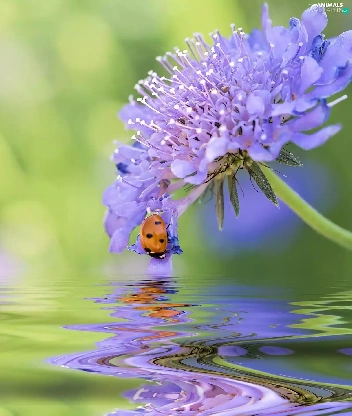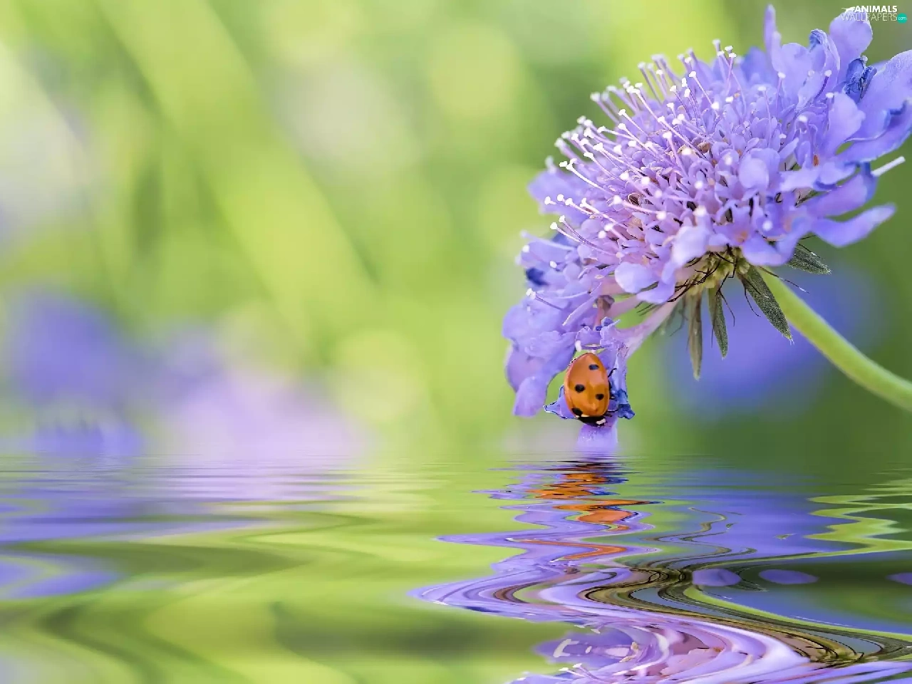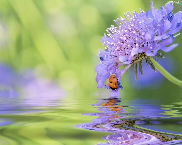 ladybird, water, blur, Colourfull Flowers