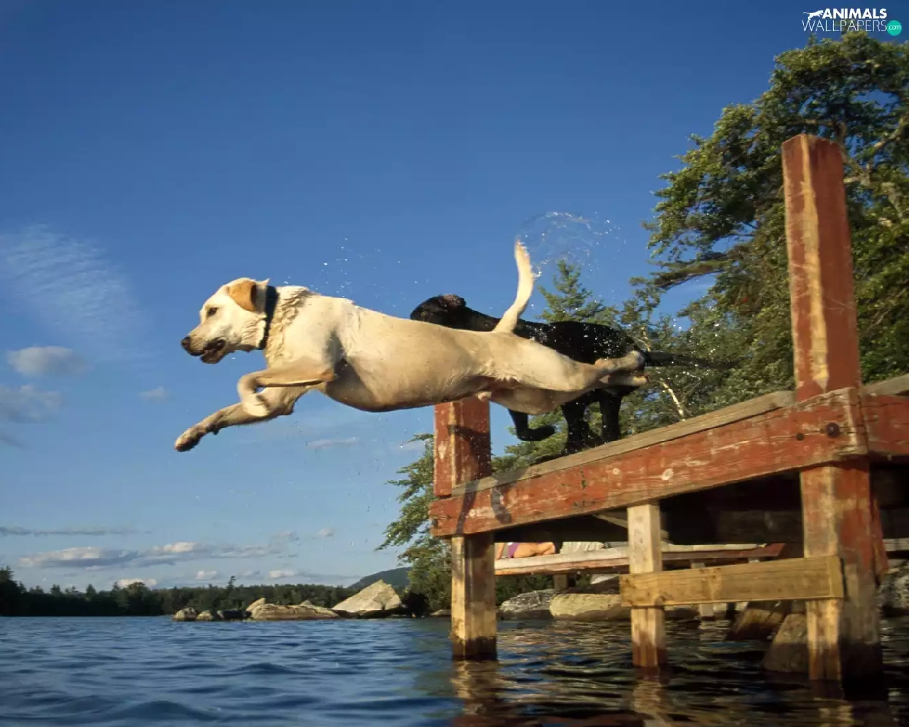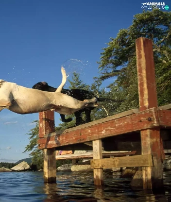 Dogs, Platform, jump, water