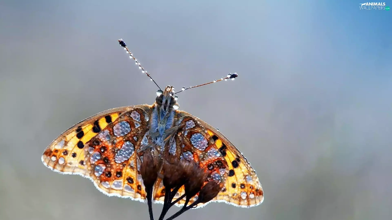 water, butterfly, droplets
