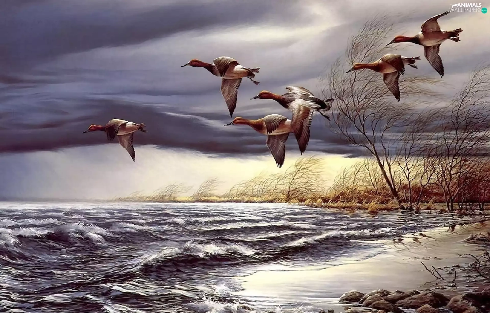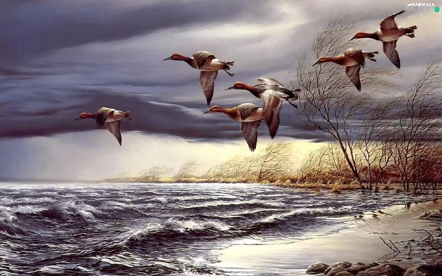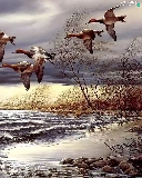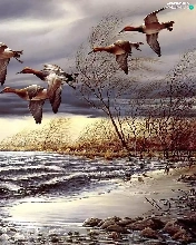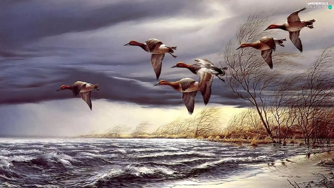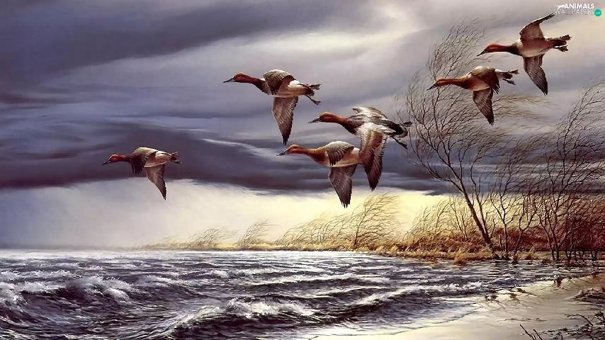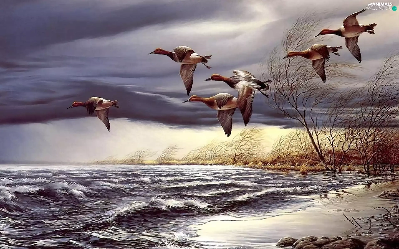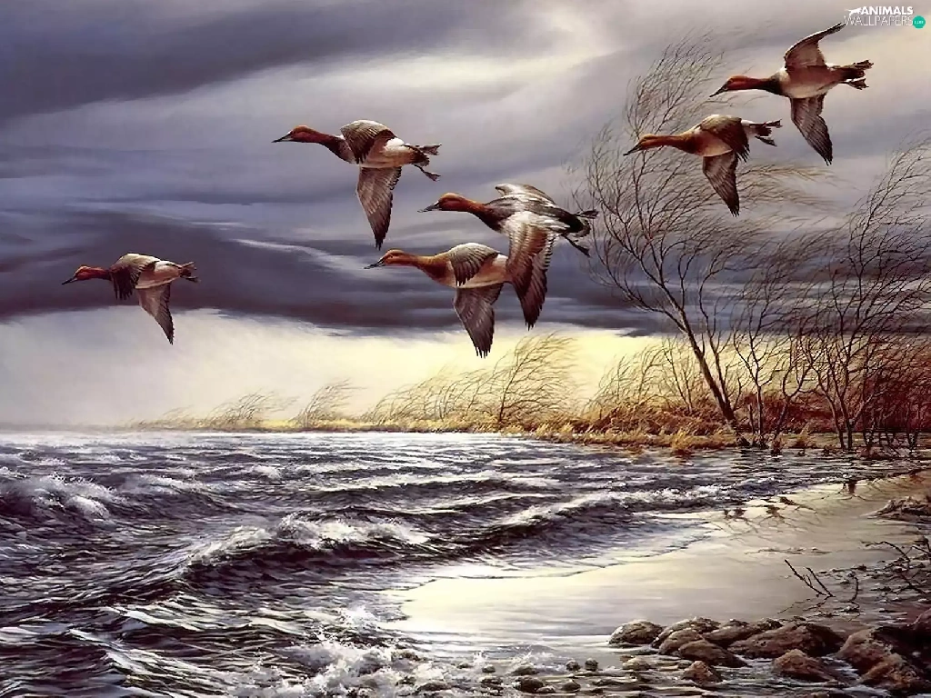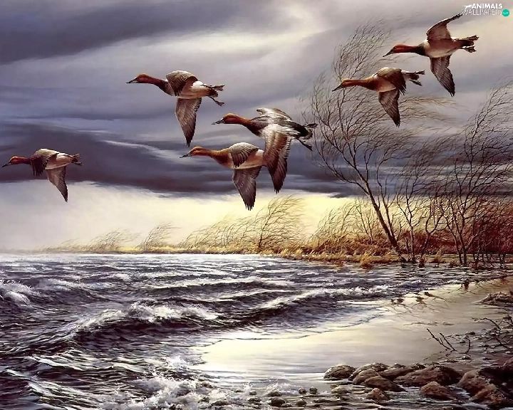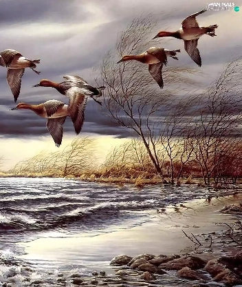 ducks, trees, viewes, water