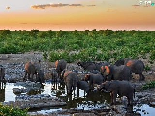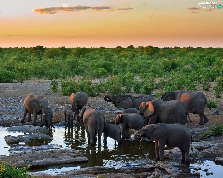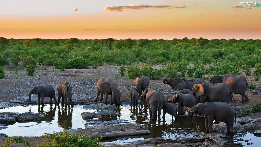 water, herd, elephants