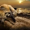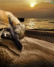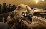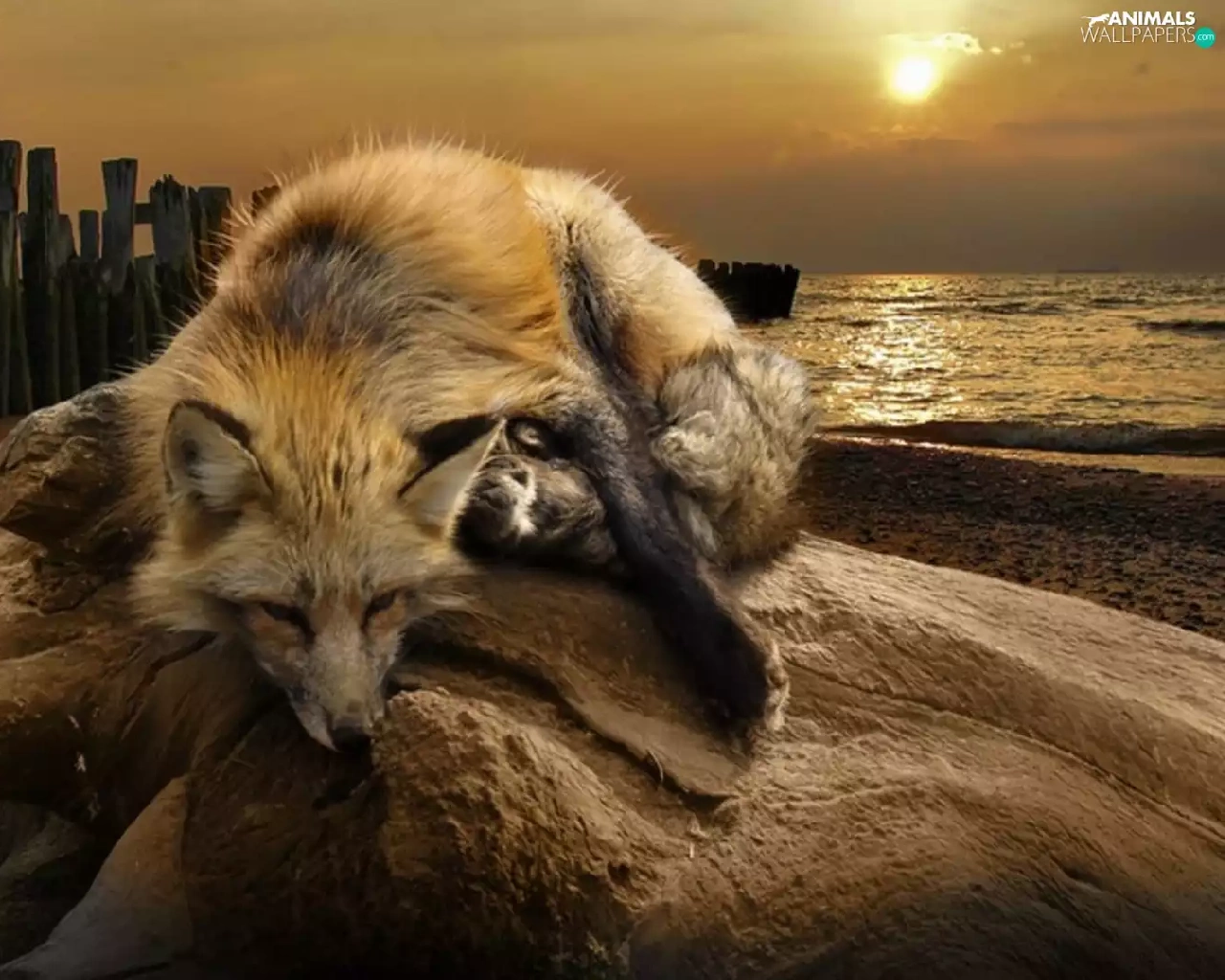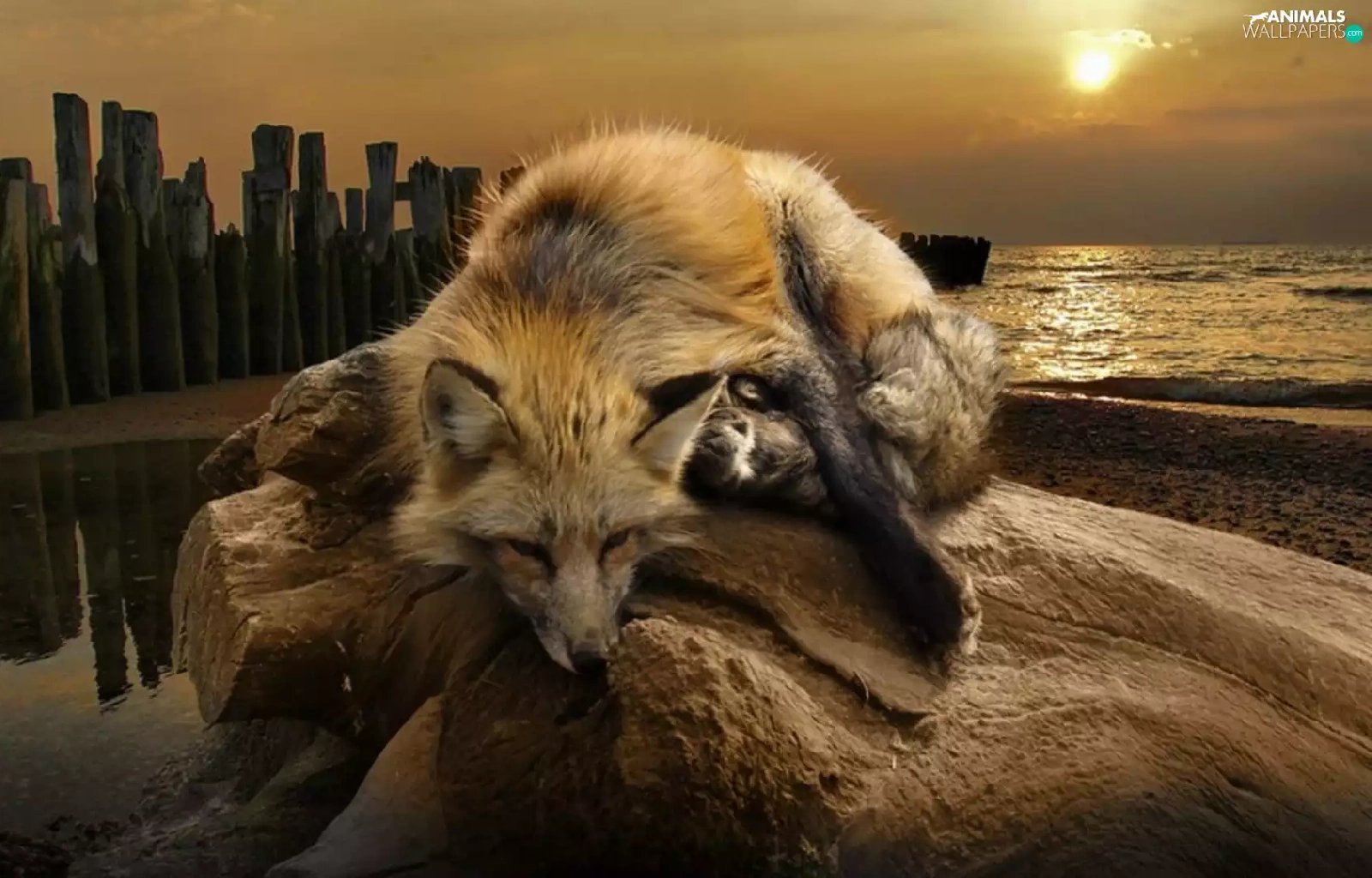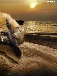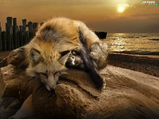 Fox, west, sun, water