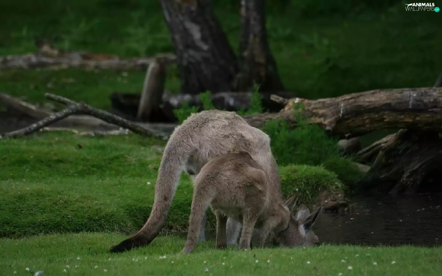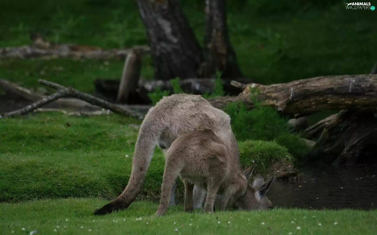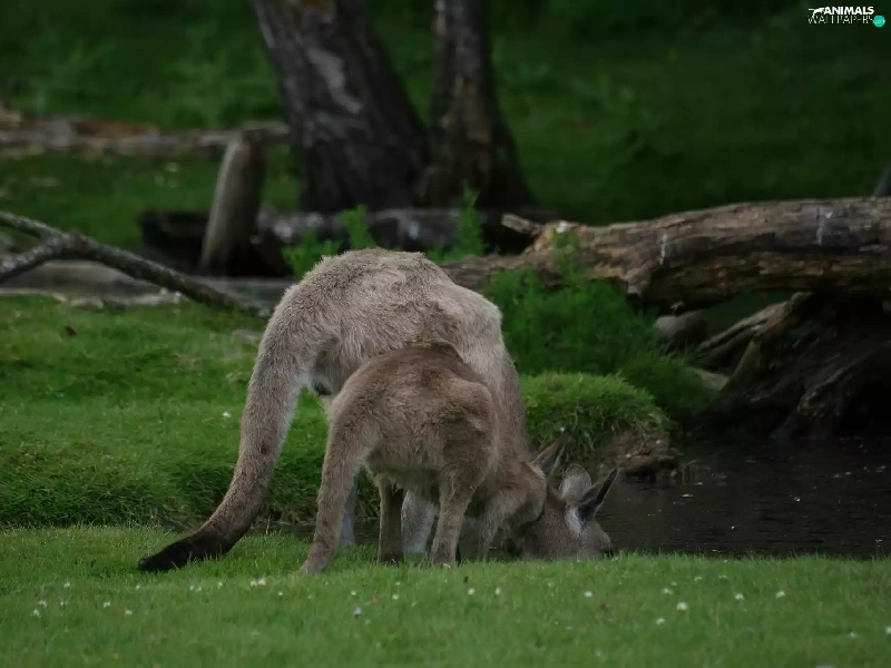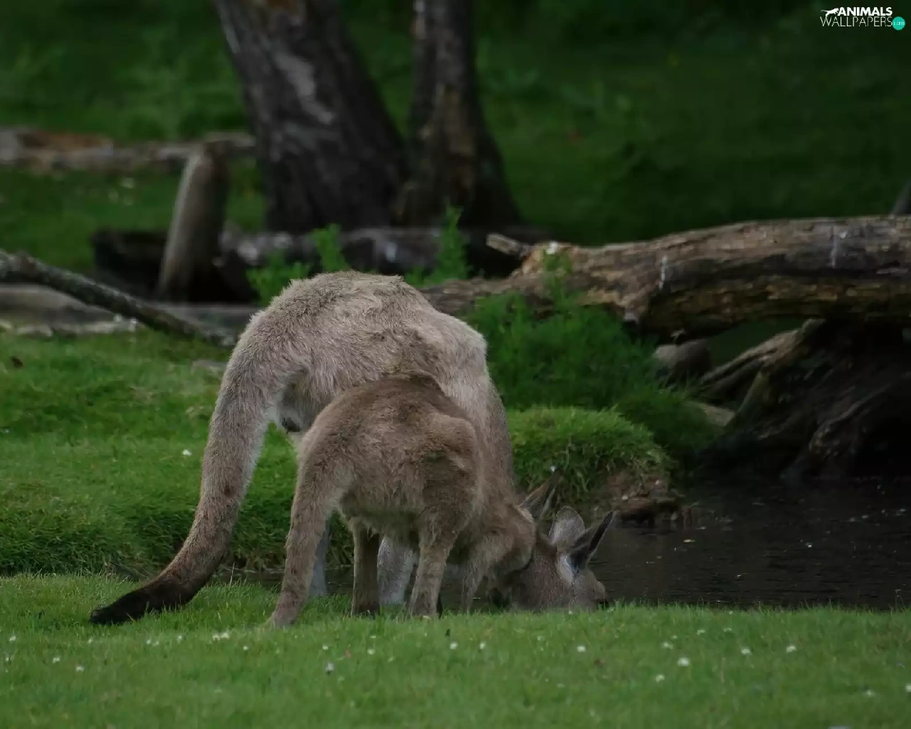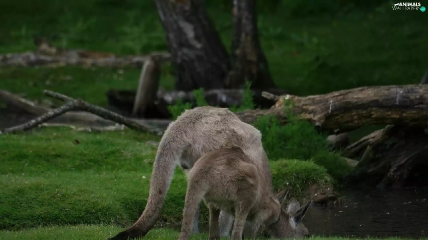 water, kangaroo, grass