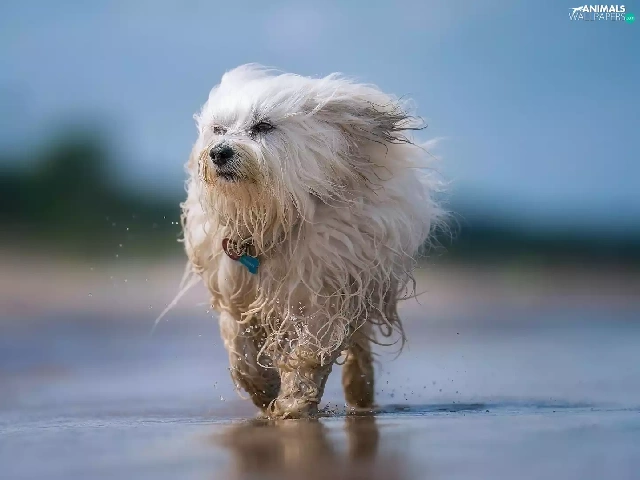 water, dog, Havanese