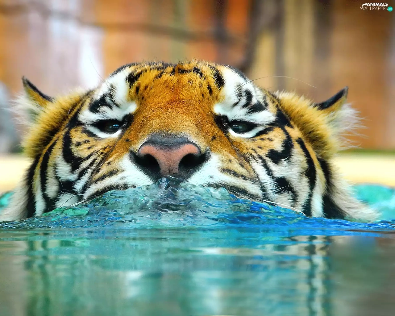 water, tiger, Head