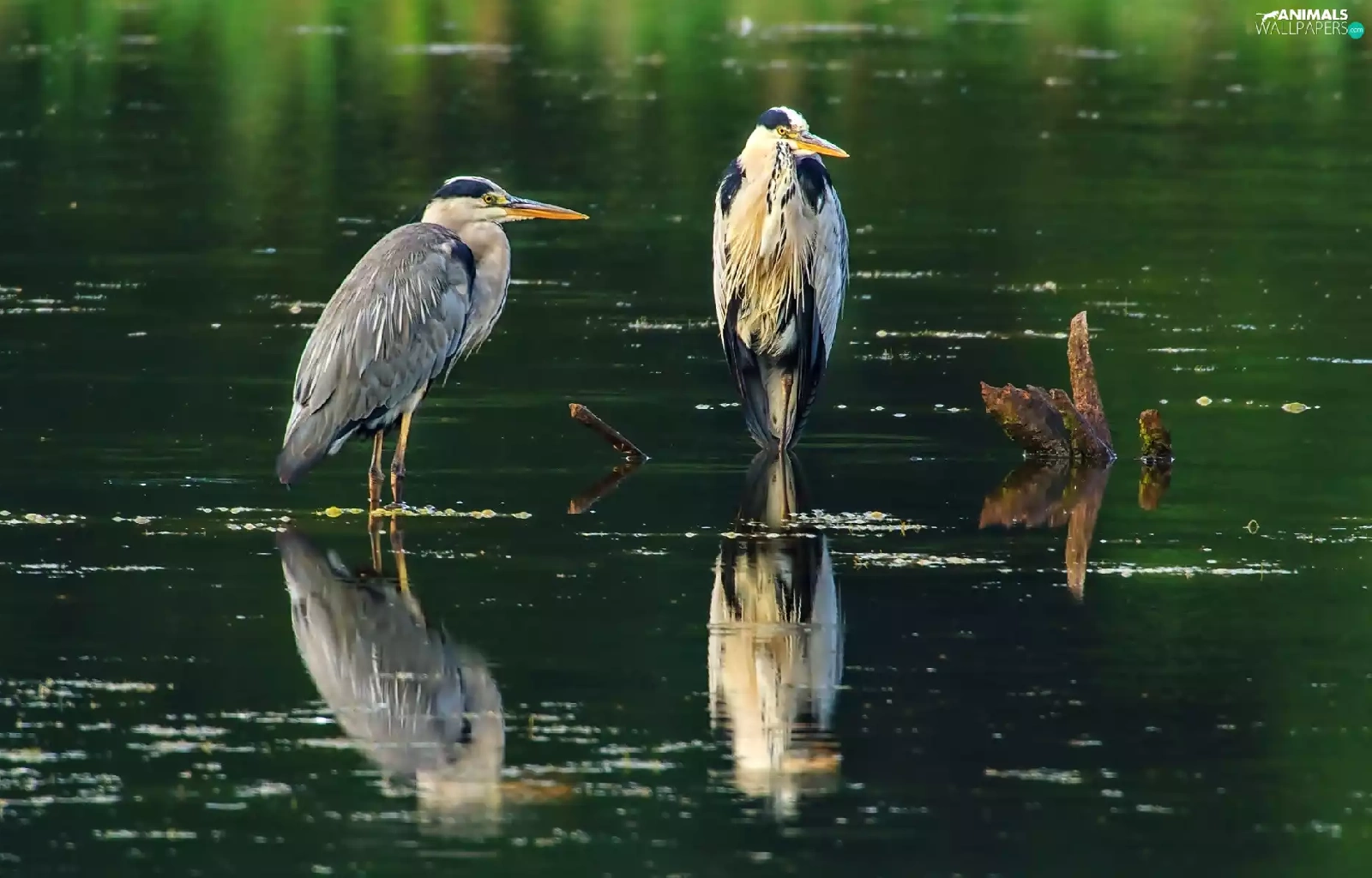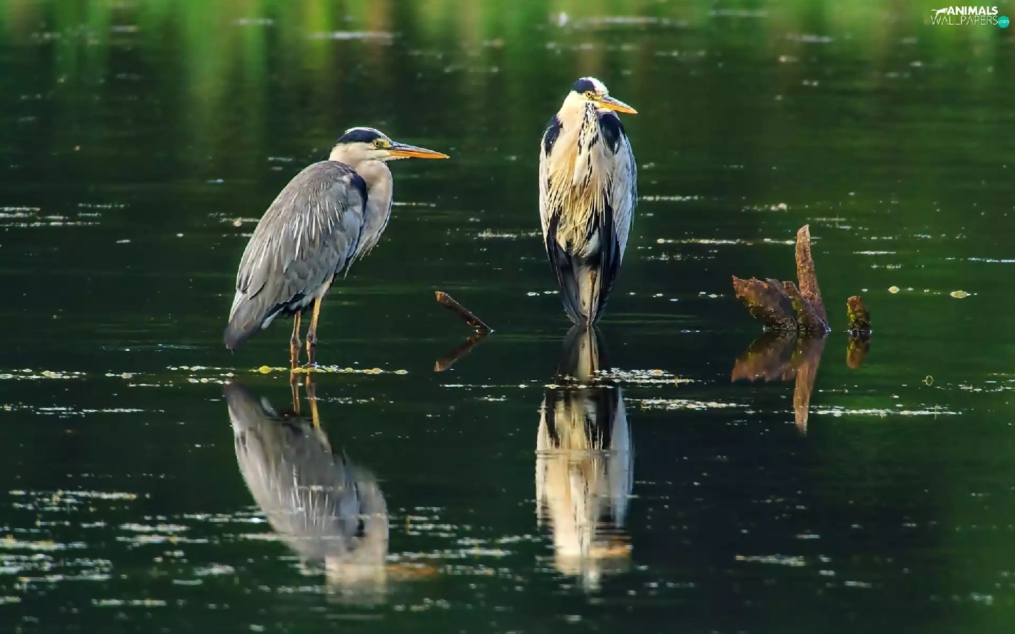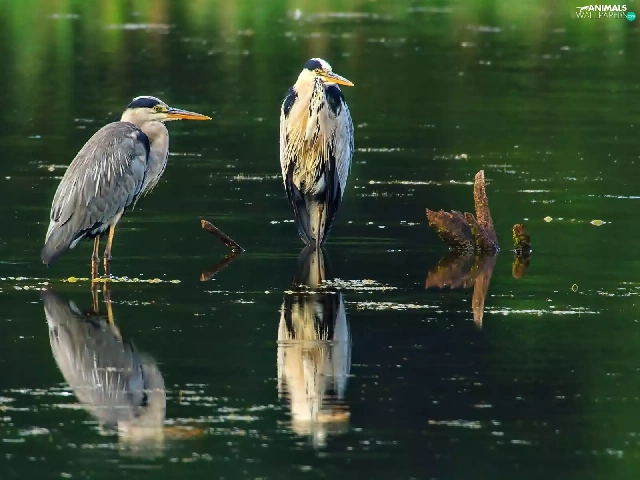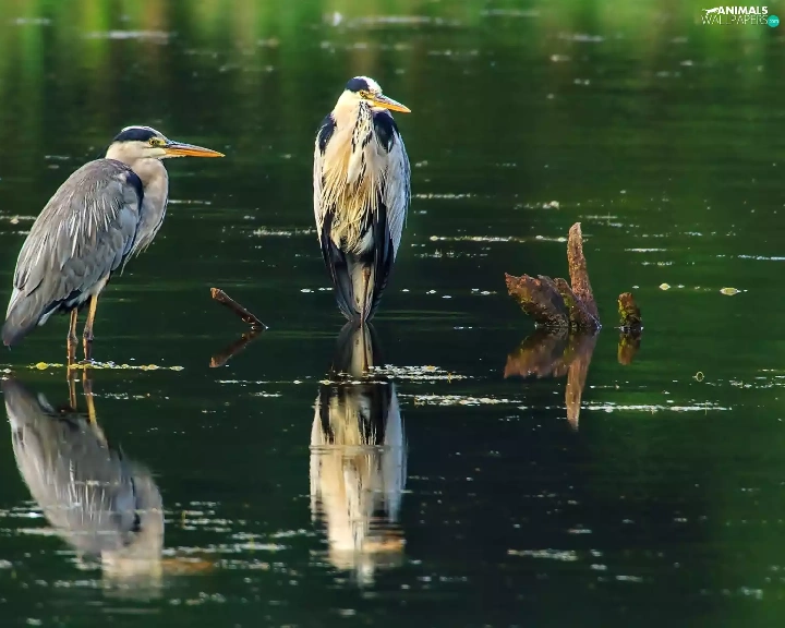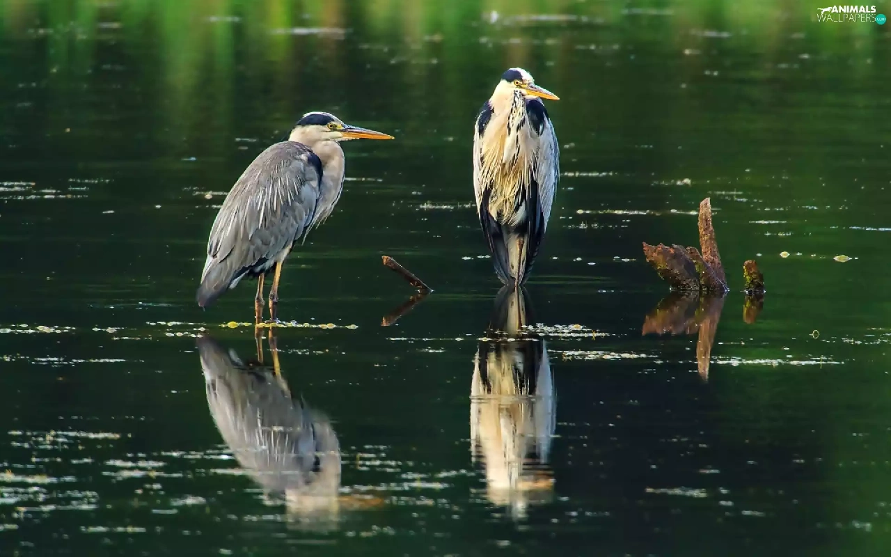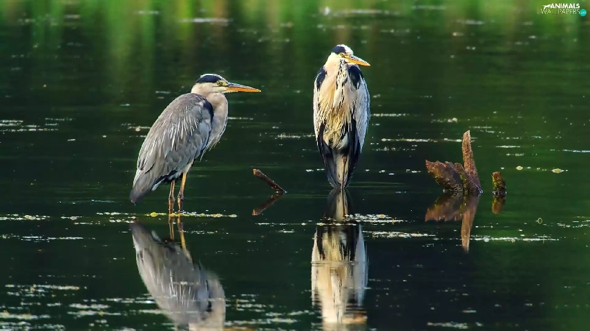 water, Two, herons