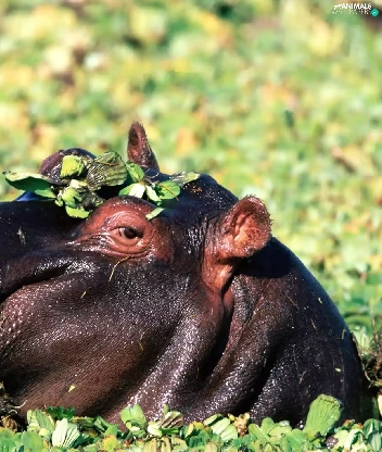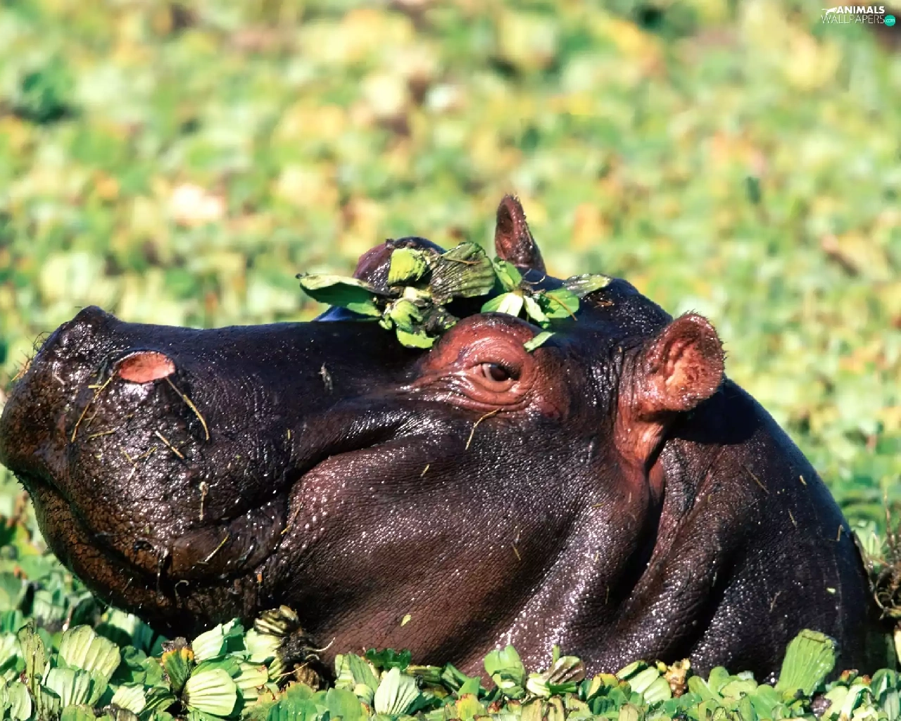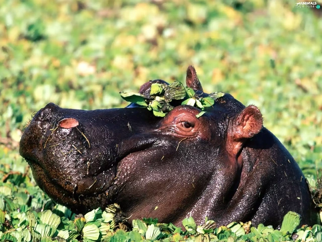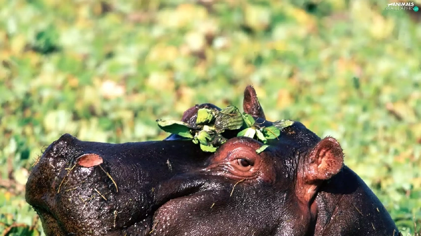hippo, Plants, shine, water