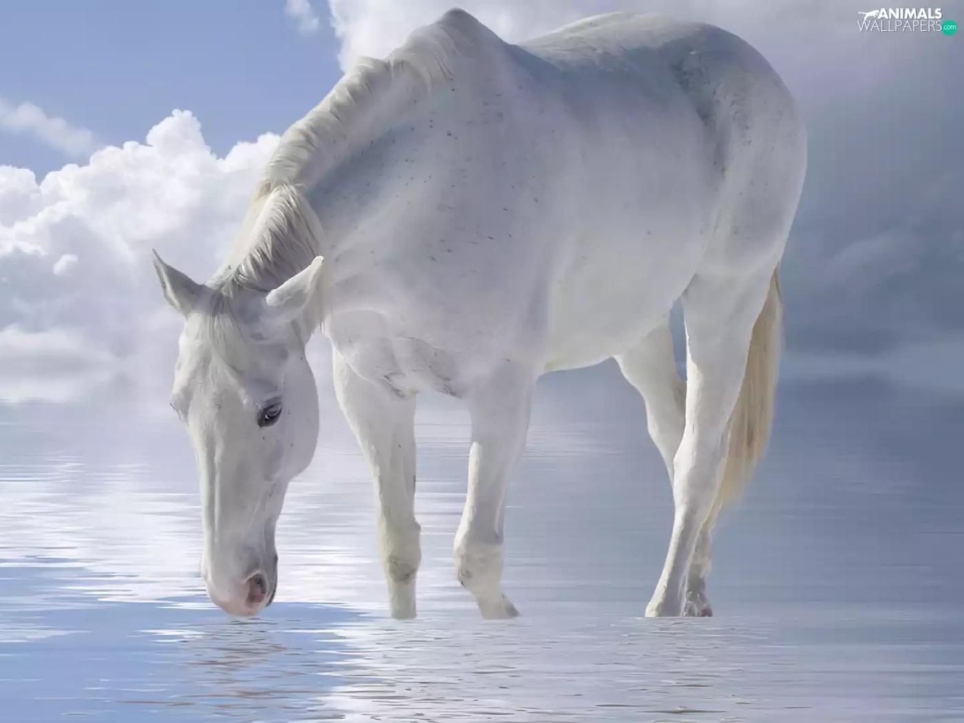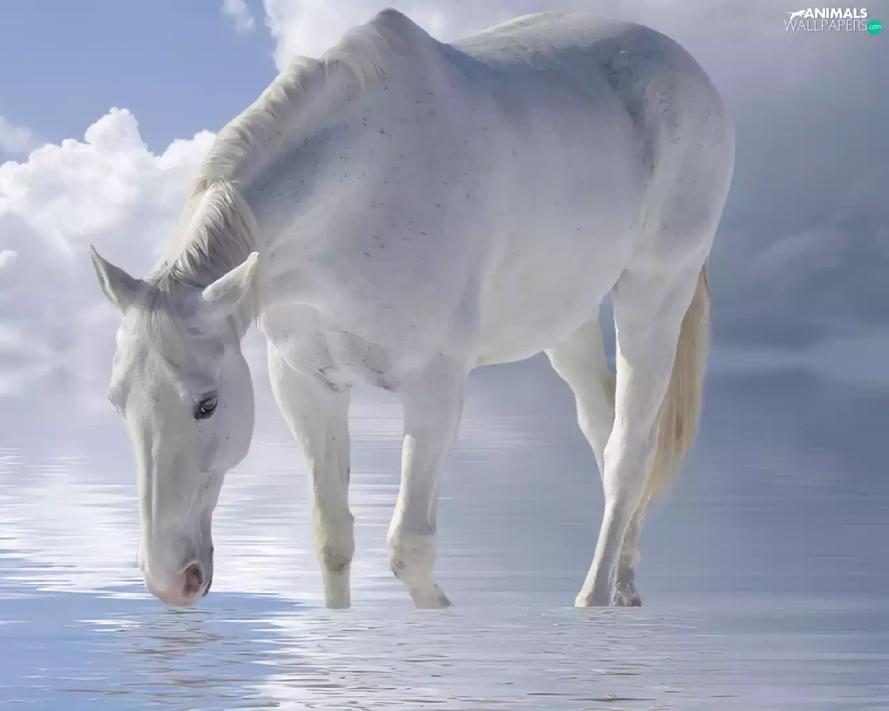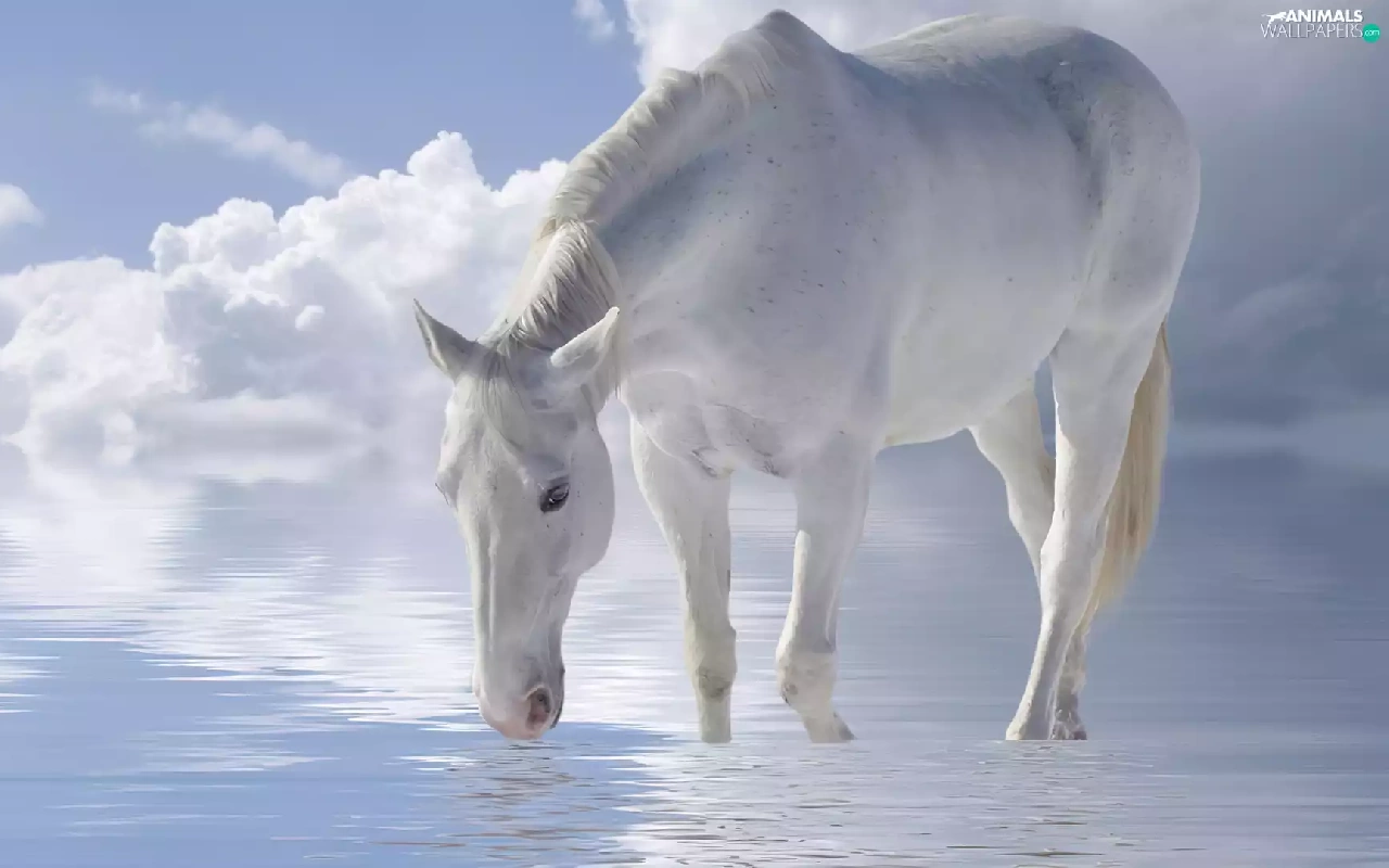 Horse, Sky, clouds, water