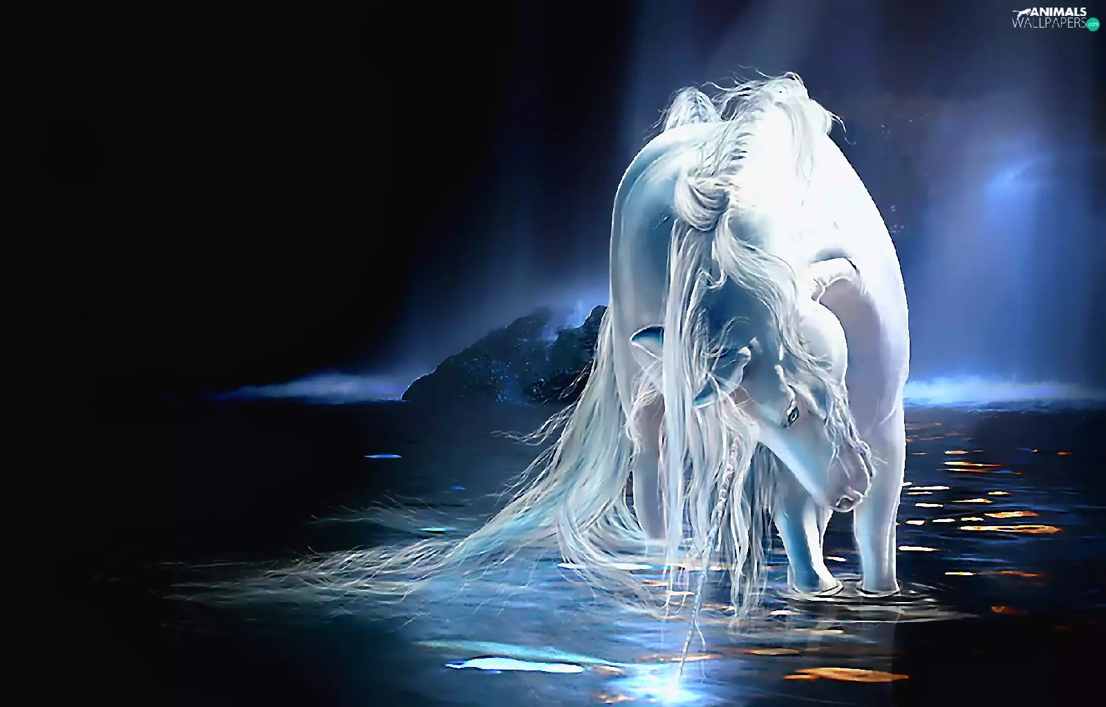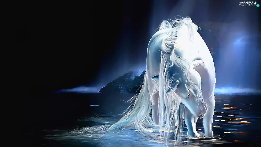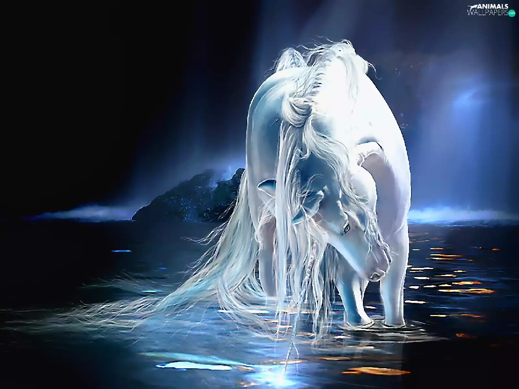 water, White, Horse