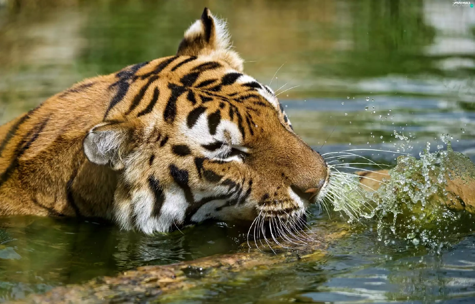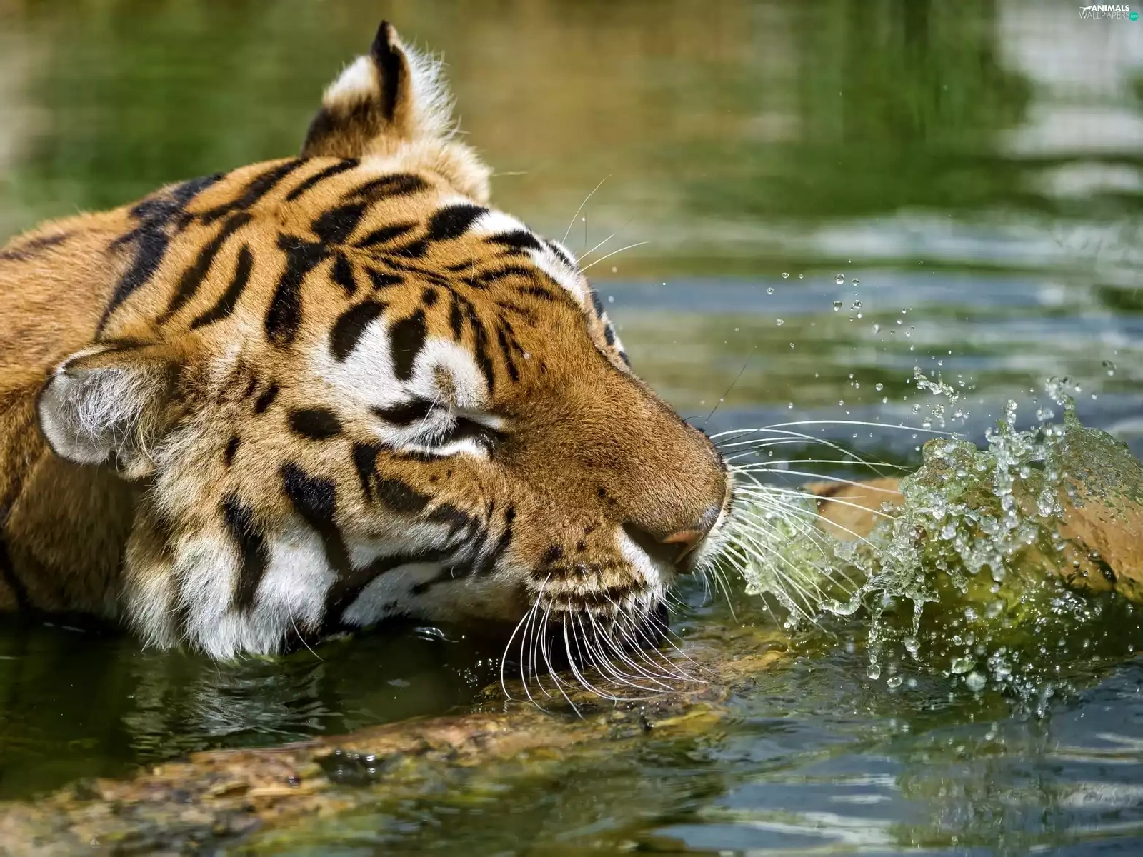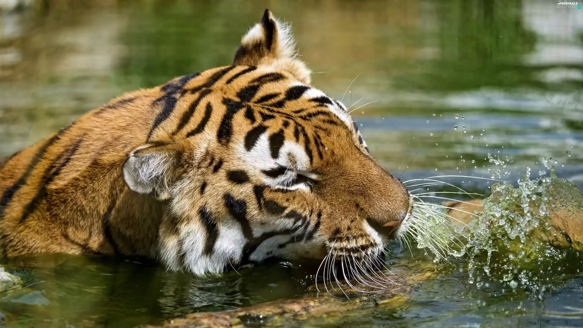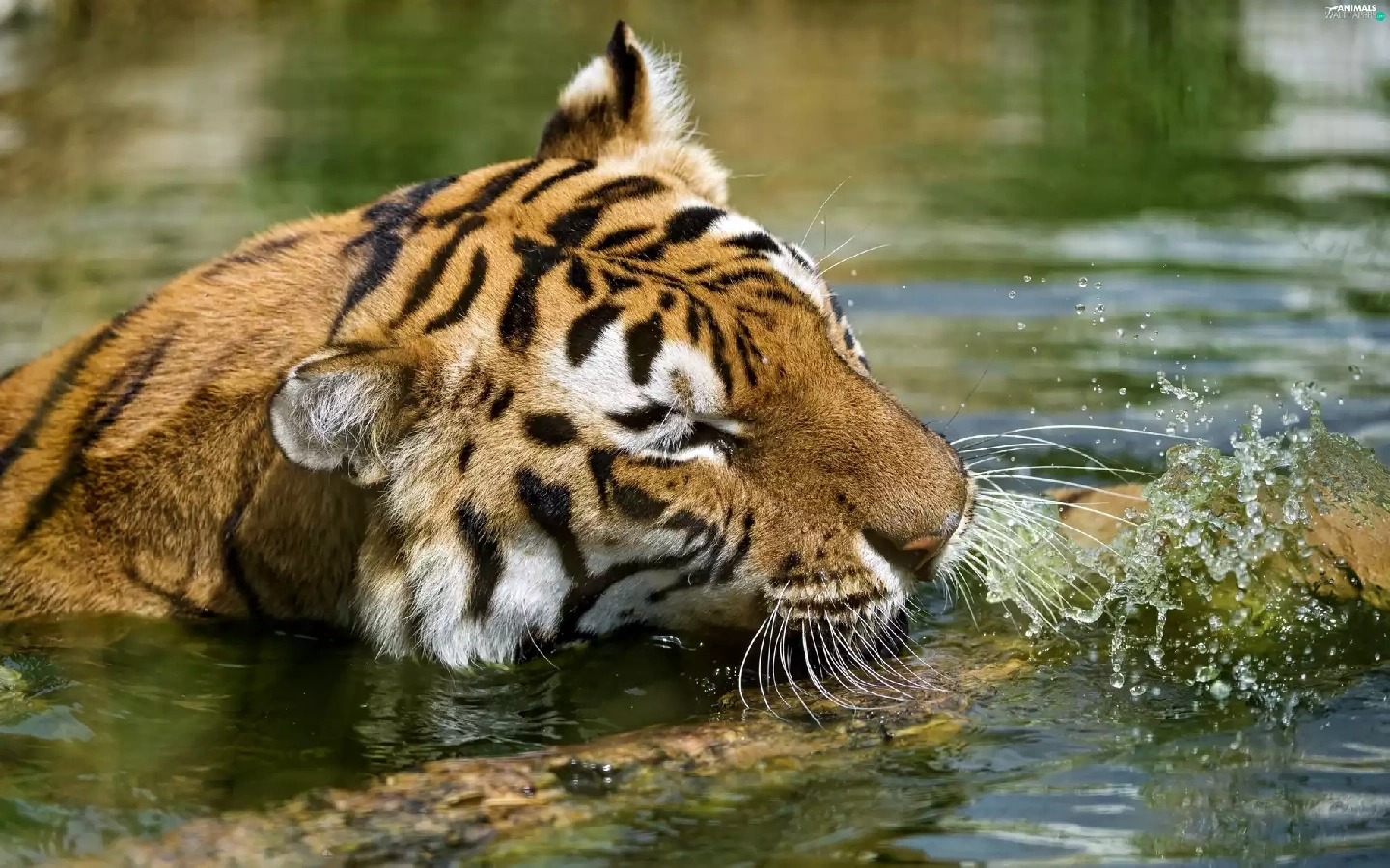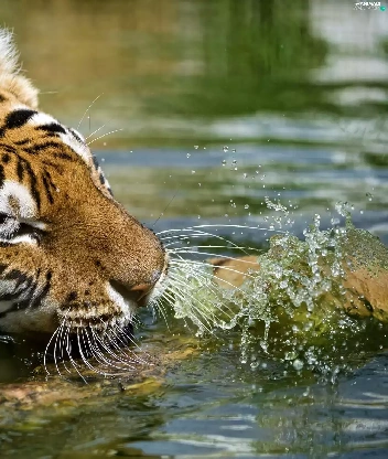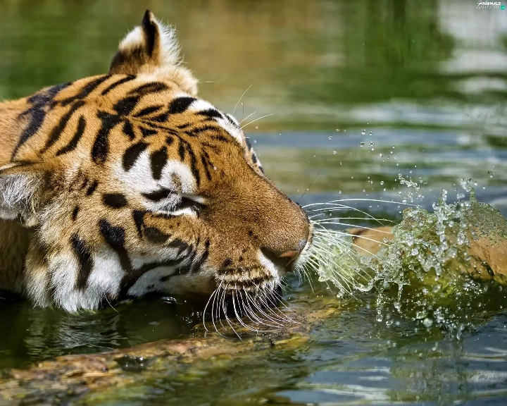 water, tiger, Log
