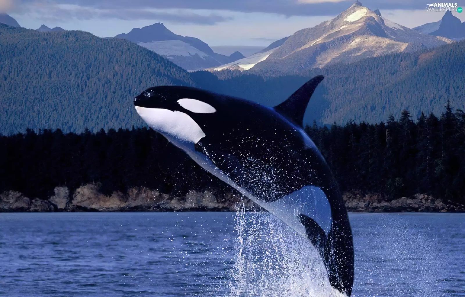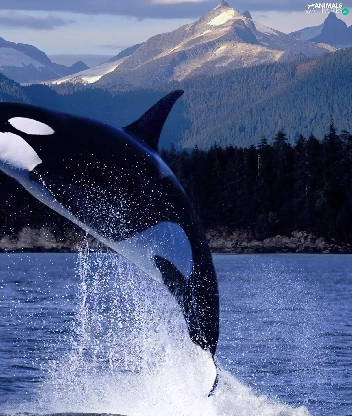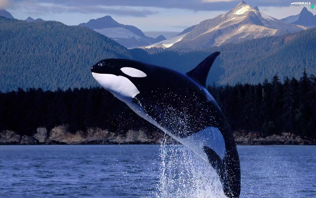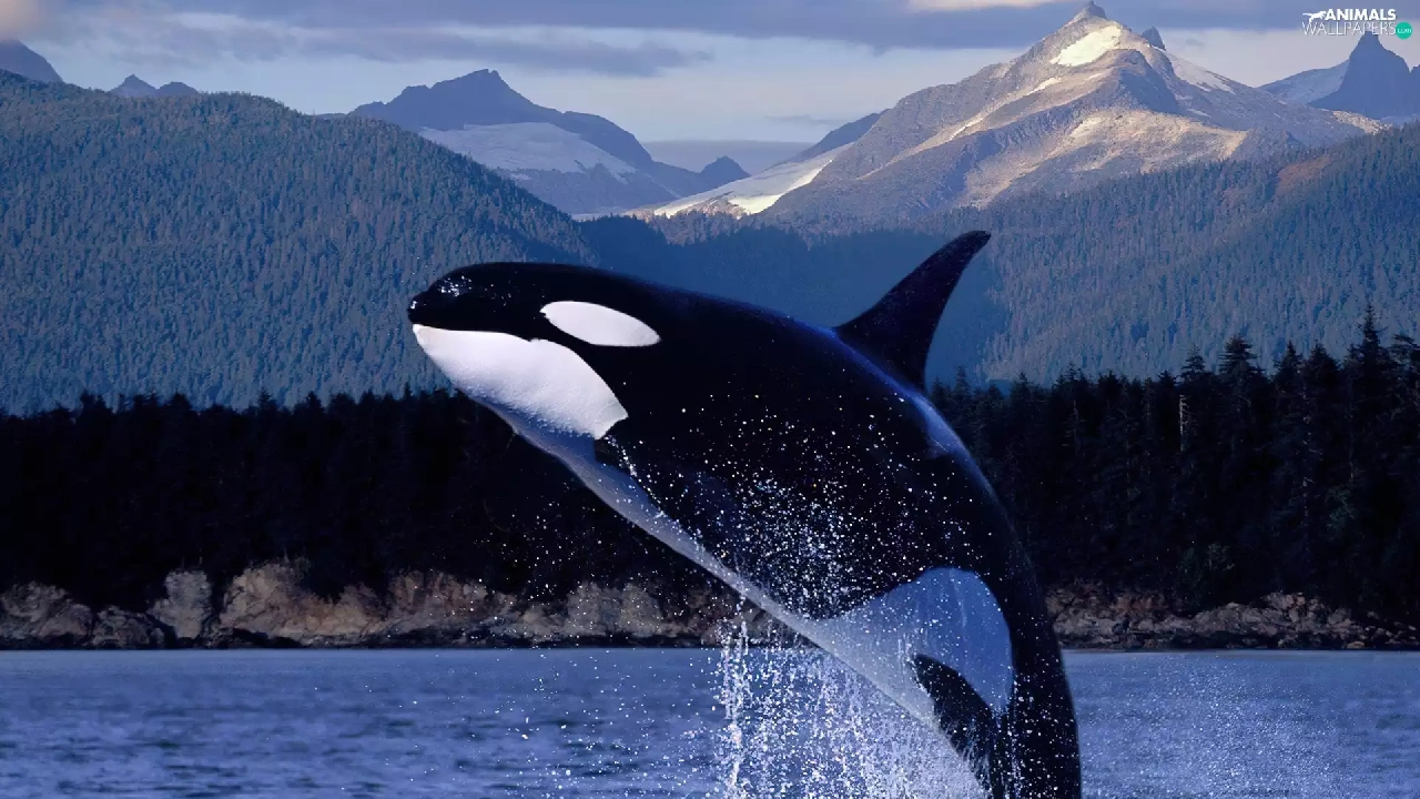 Mountains, whale killer, water