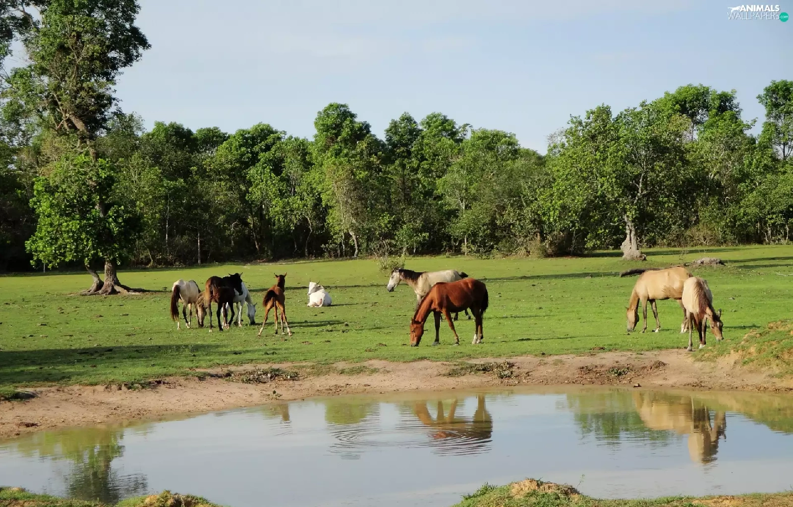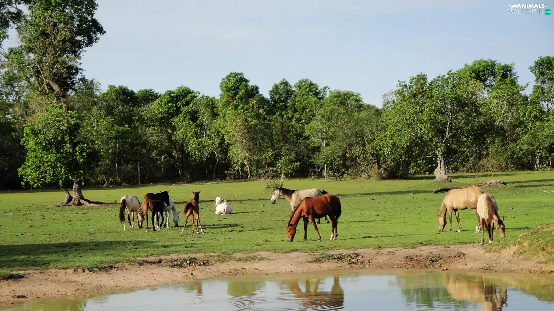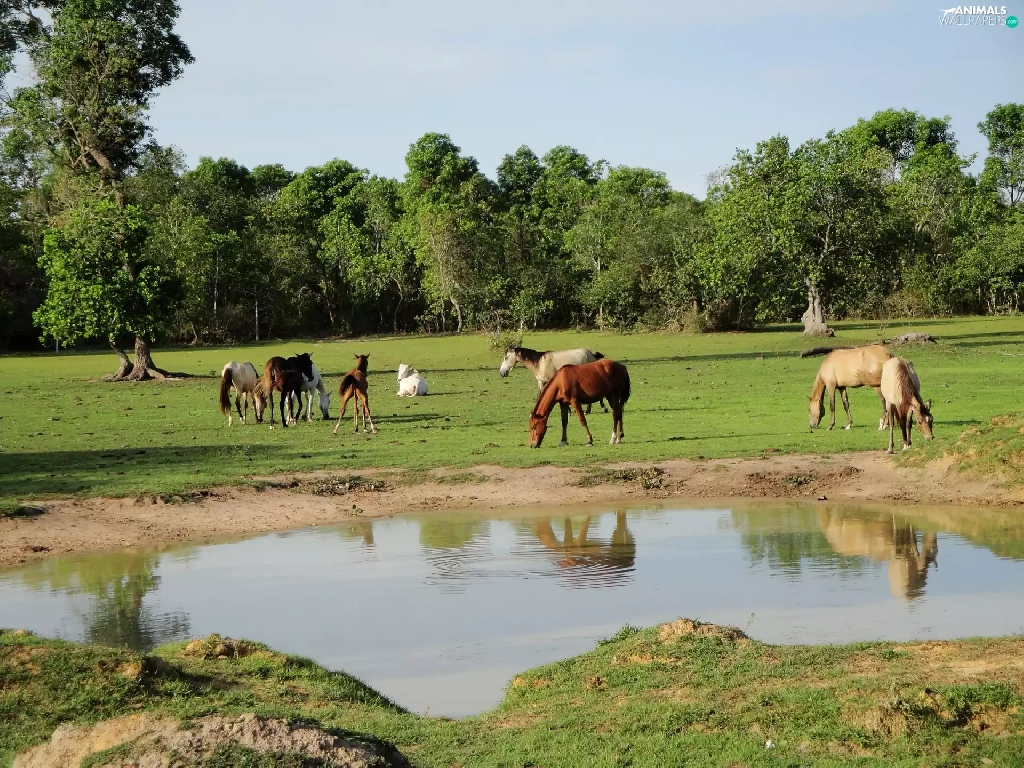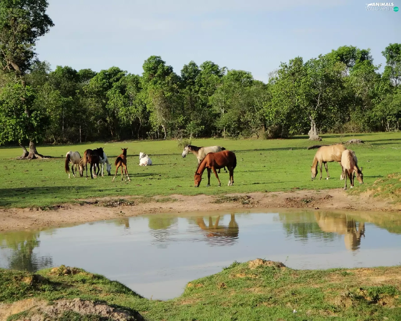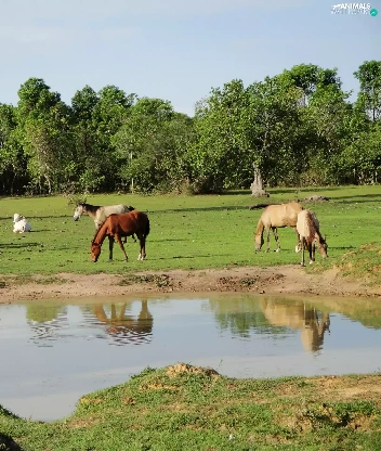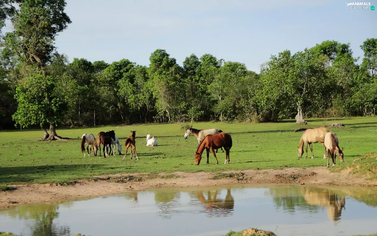 viewes, water, pasture, trees, bloodstock