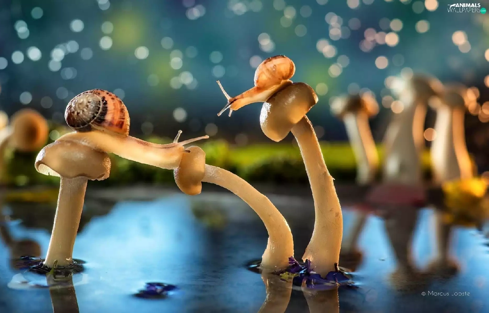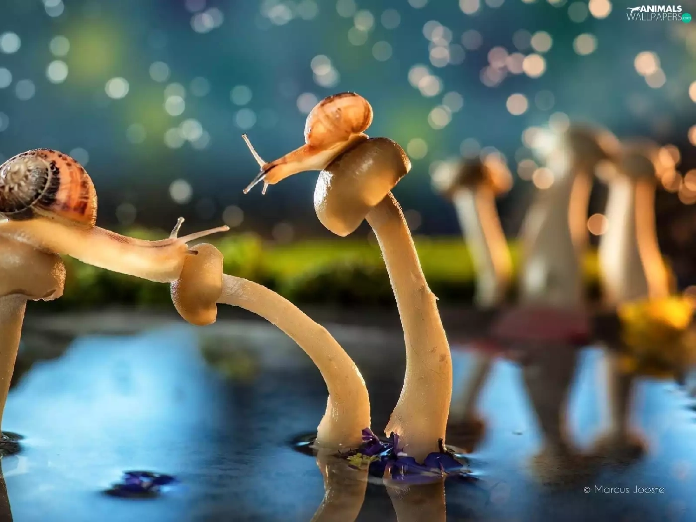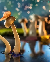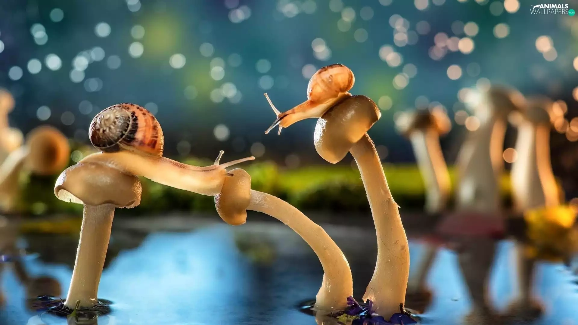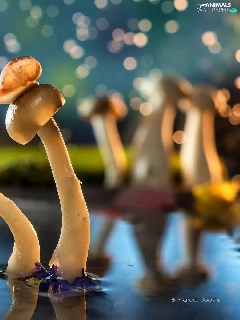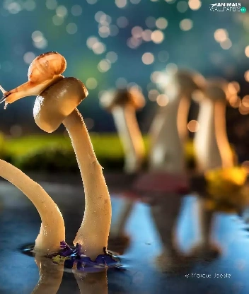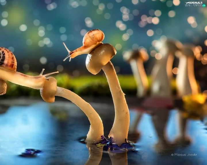 mushrooms, water, Pond - car, Snails