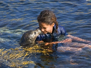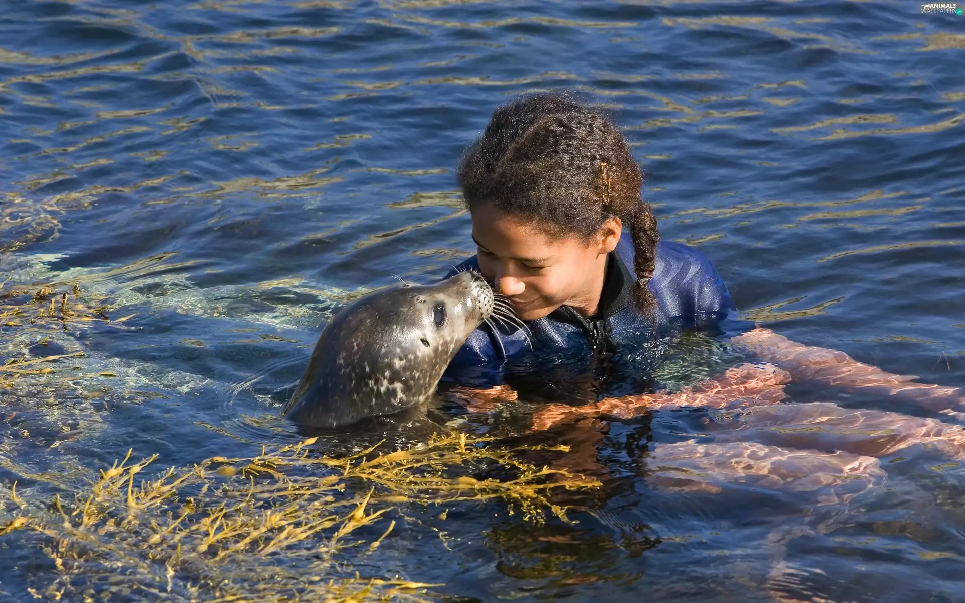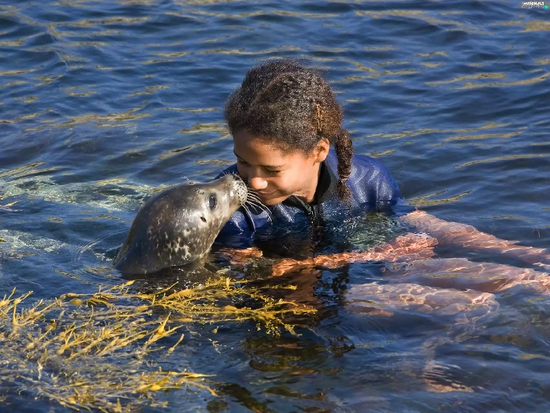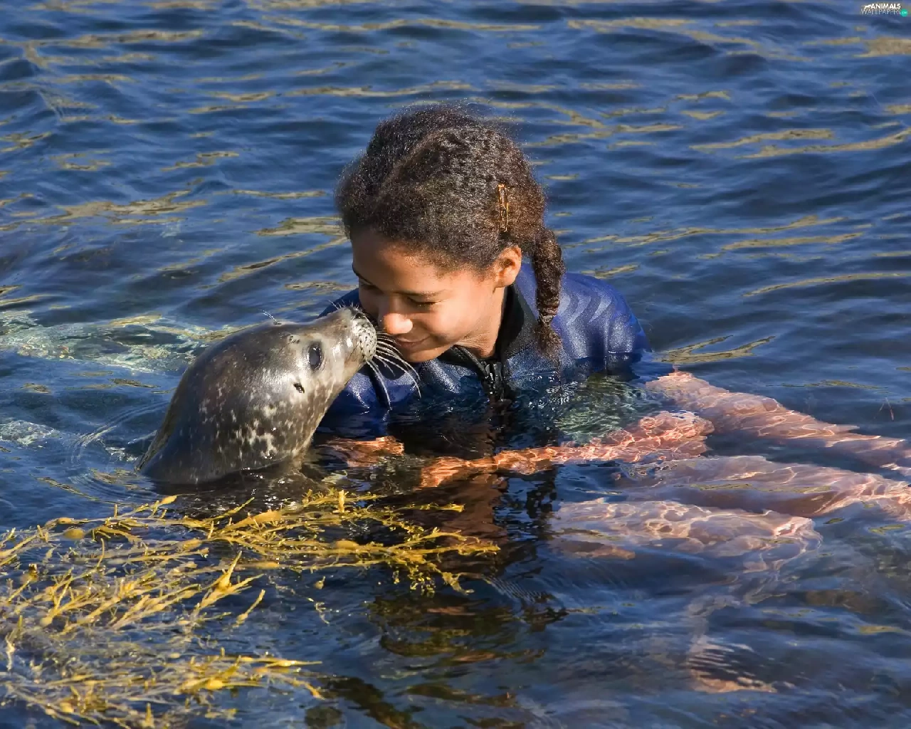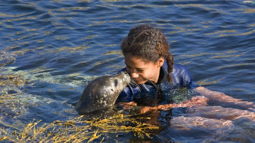 water, girl, seal