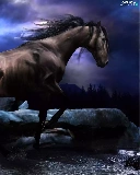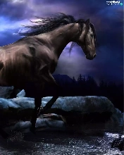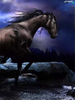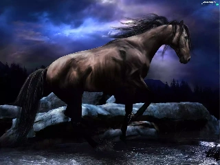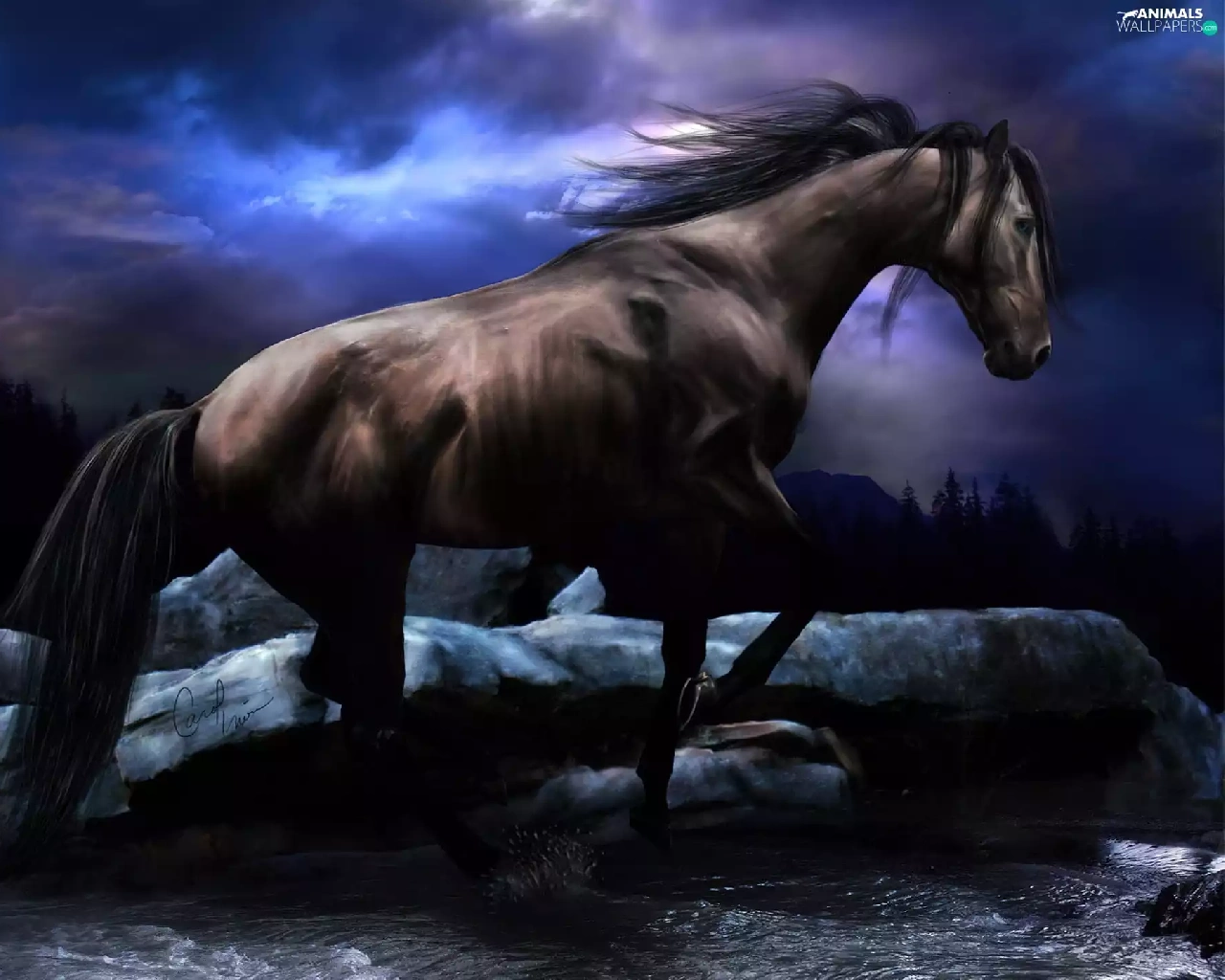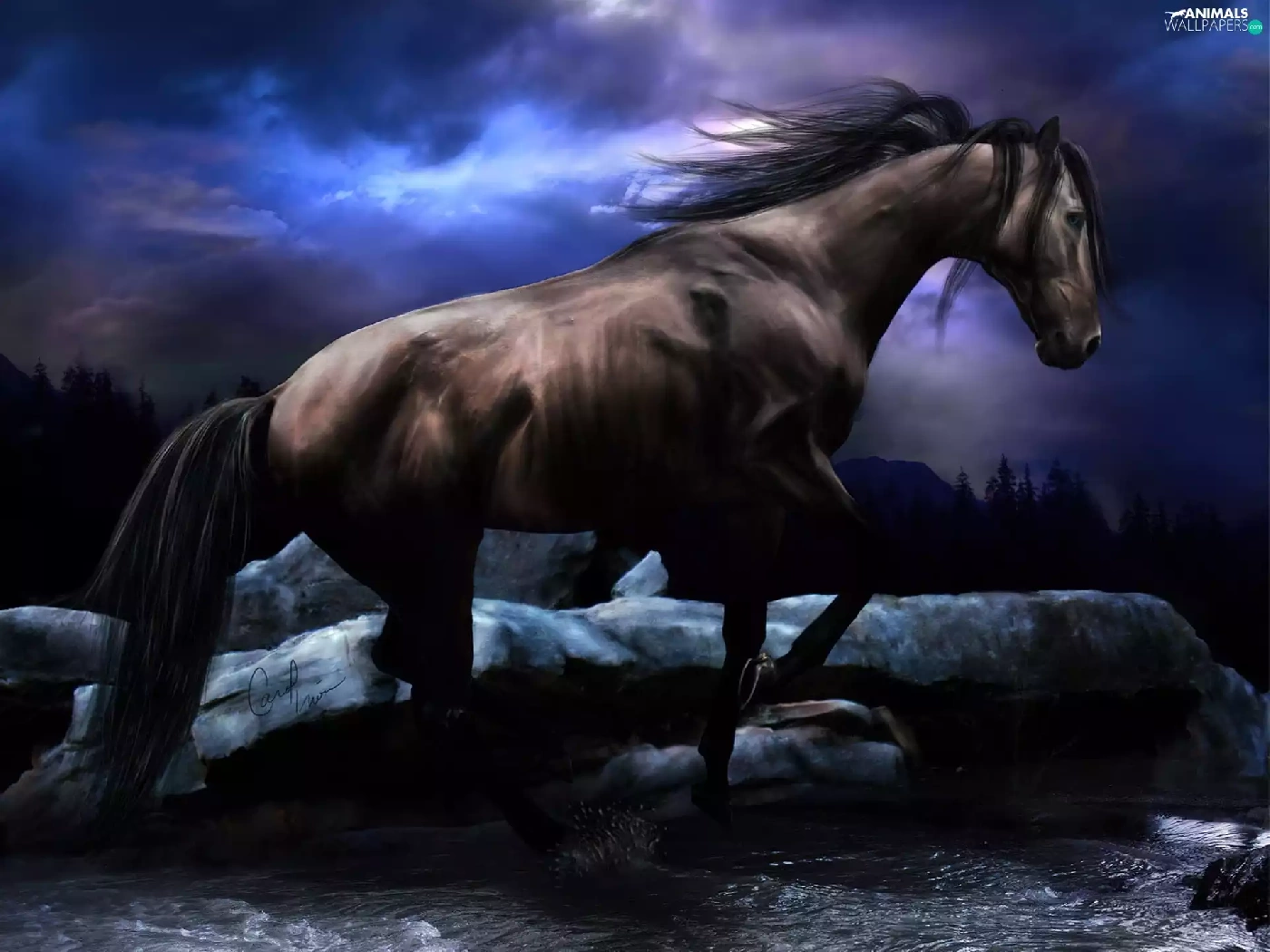 water, Horse, Stones