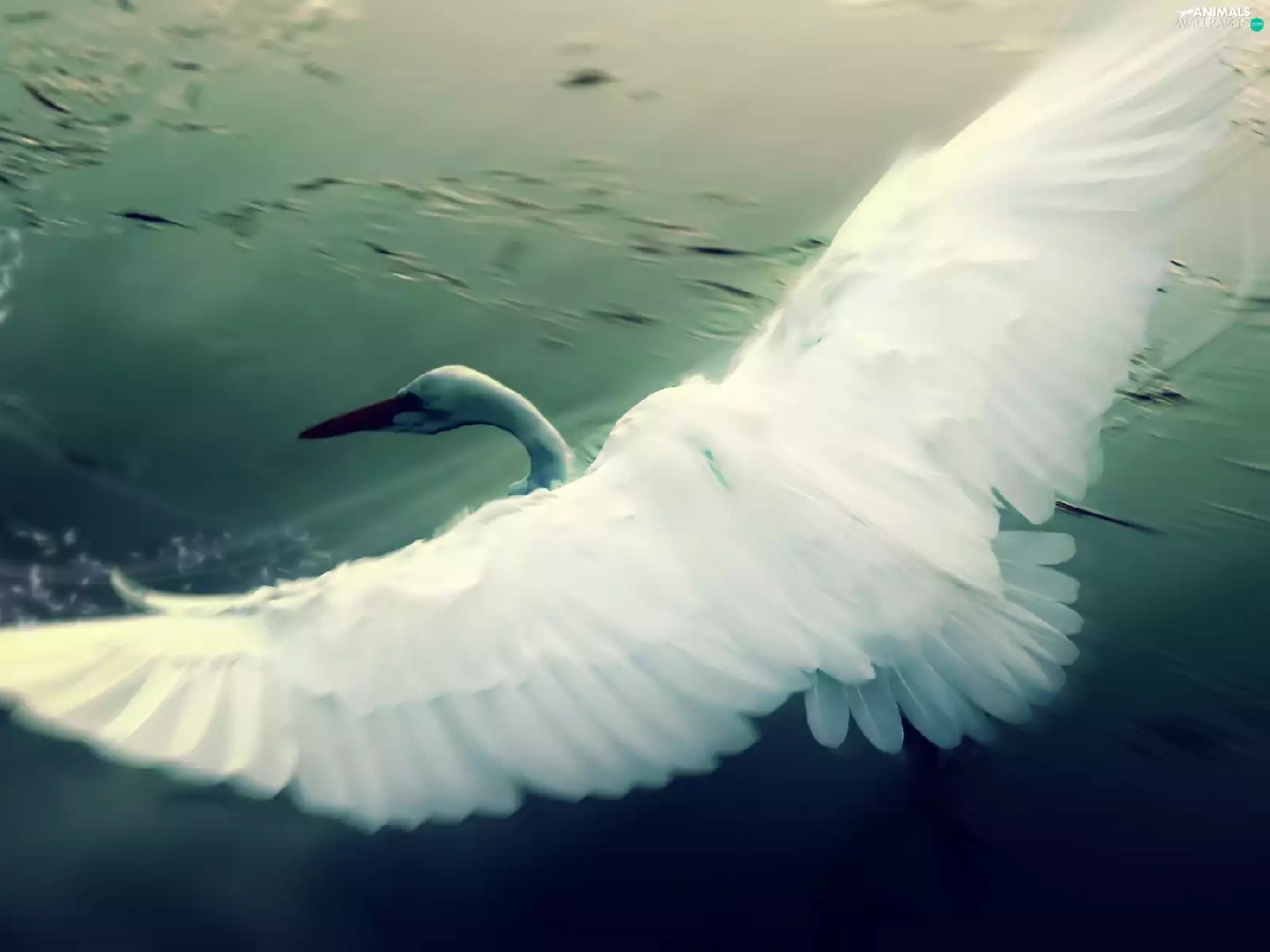 water, Swans, wings