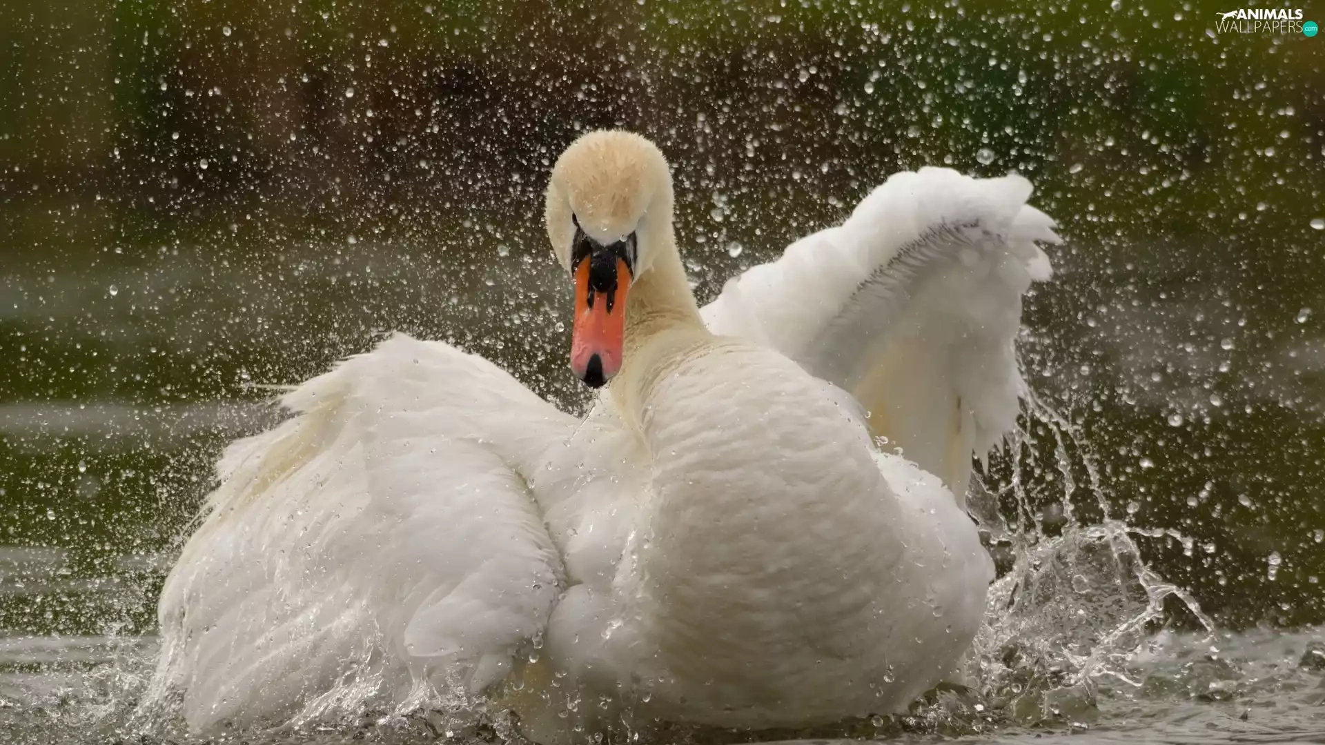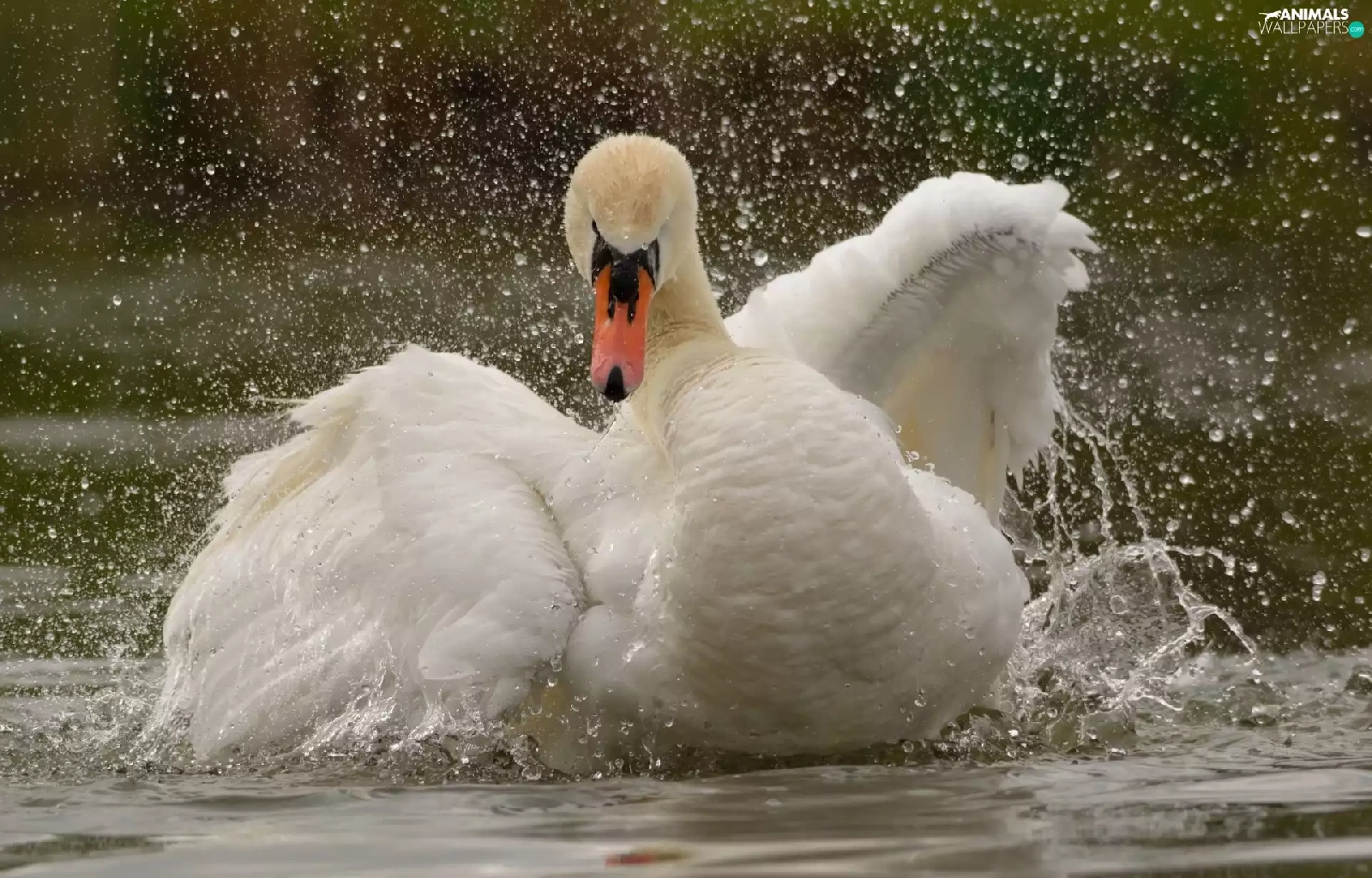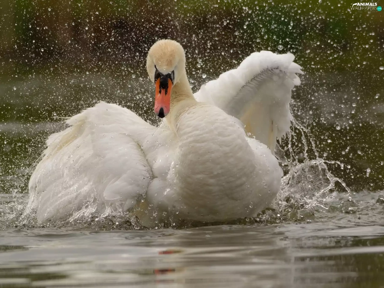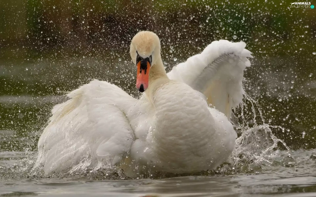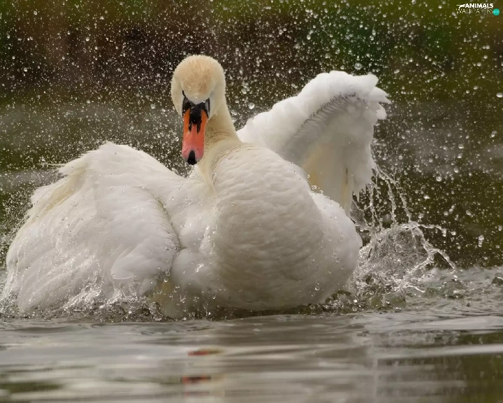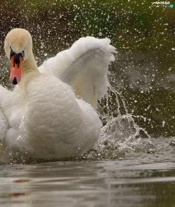 water, Swans, wings