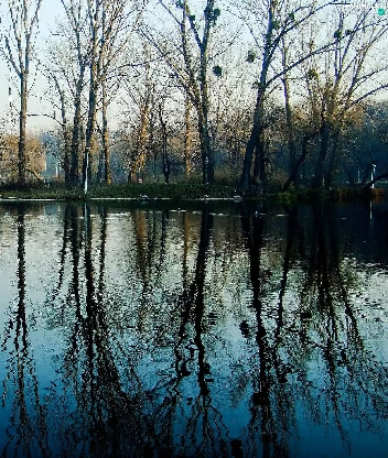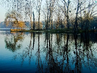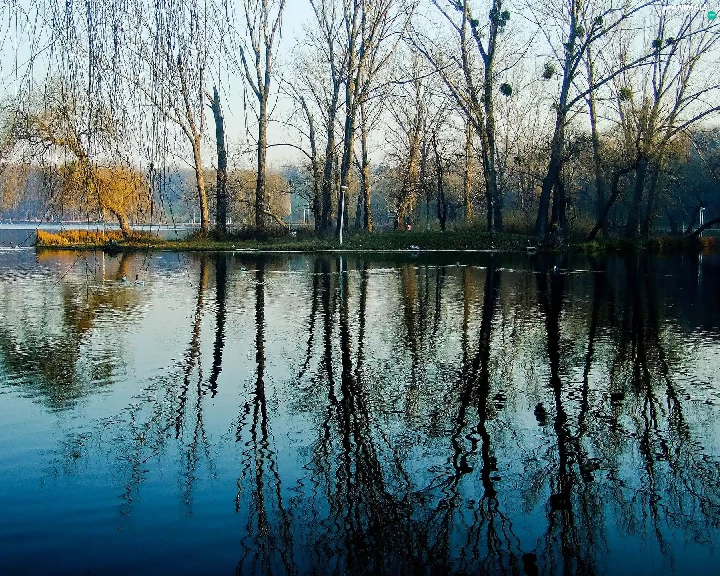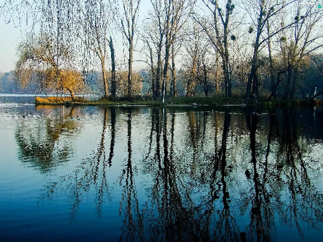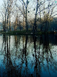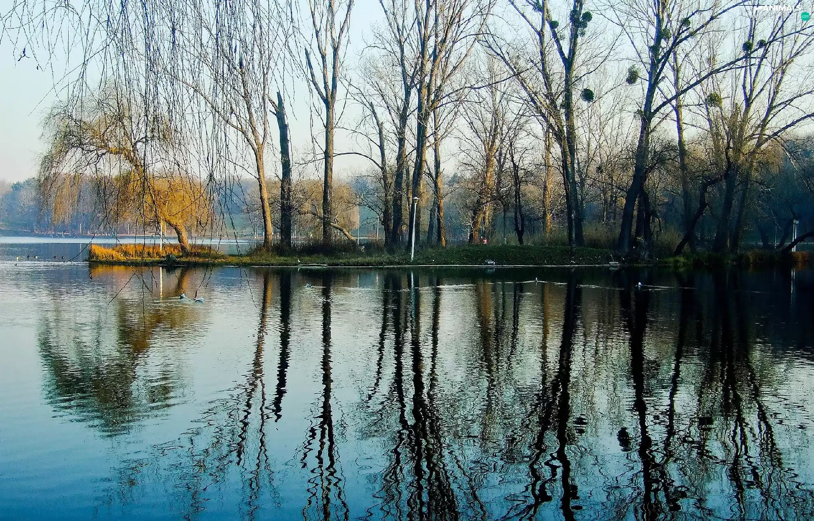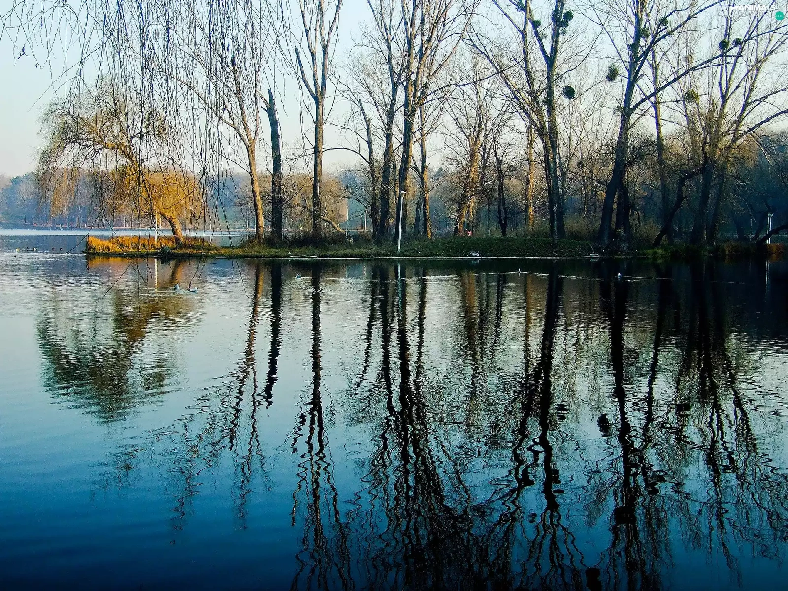 reflection, water, woods, ducks, lake