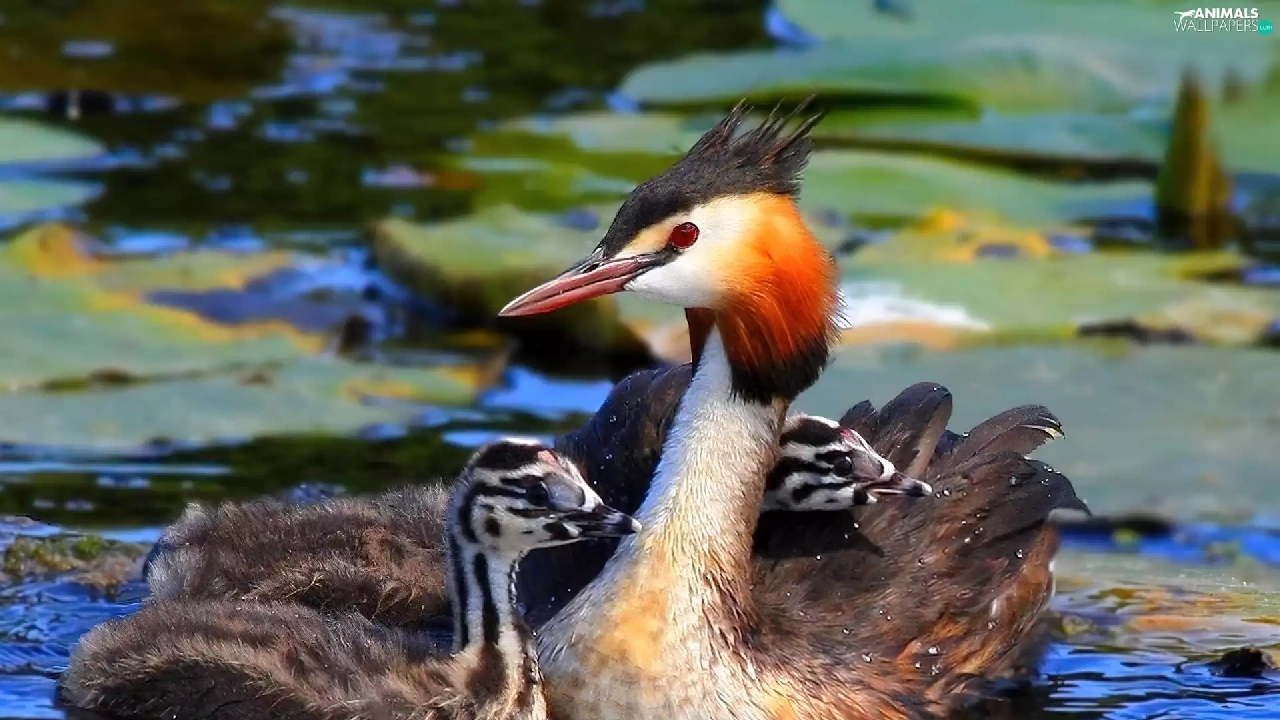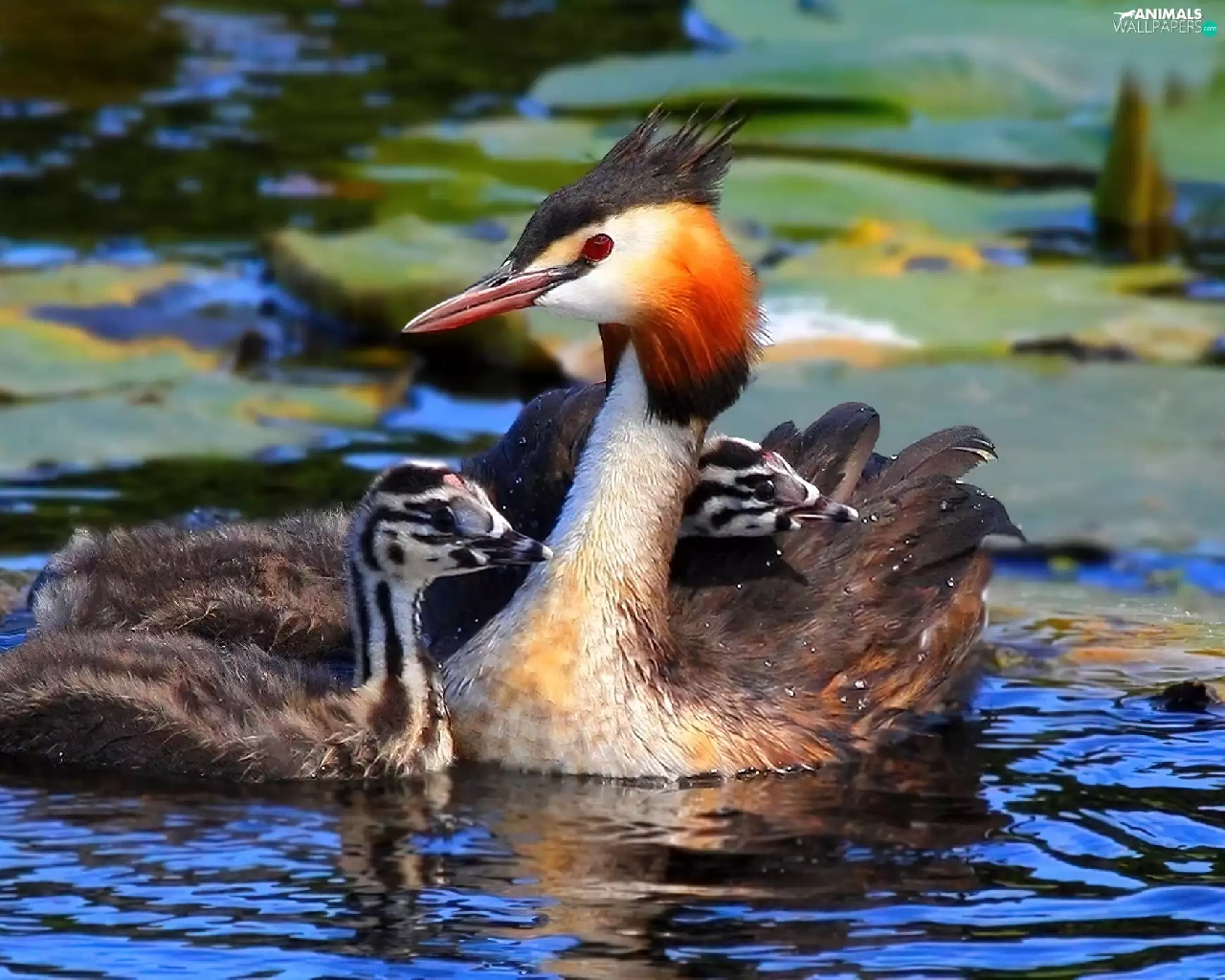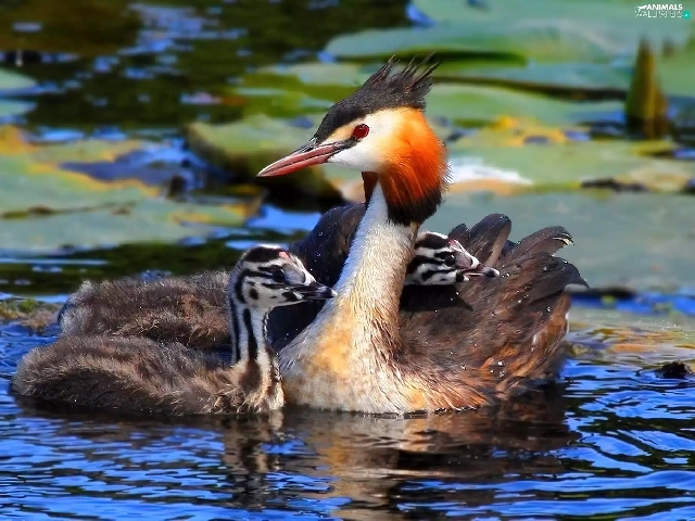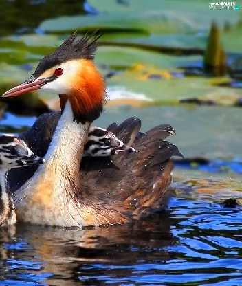 water, grebe, young