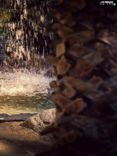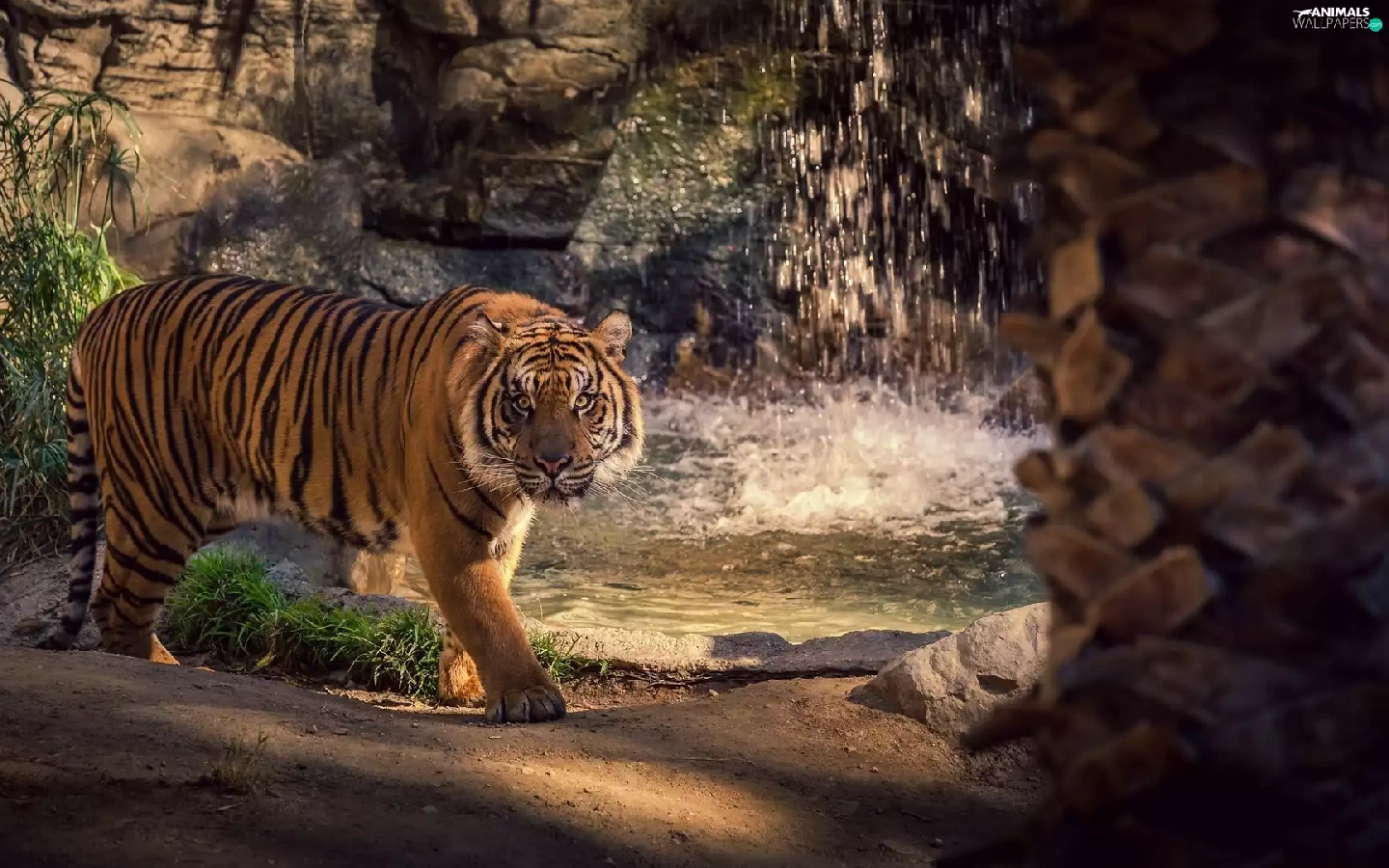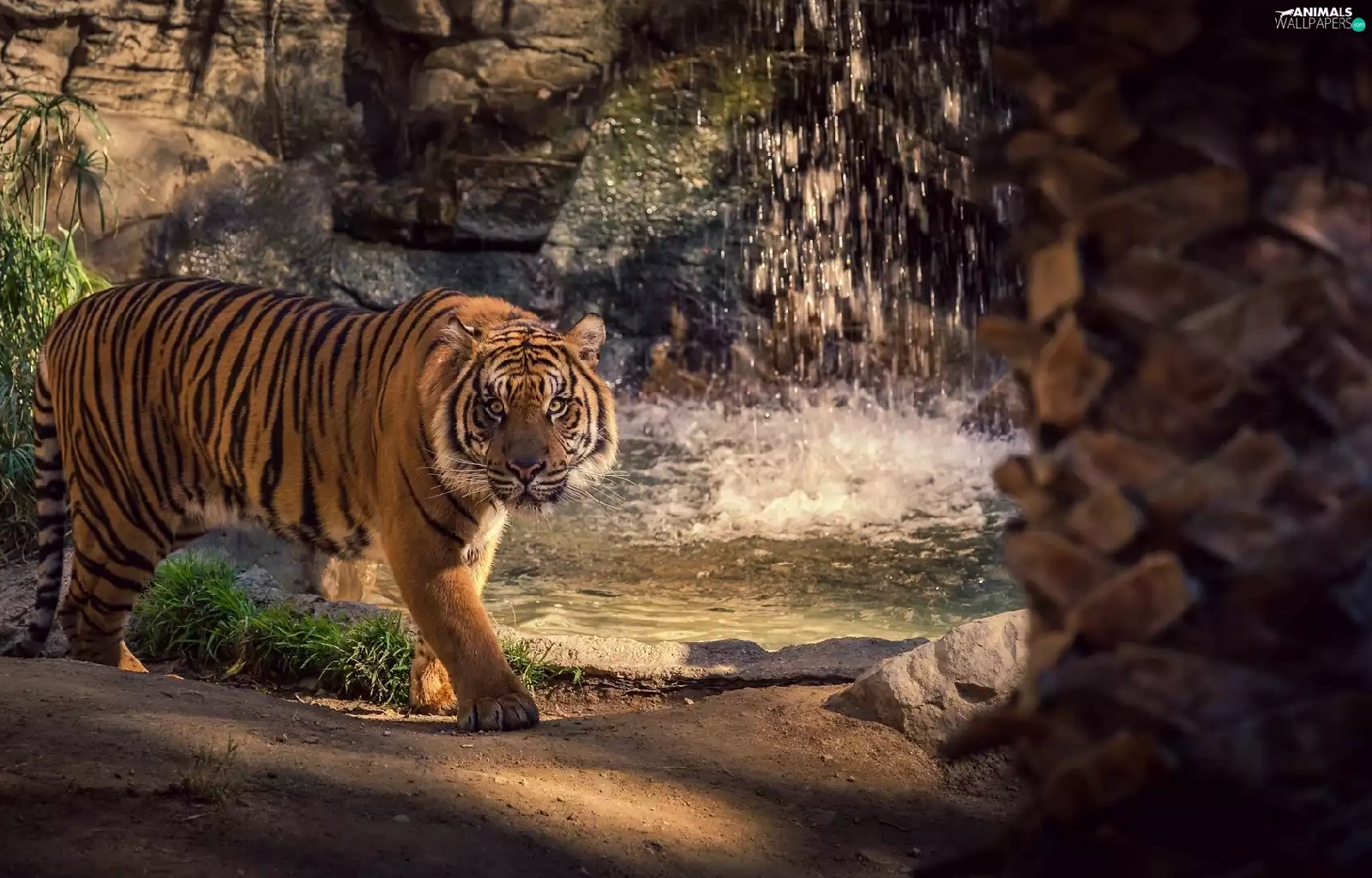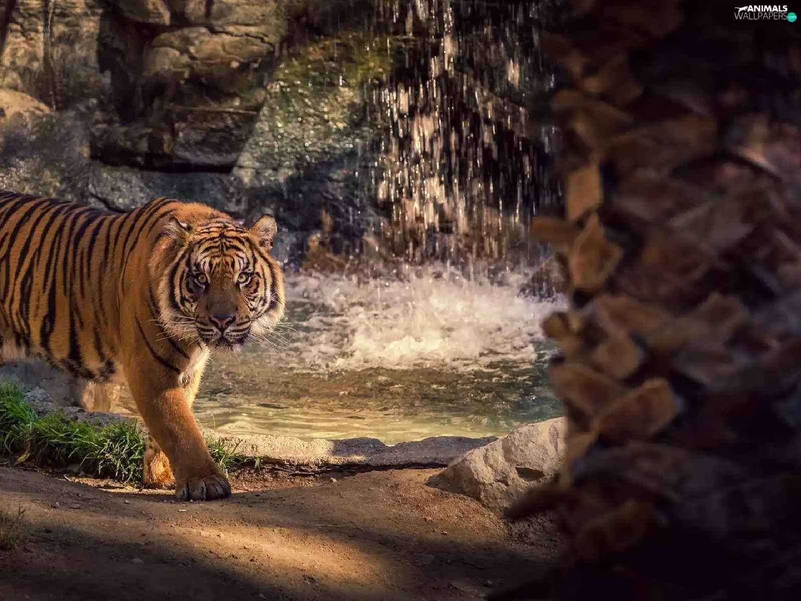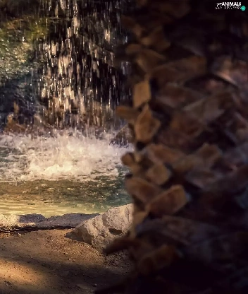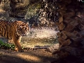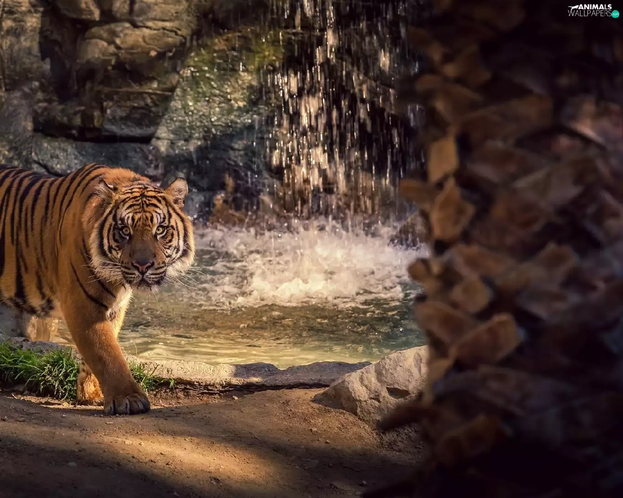 tiger, rocks, green, waterfall