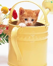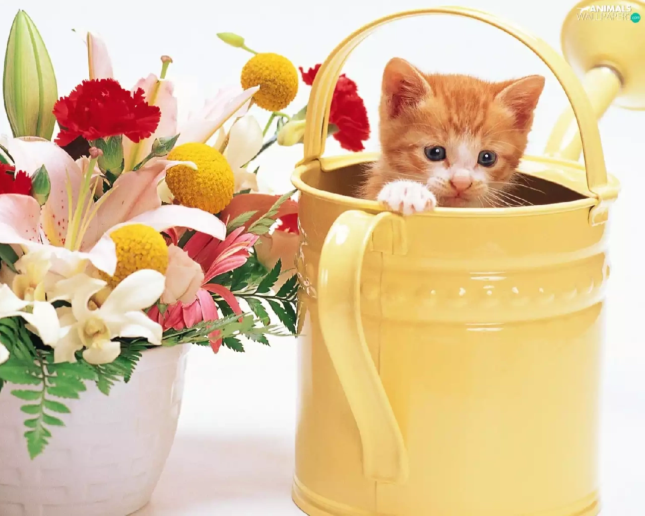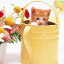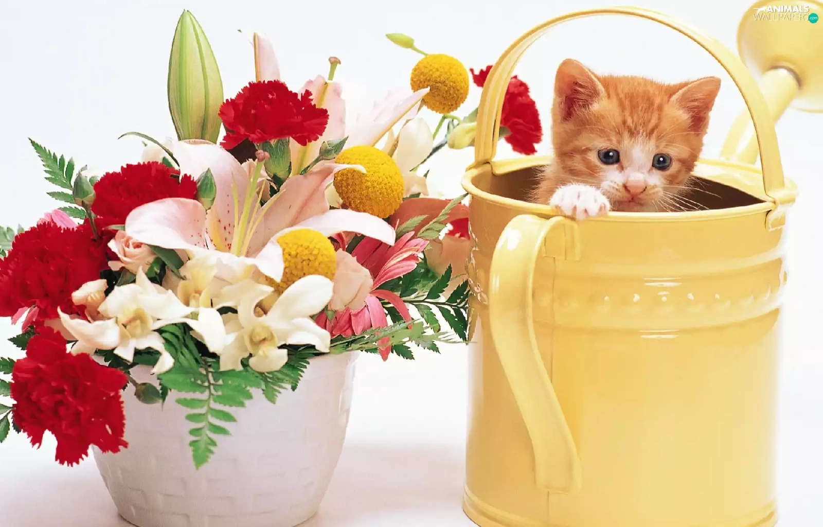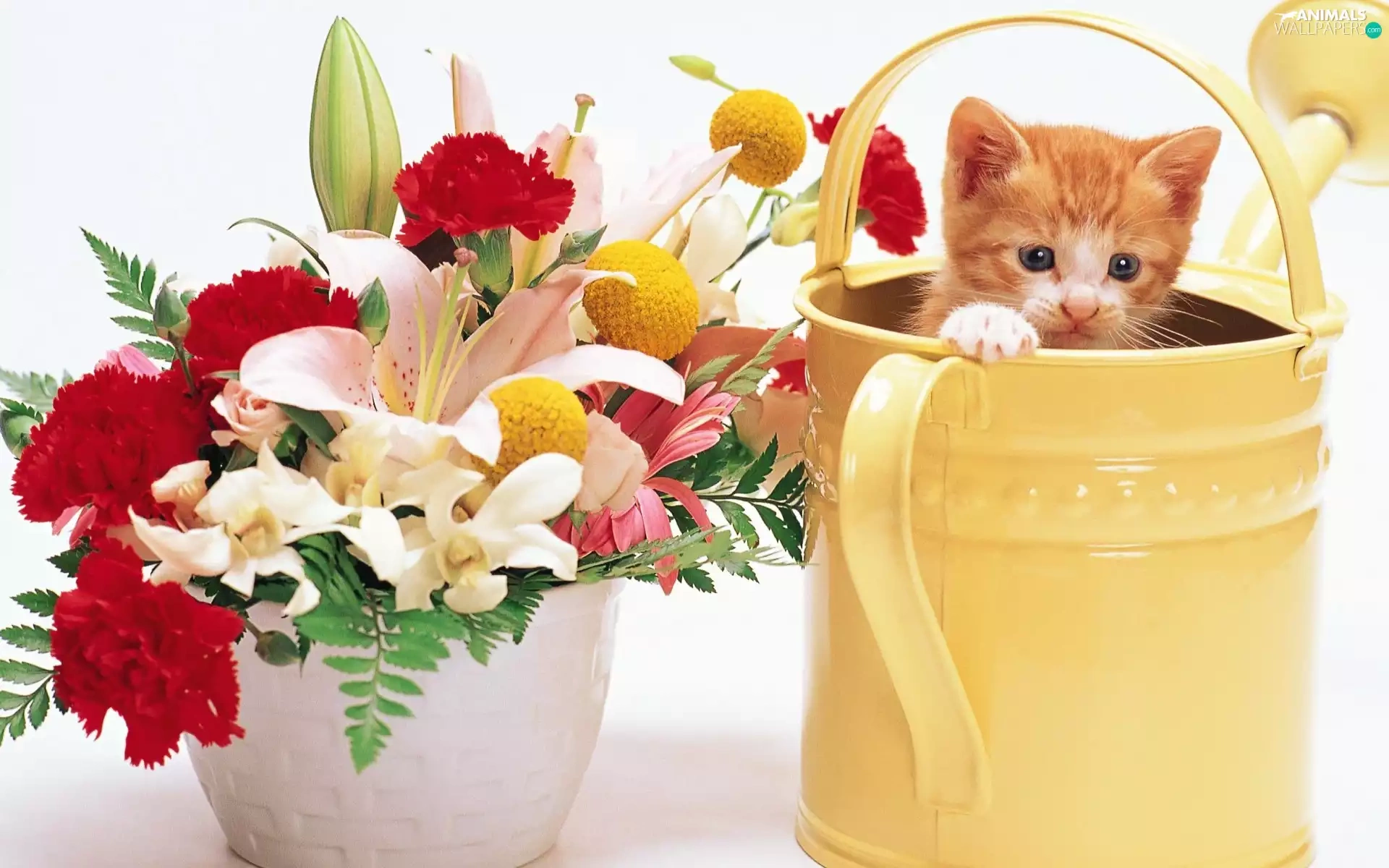 bouquet, flowers, kitten, watering can, small
