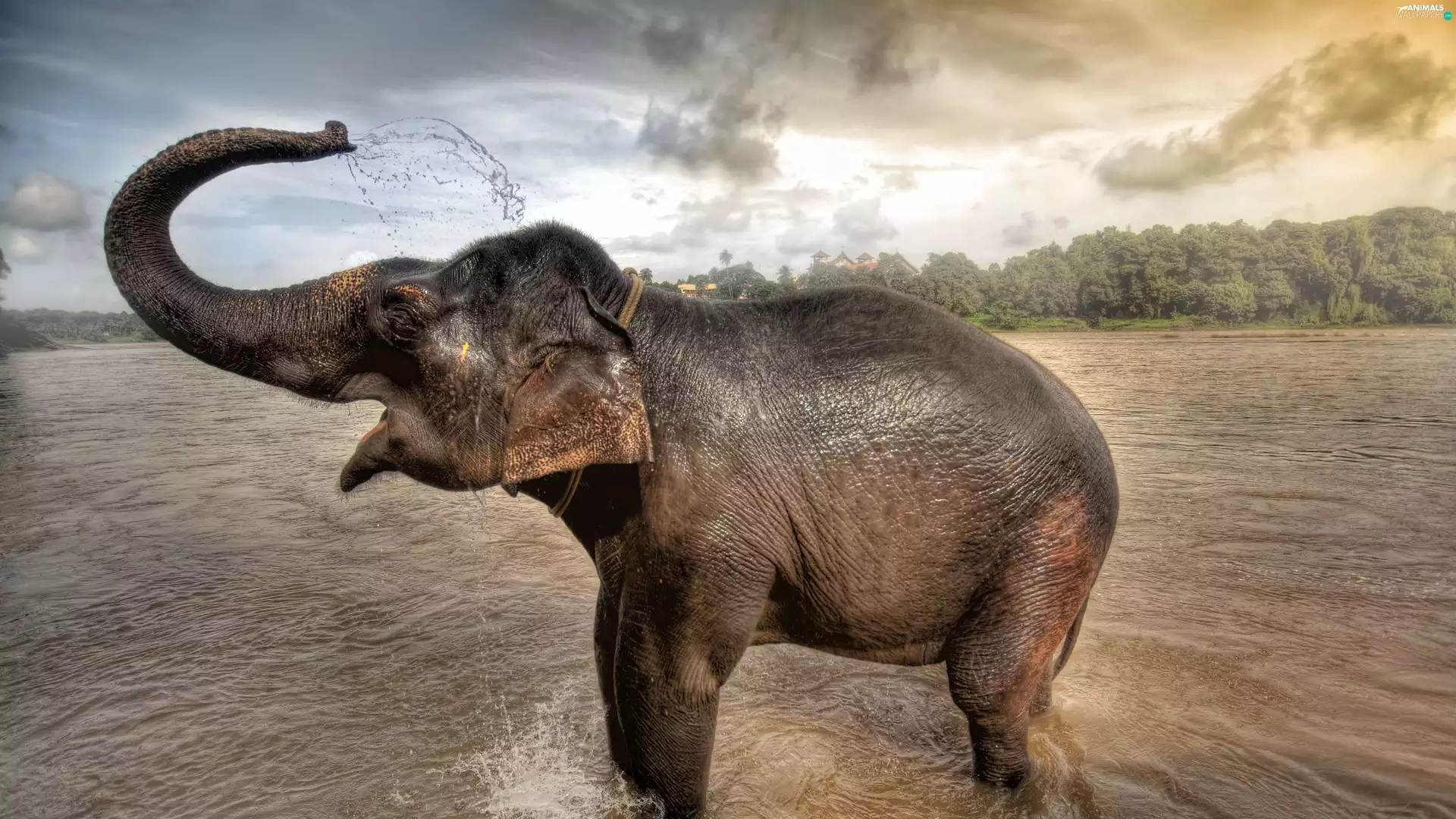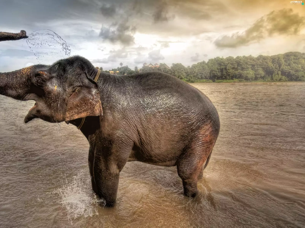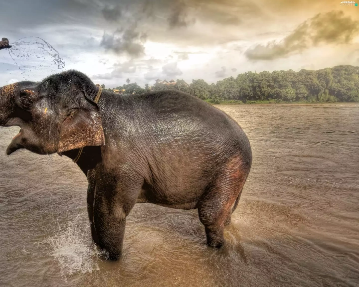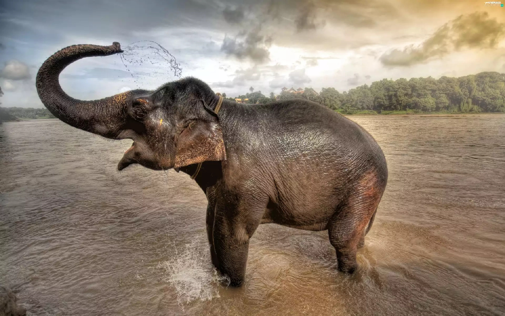 Watering, Elephant, water
