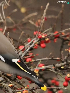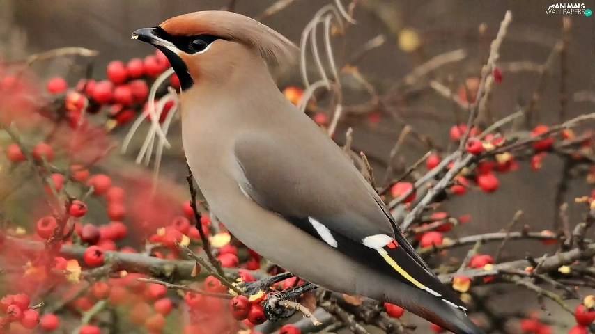 Bird, Plant, Twigs, Waxwing
