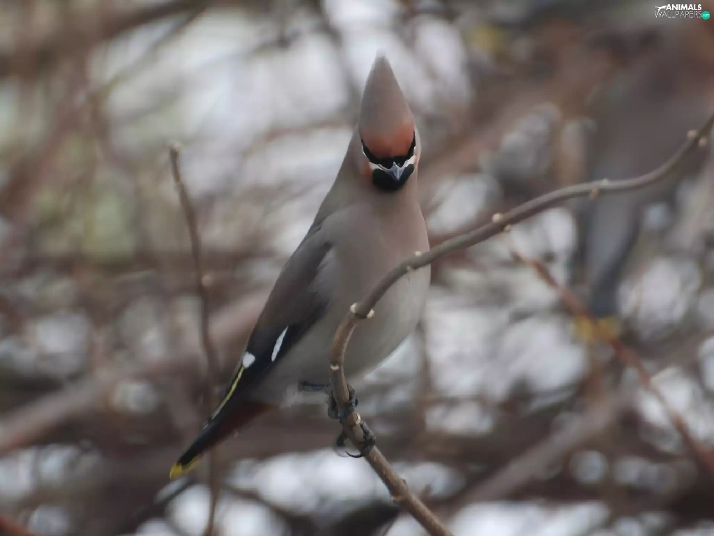 Waxwing, branch