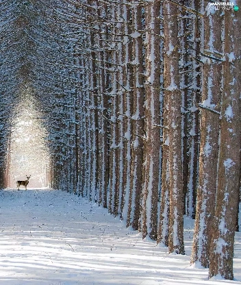 forest, winter, deer, Way