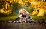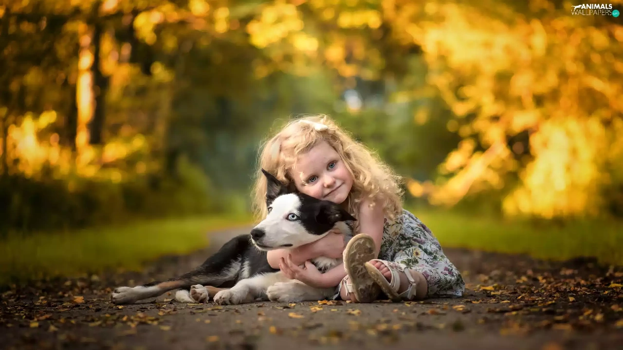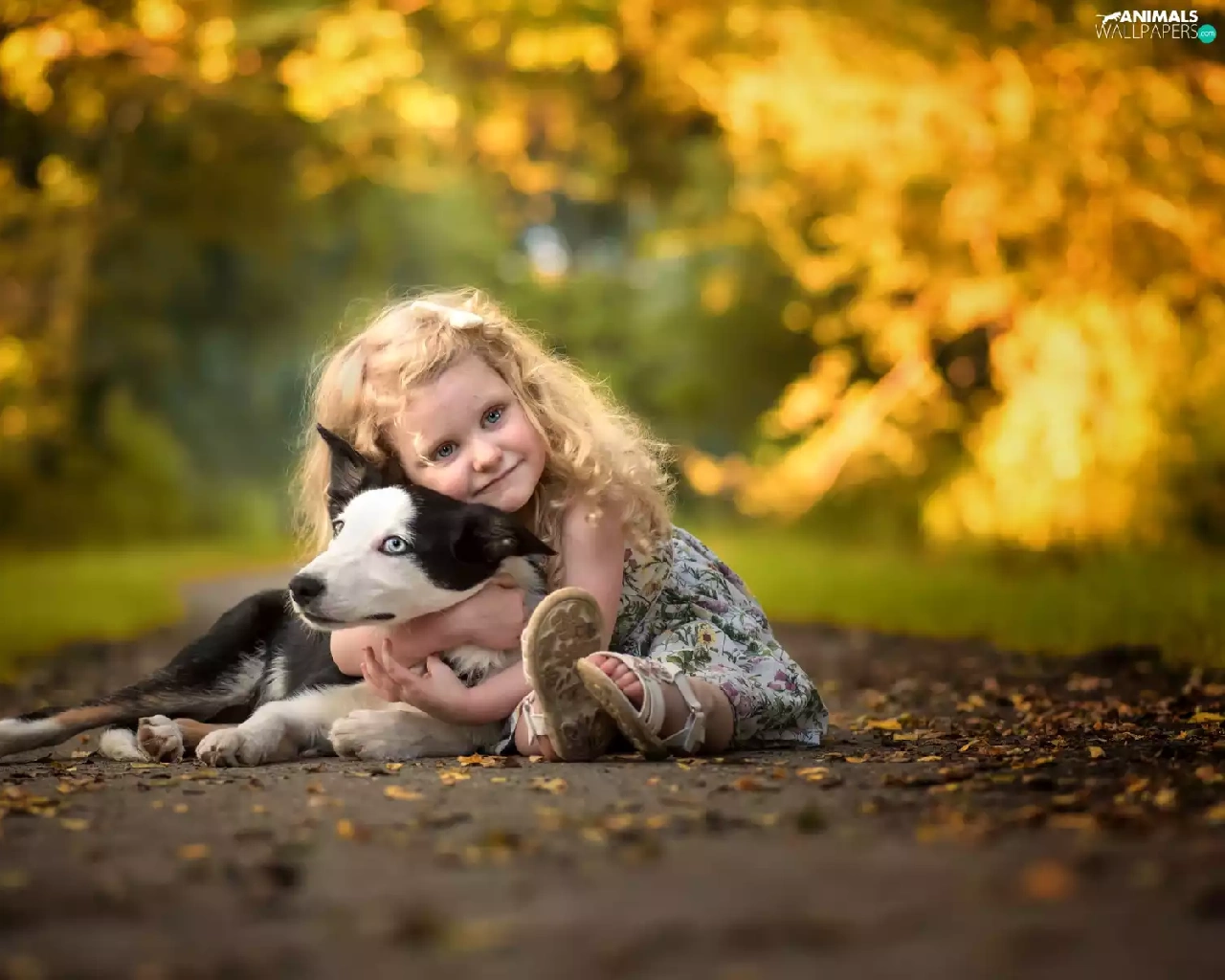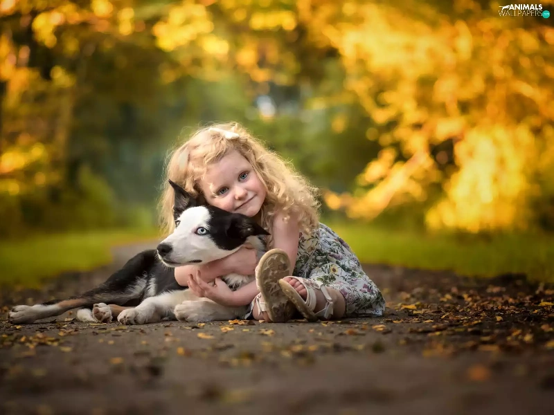 girl, Way, Leaf, Border Collie