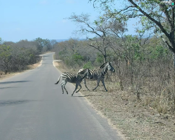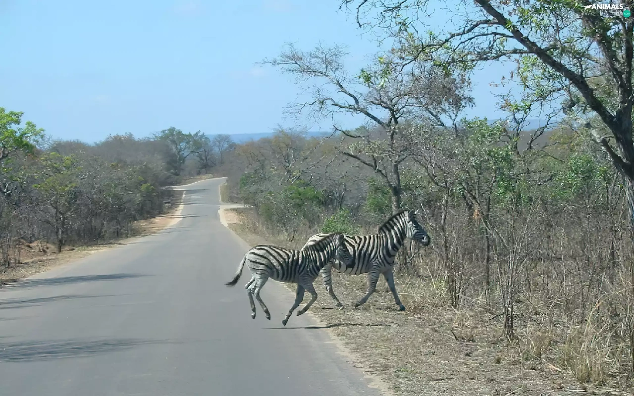 zebra, trees, viewes, Way