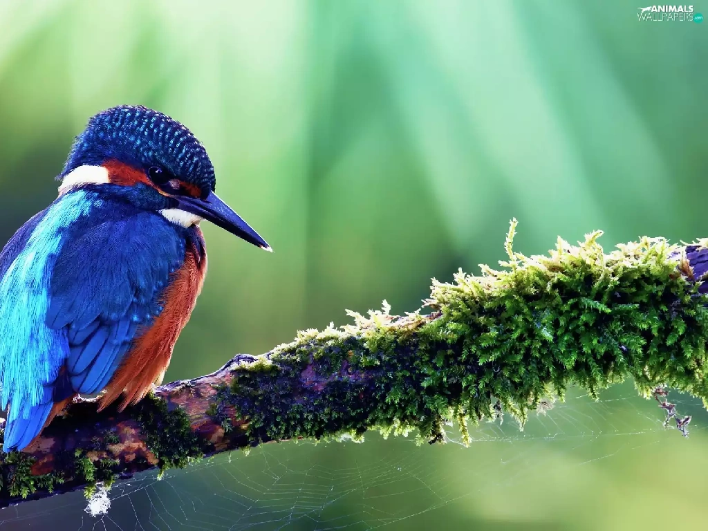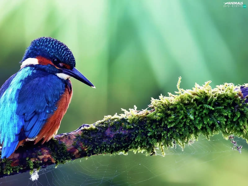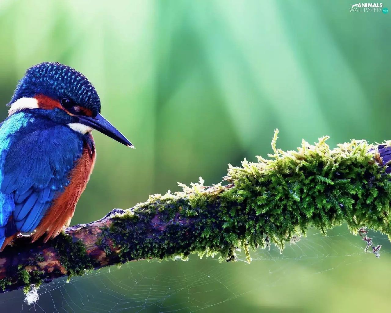 branch, Web, birdies, kingfisher, color