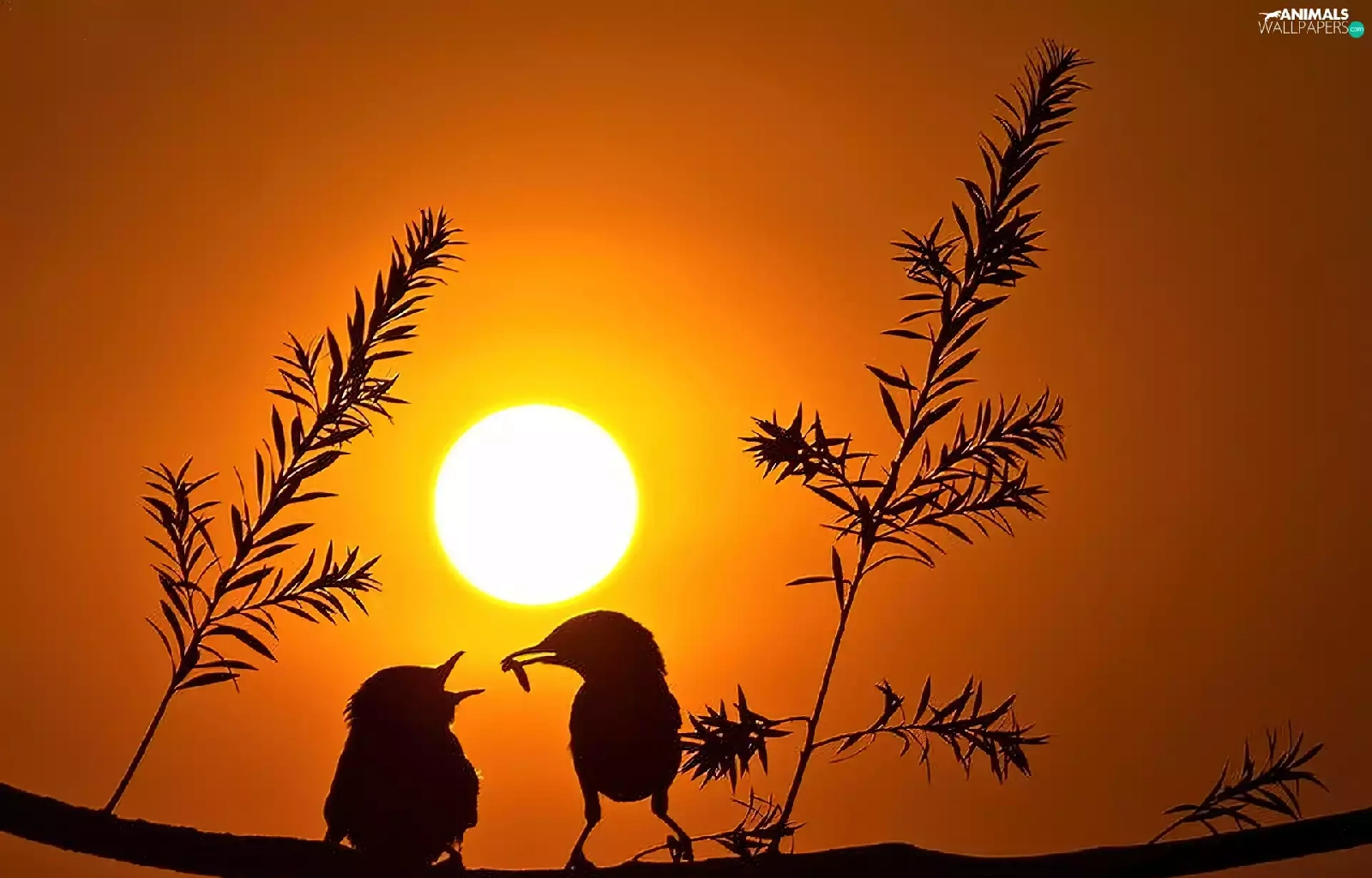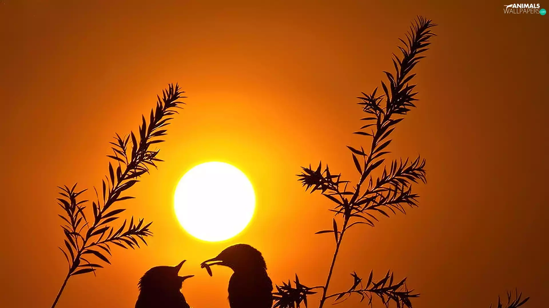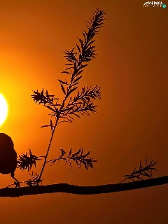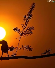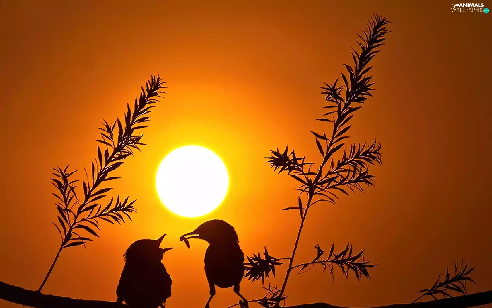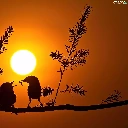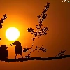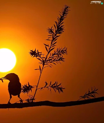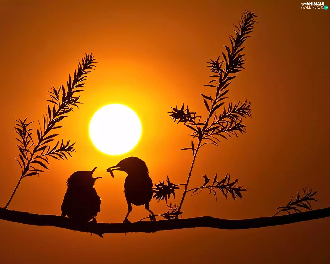 birds, sun, trees, west