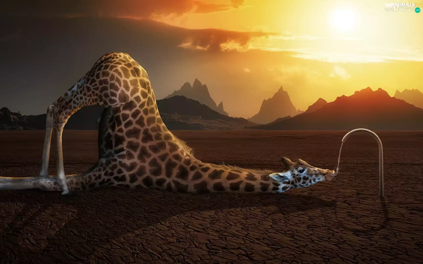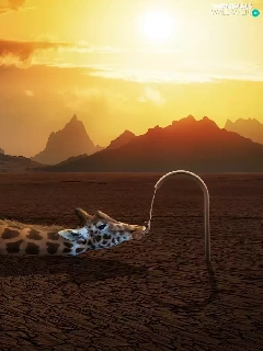 giraffe, sun, water, west