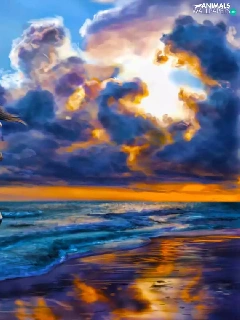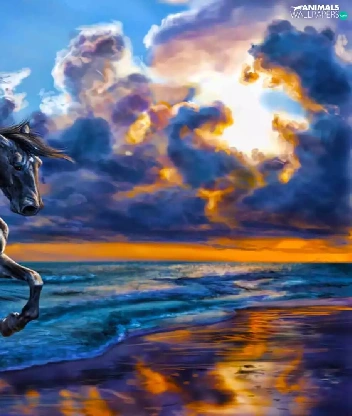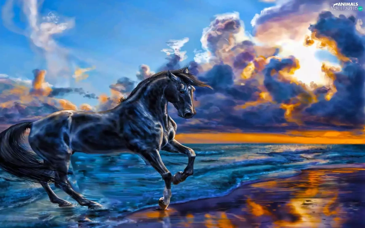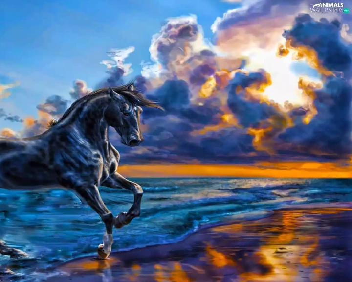 Horse, sun, Beaches, west