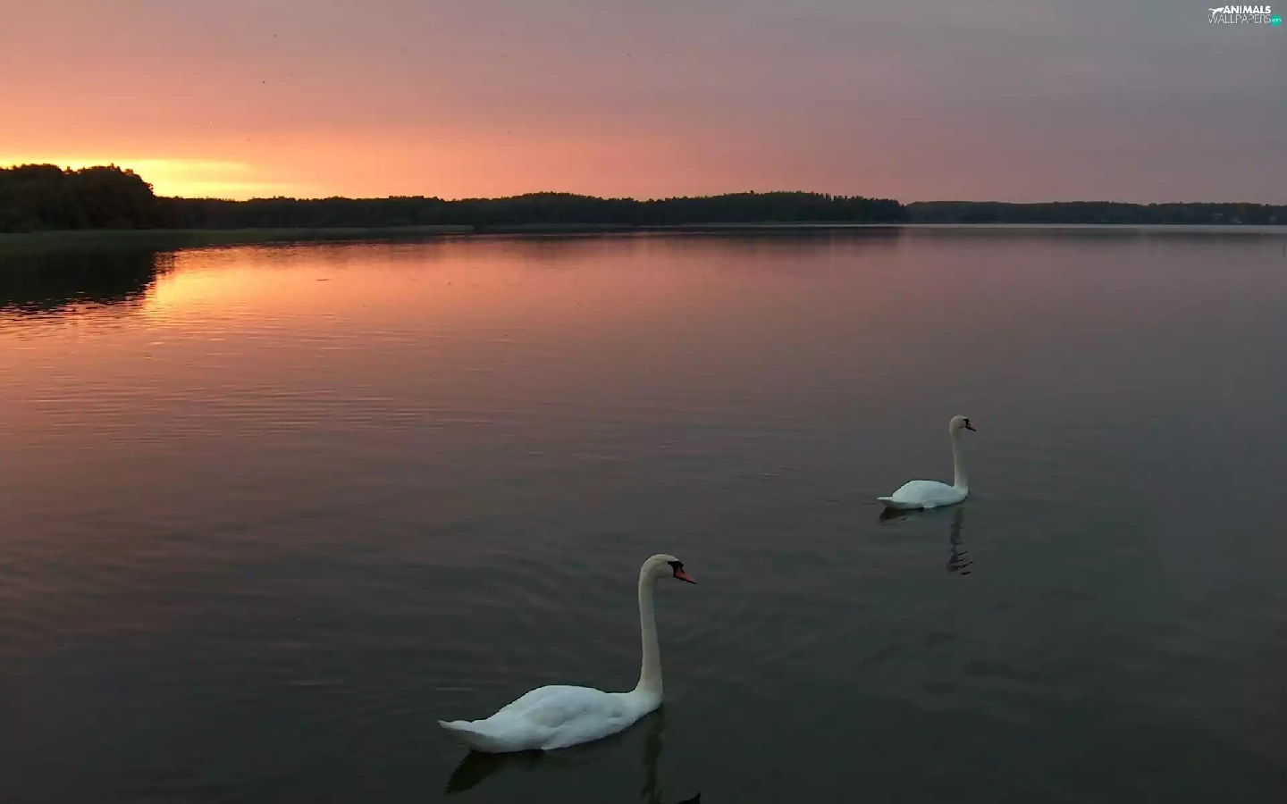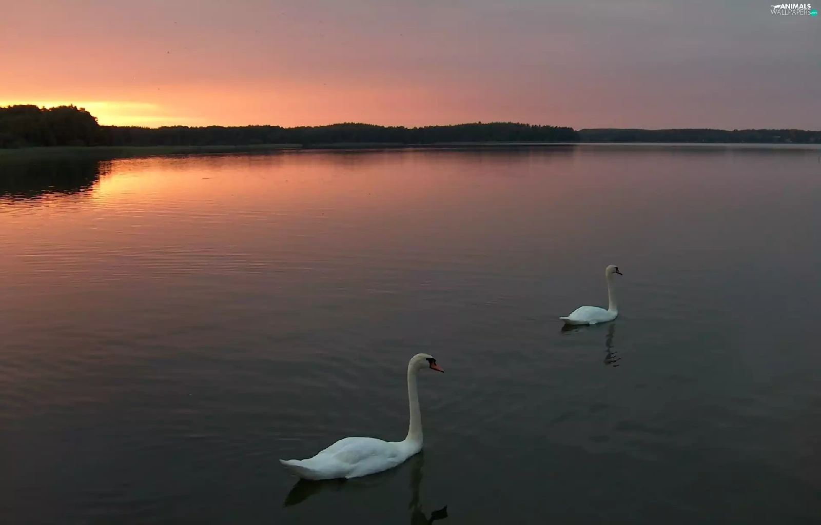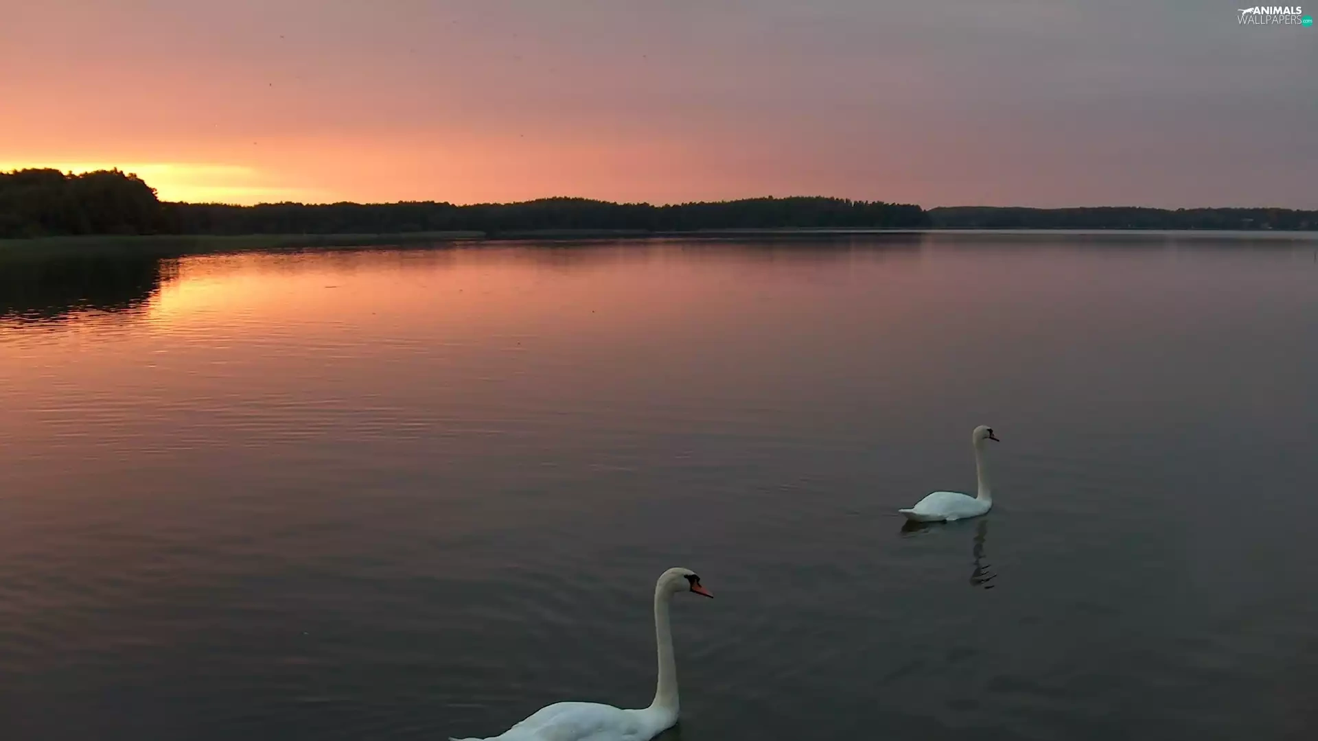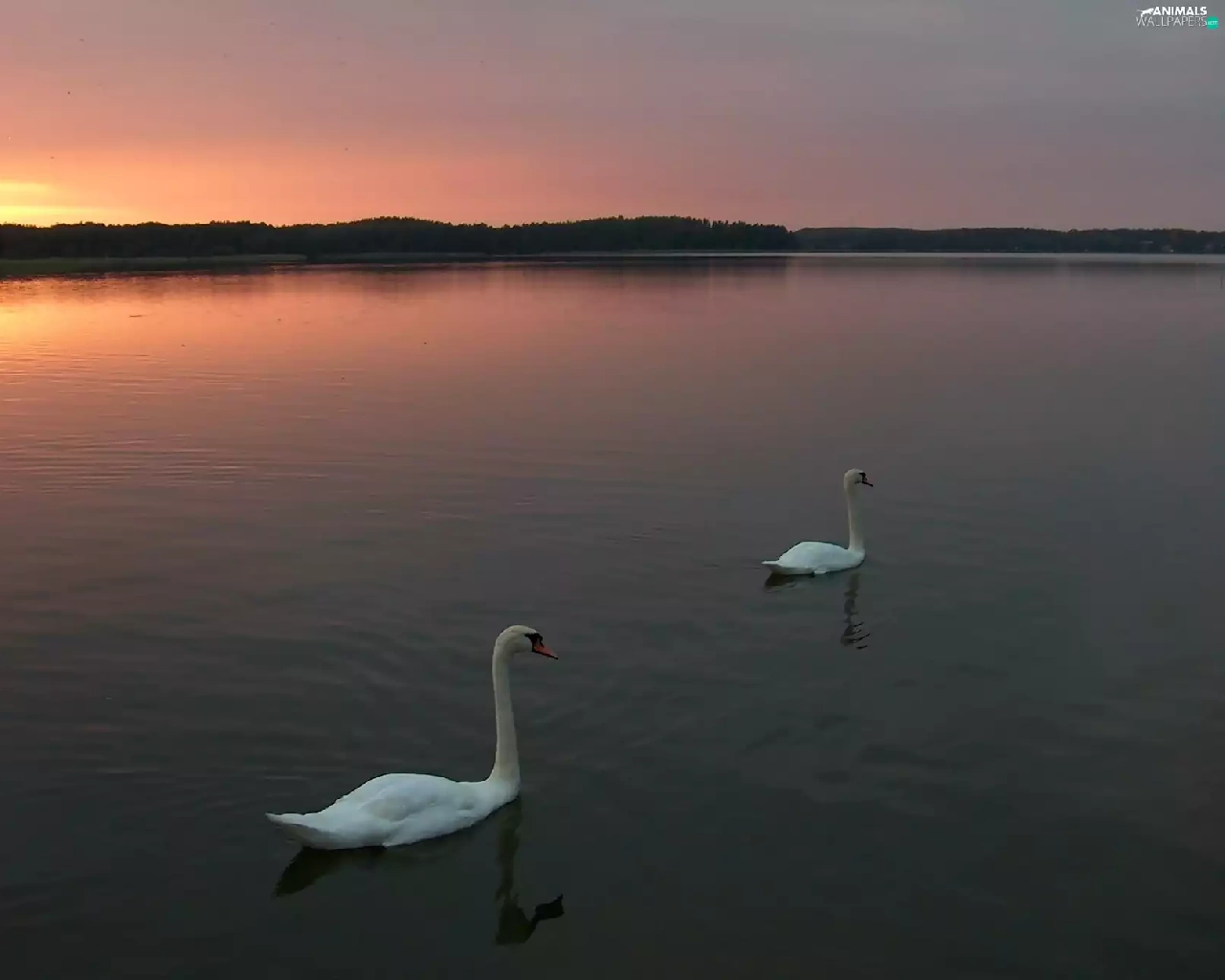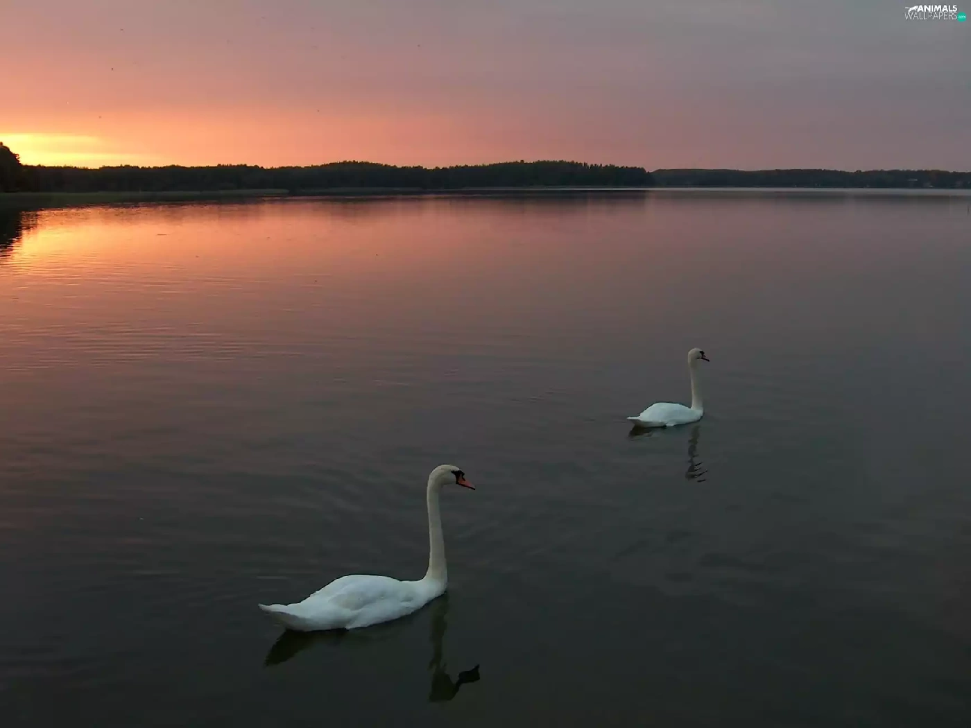 lake, sun, Swan, west