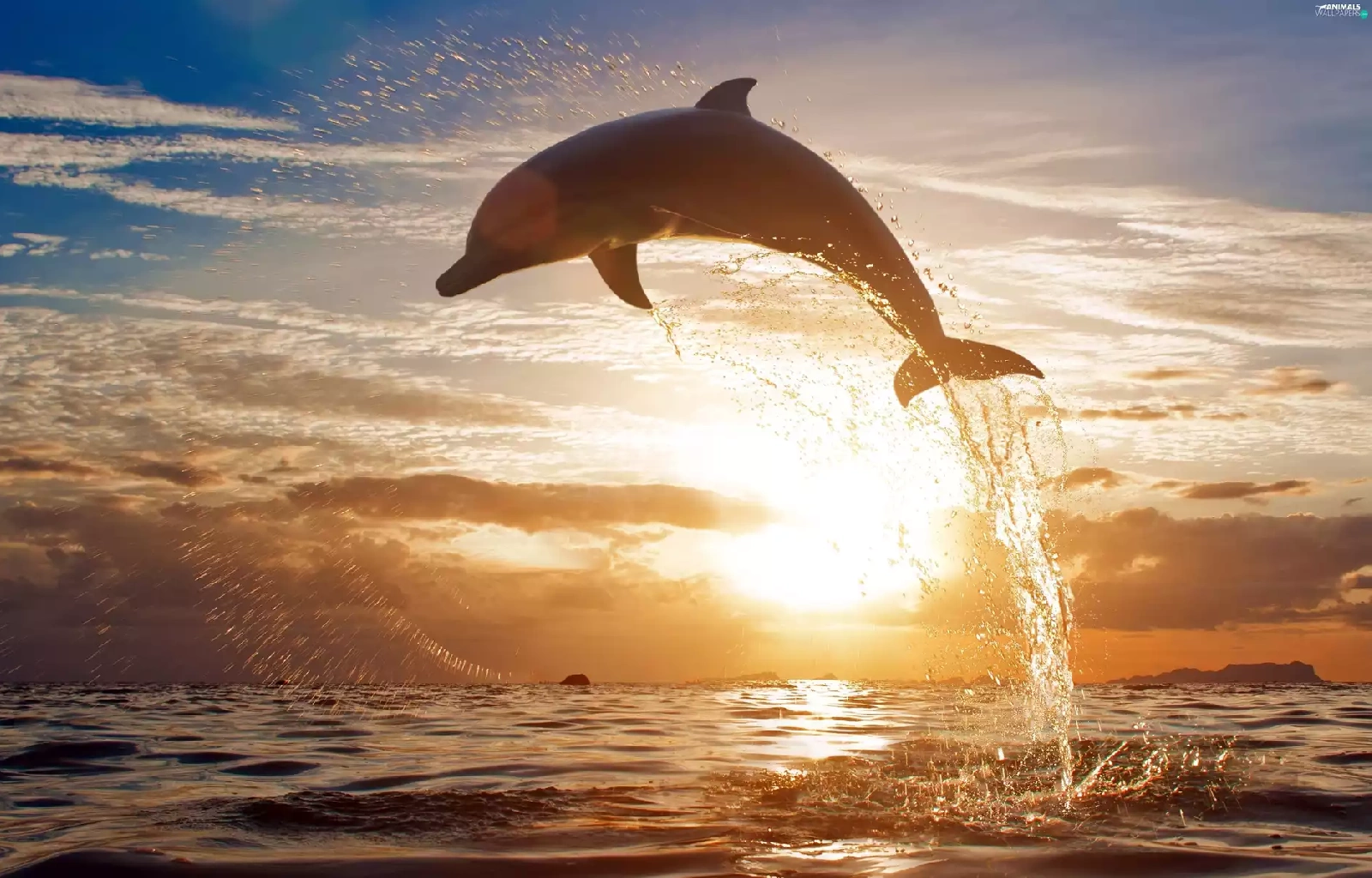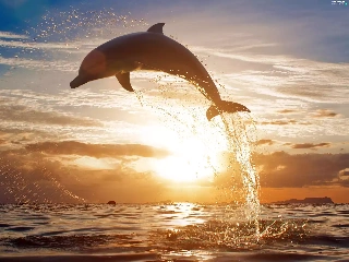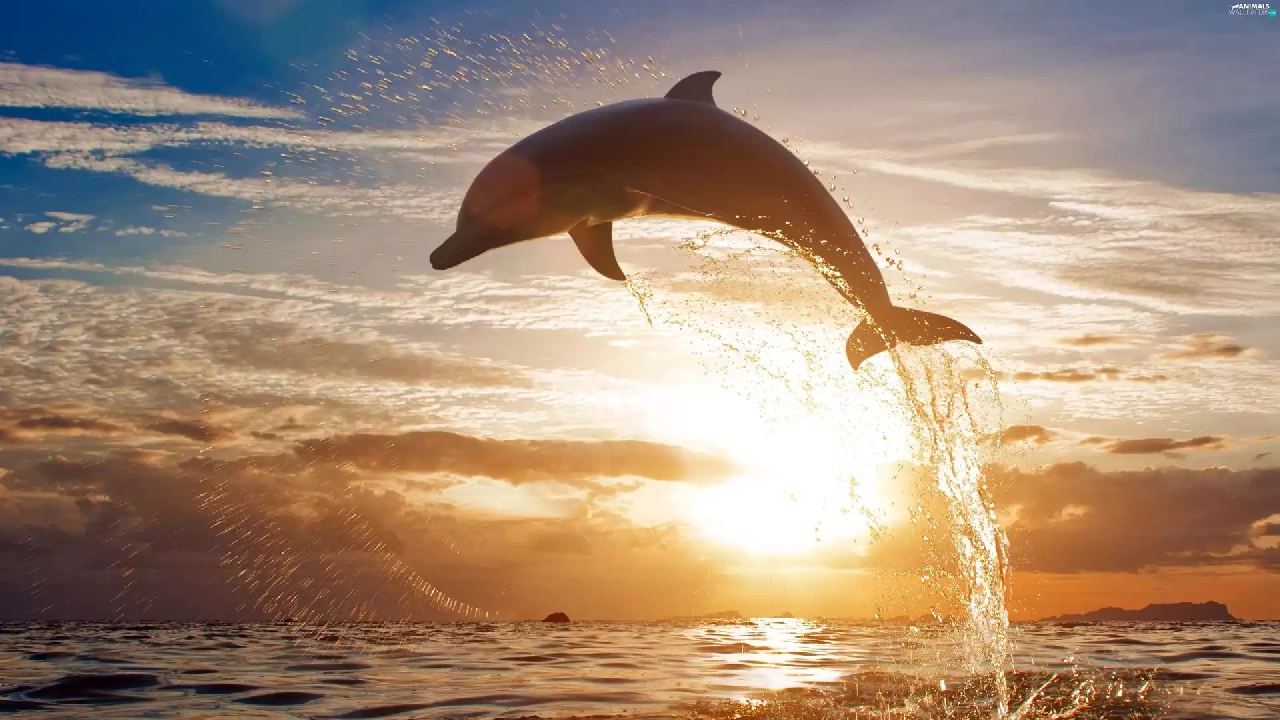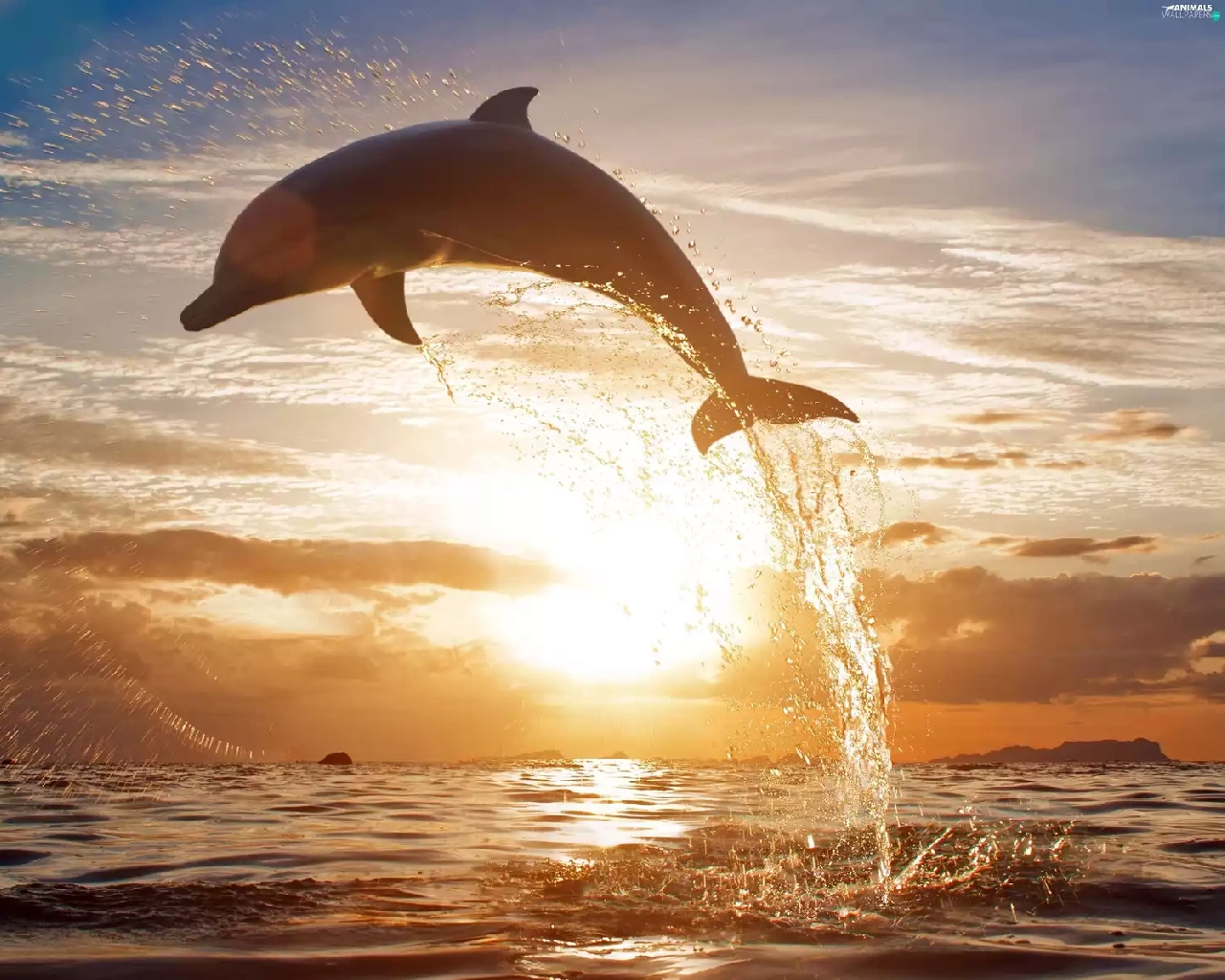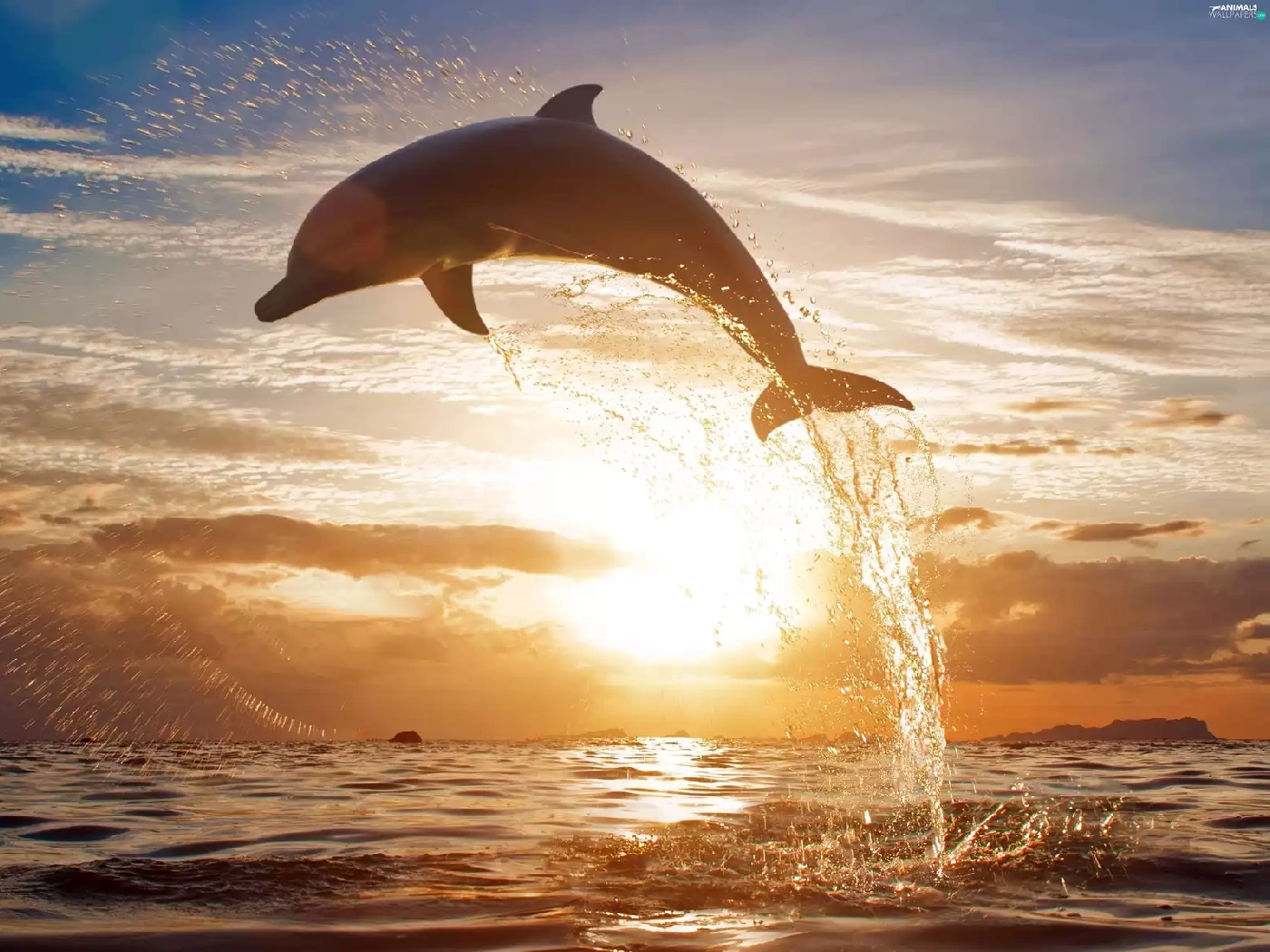 sea, sun, dolphin, west